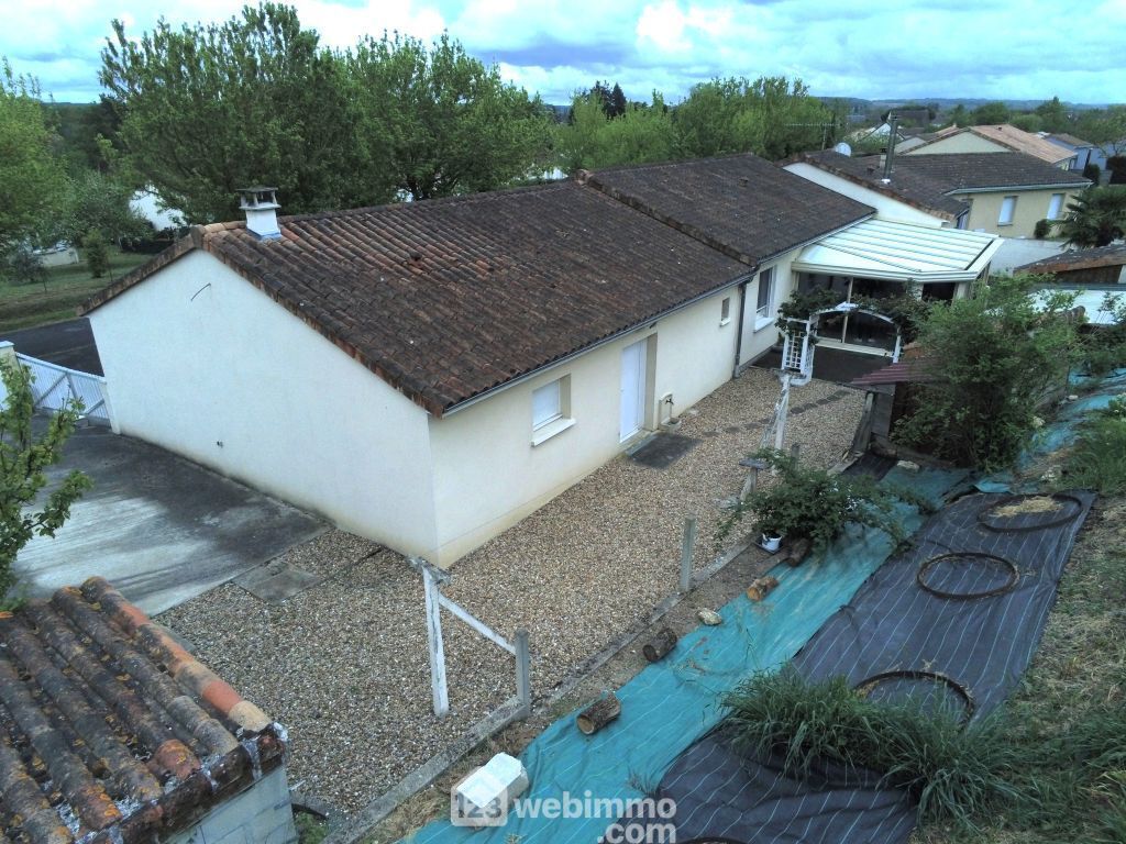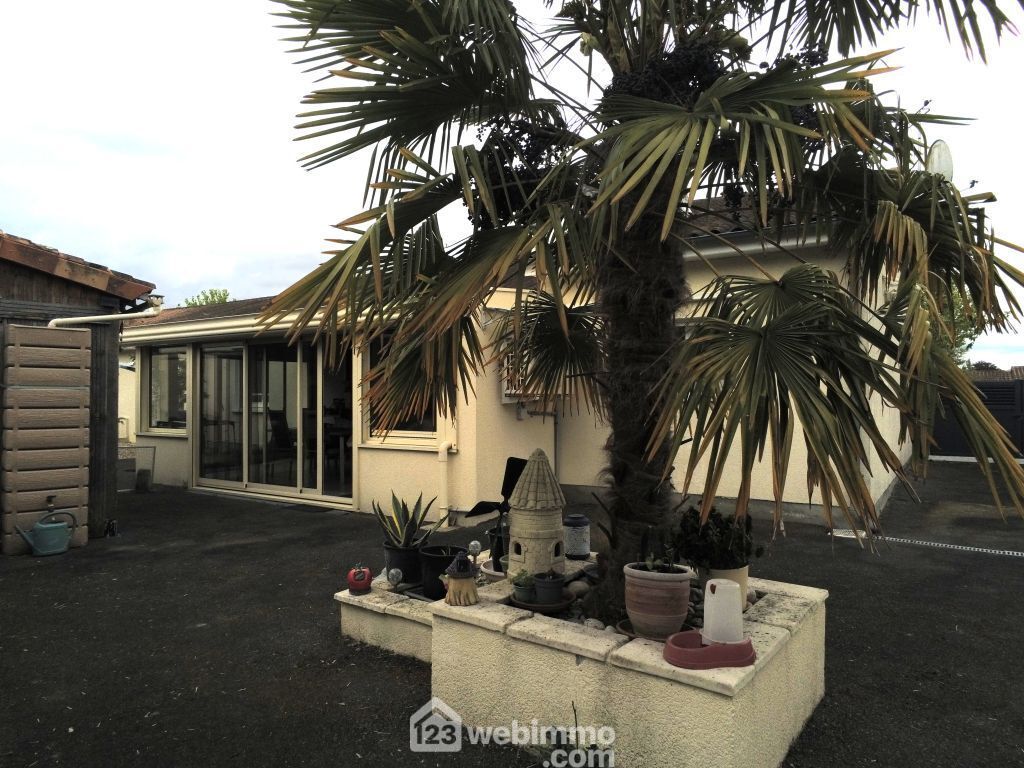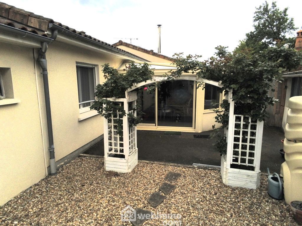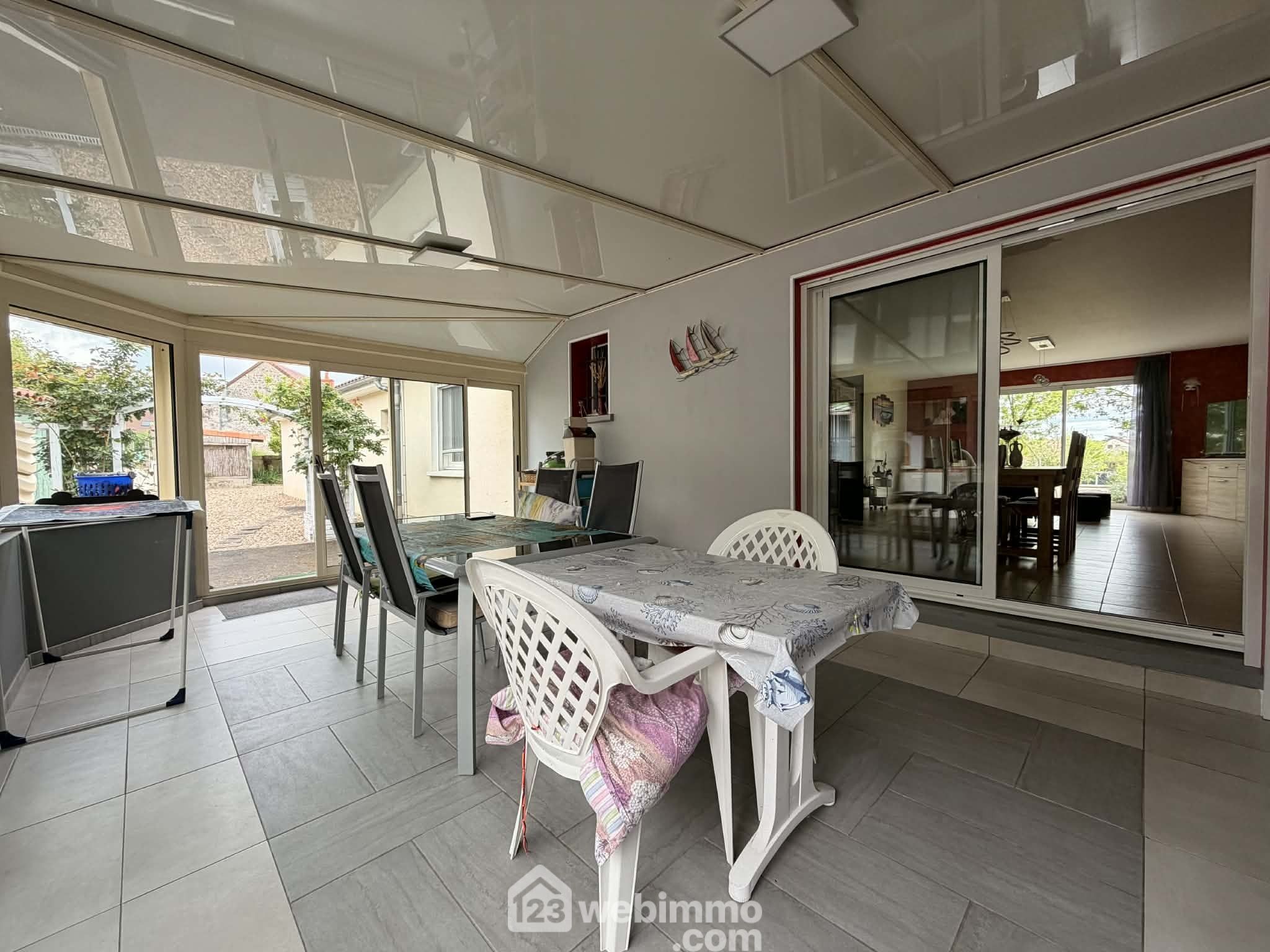 Maison de plain-pied, 145 m2 habitables, 5 pièces, 2 chambres, véranda, garage sur un terrain de 846 m2.
