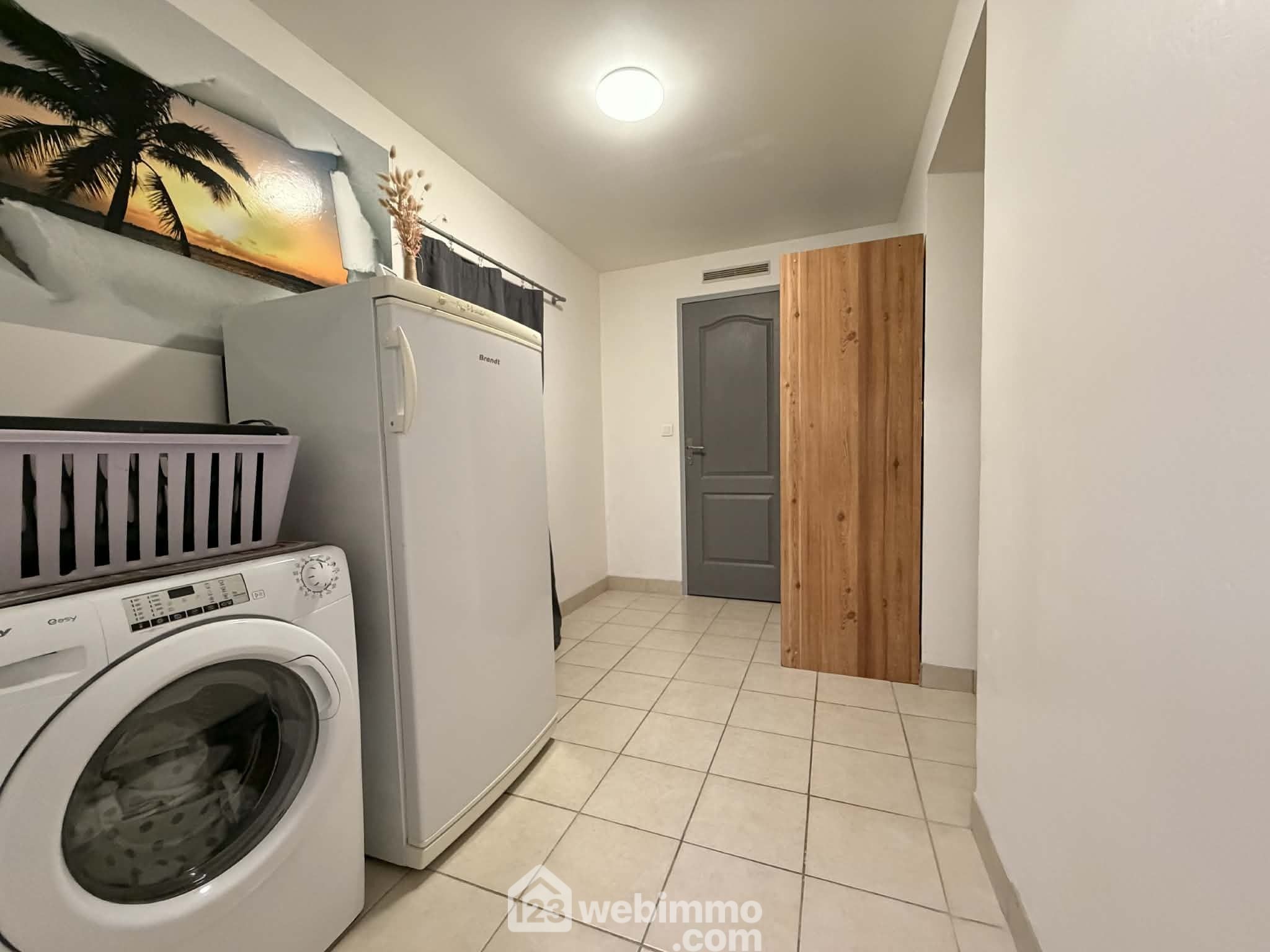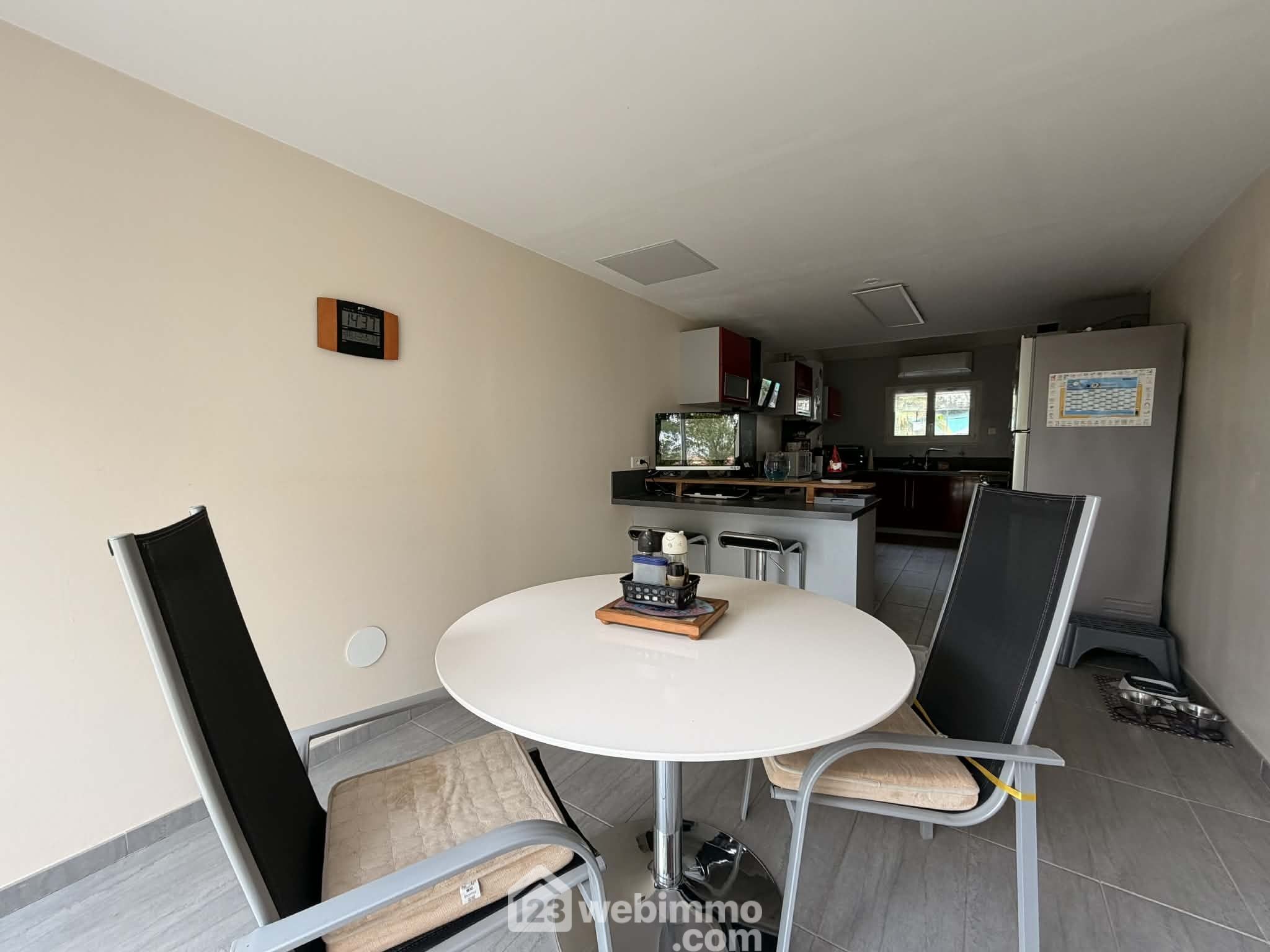 Elle comprend : 1 entrée, 1 séjour/salle à manger, 1 cuisine aménagée et équipée, 1 véranda chauffée et climatisée, 2 chambres, 1 salle d'eau, 1 WC indépendant, 1 buanderie et 1 cellier.