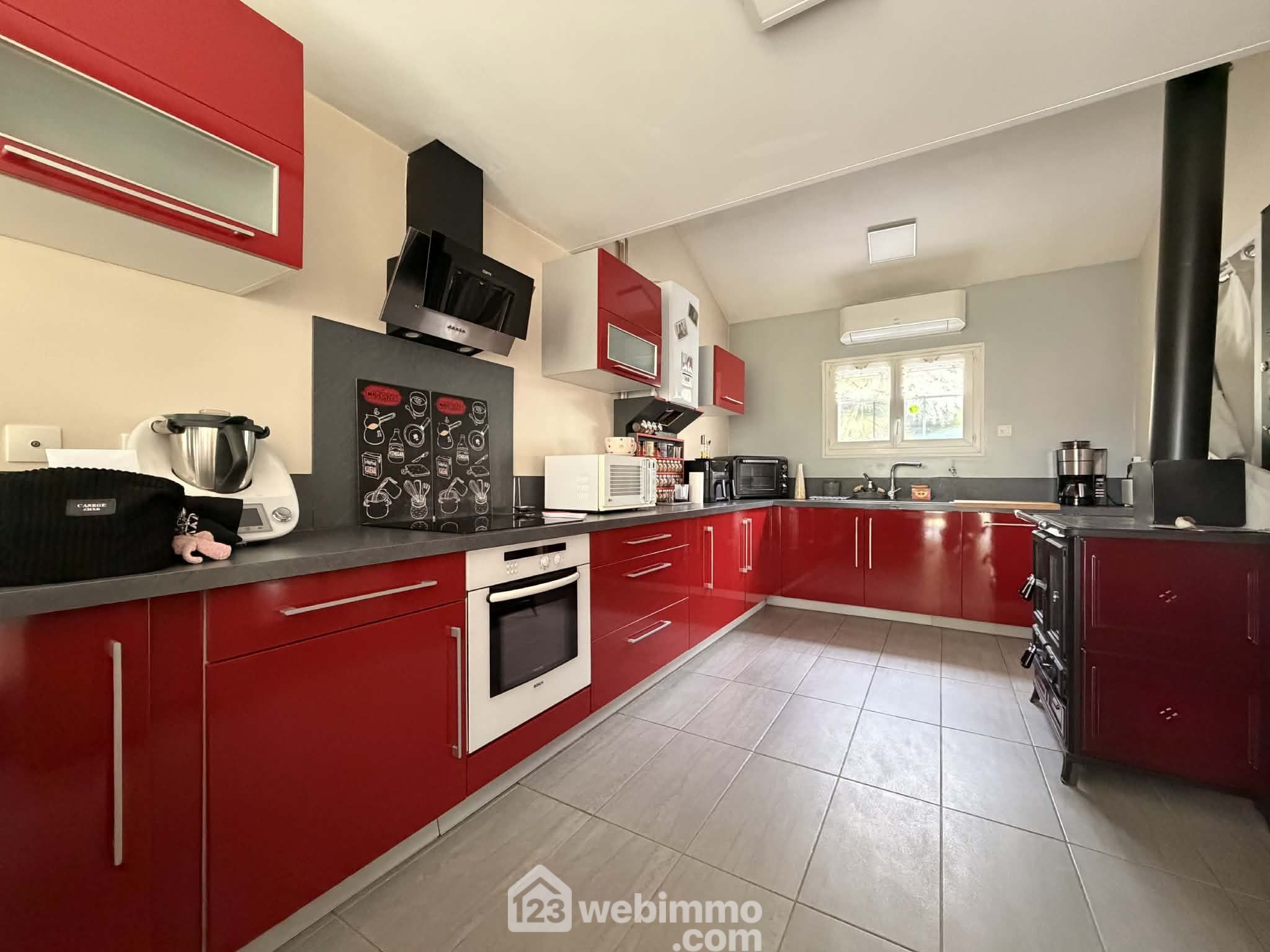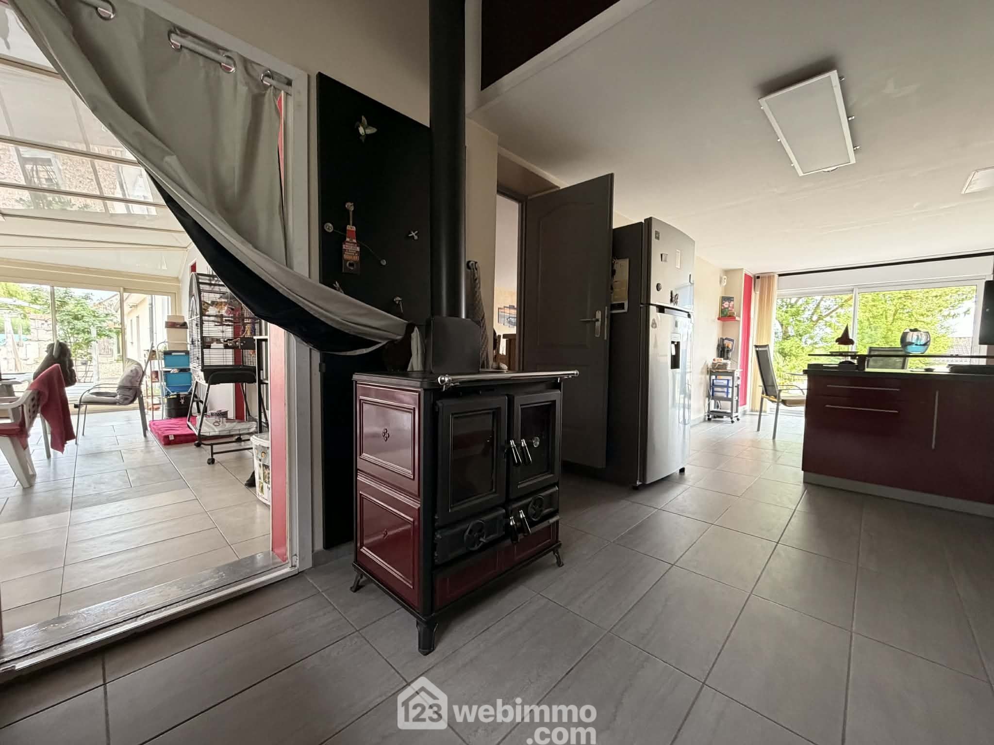 Plusieurs systèmes de chauffage : plancher chauffant au gaz de ville, pompe à chaleur dans la véranda et la cuisine laquelle dispose également d'une cuisinière à bois.