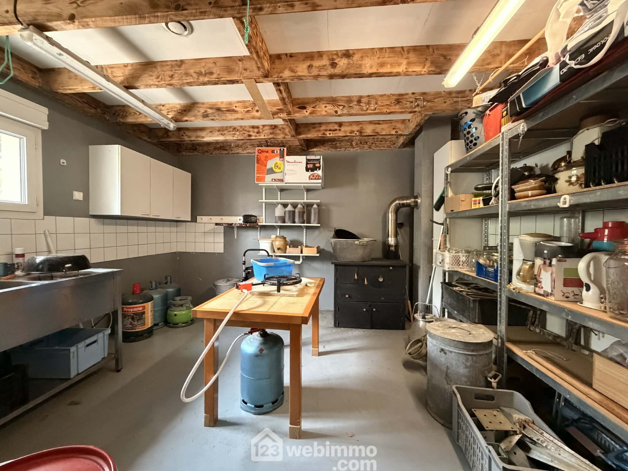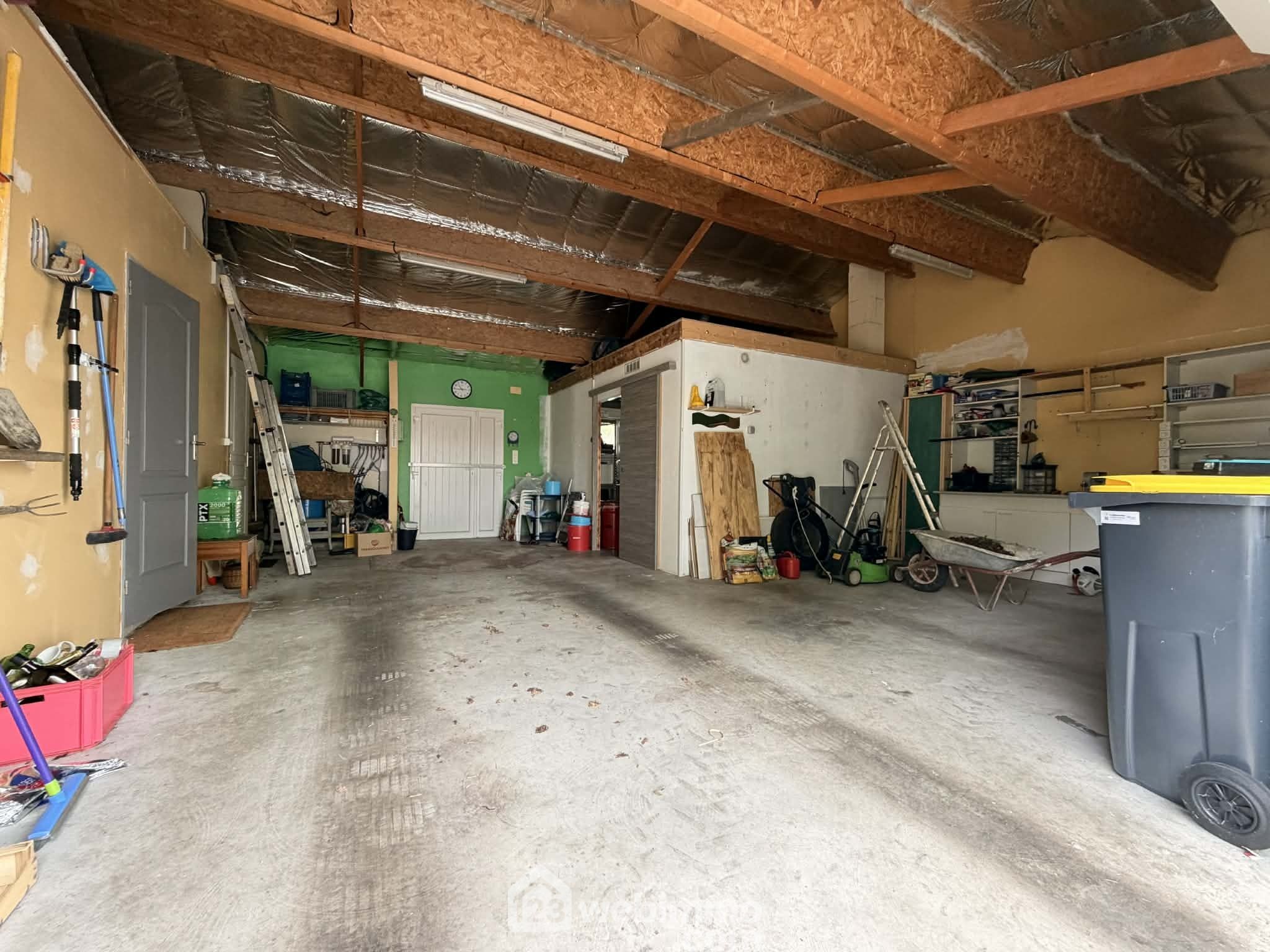 Le garage de 60 m2 dispose d'un second WC et d'une pièce de 13,9 m2 avec arrivée d'eau.
