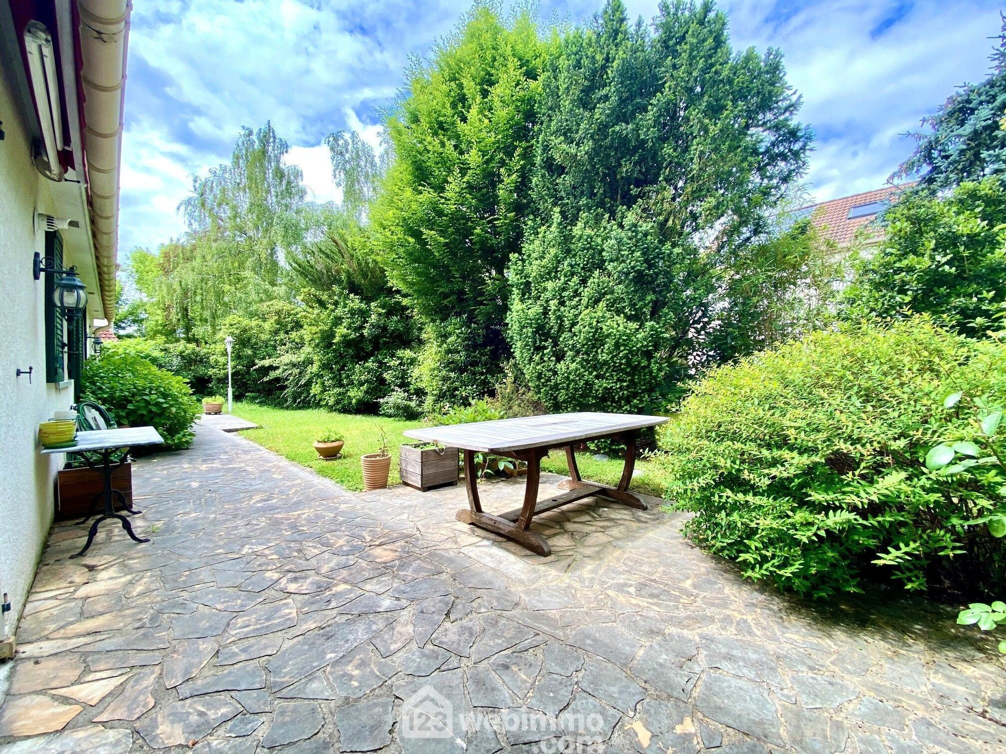 Une terrasse côté jardin exposée Sud-Ouest.