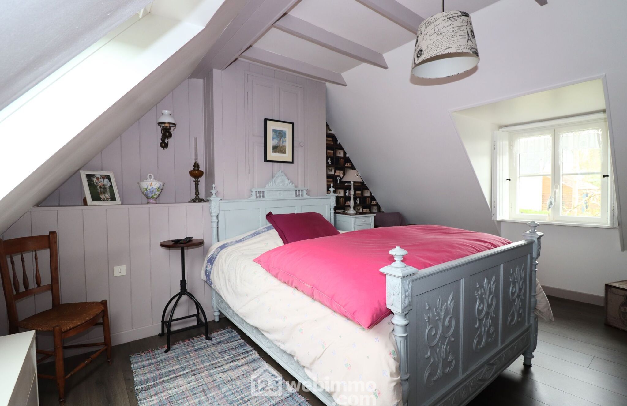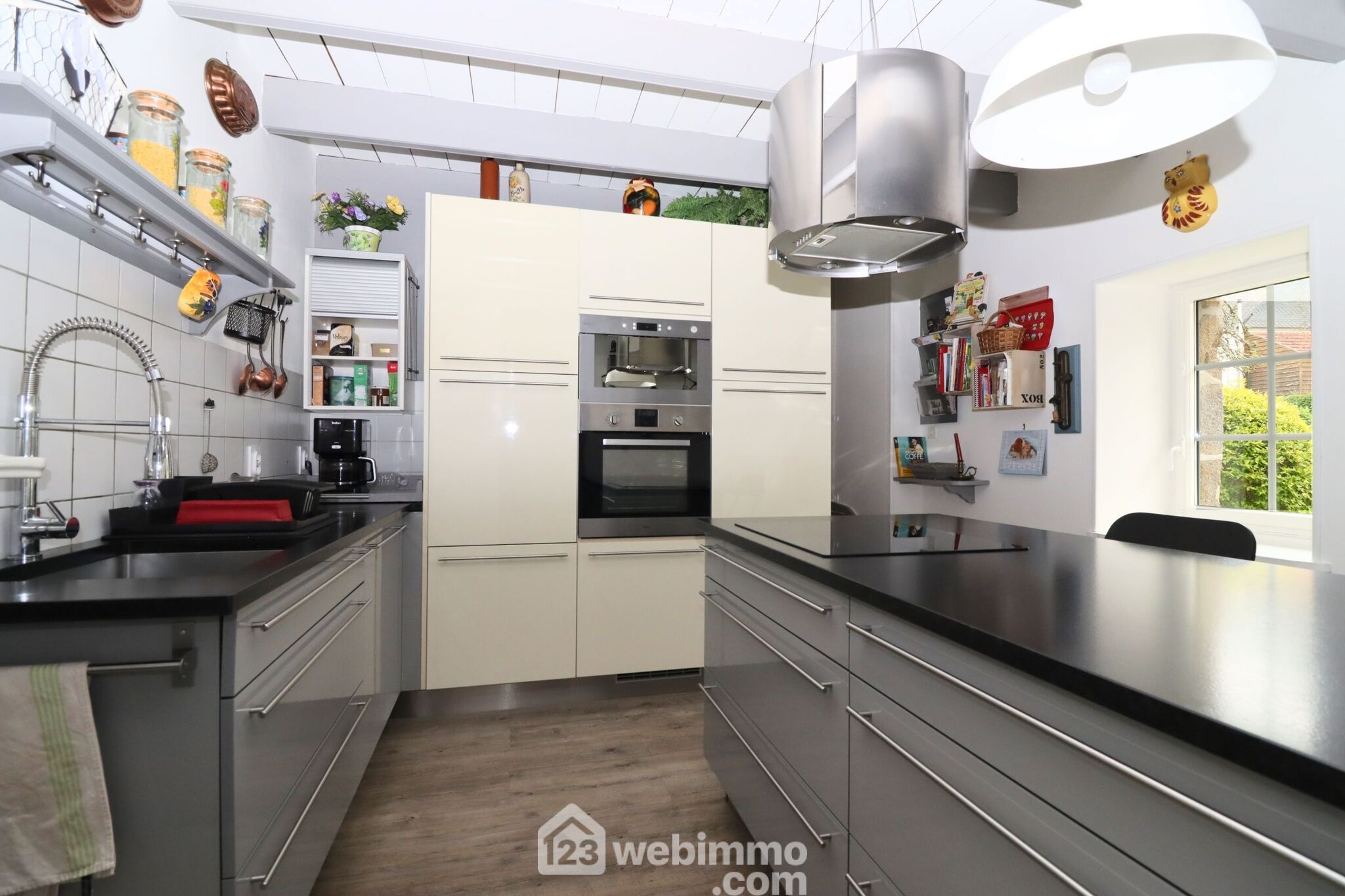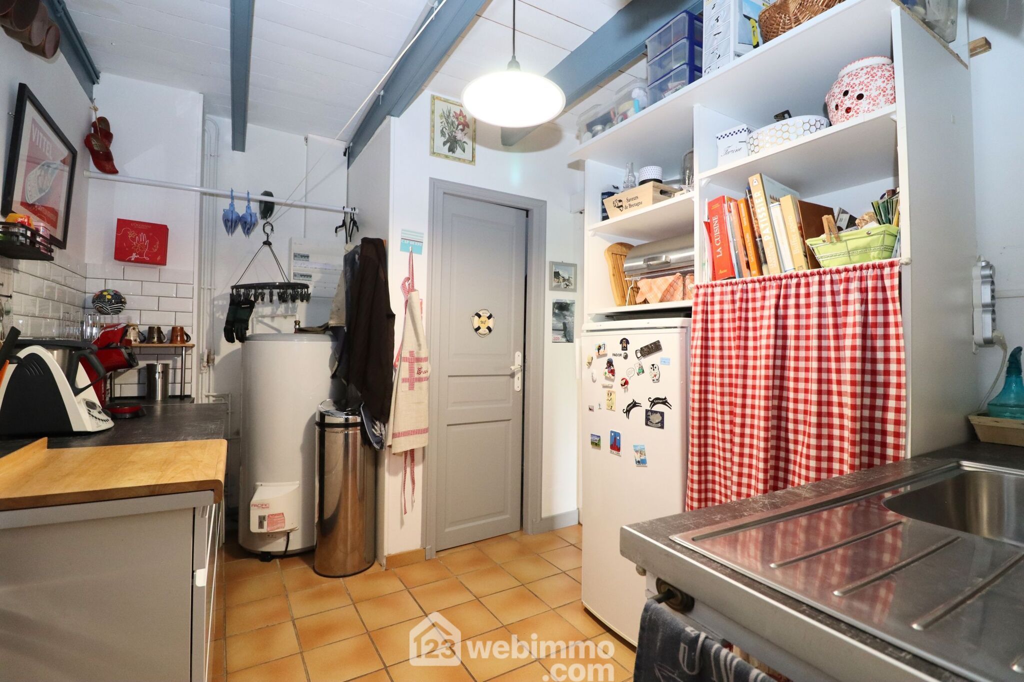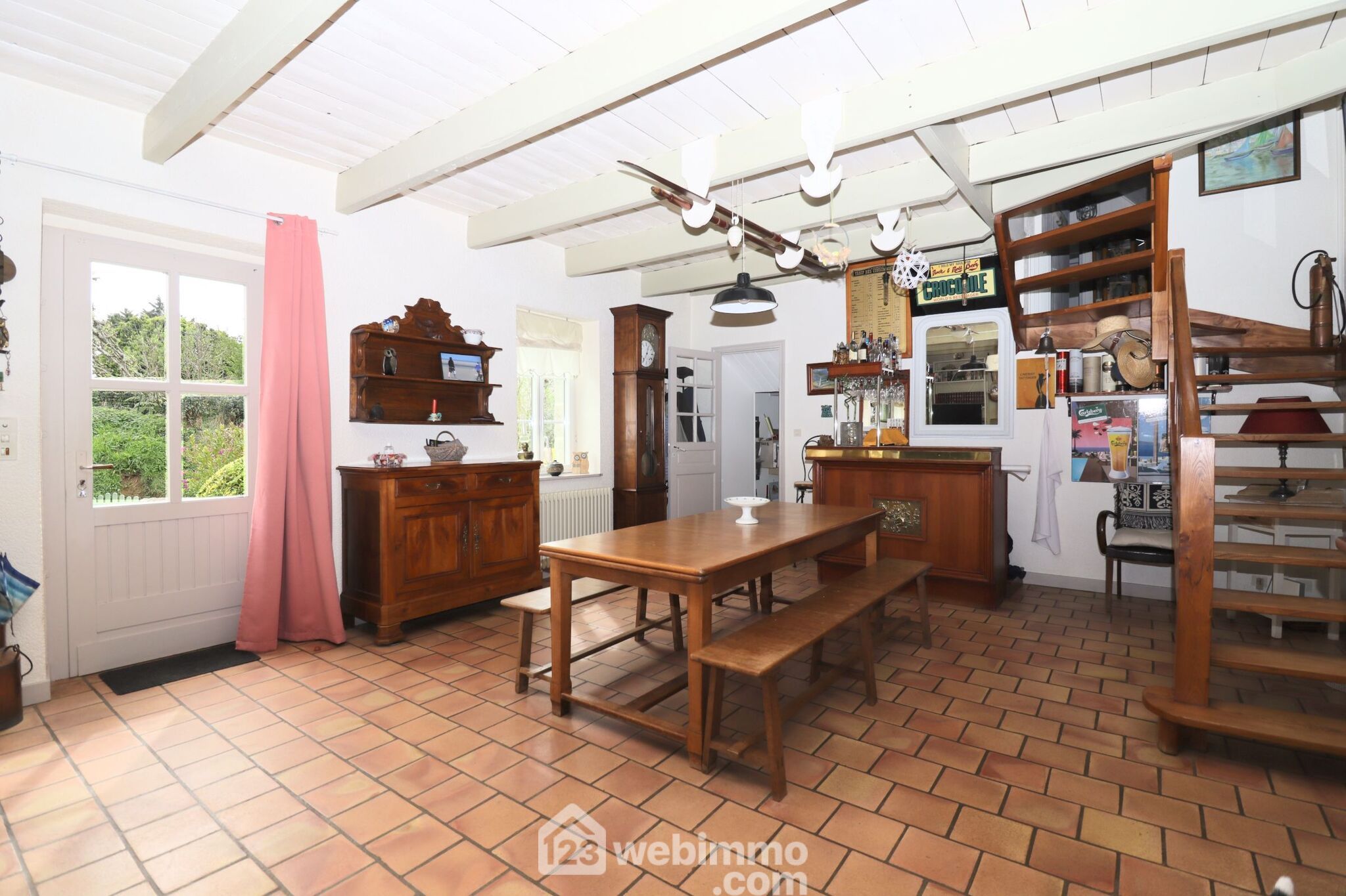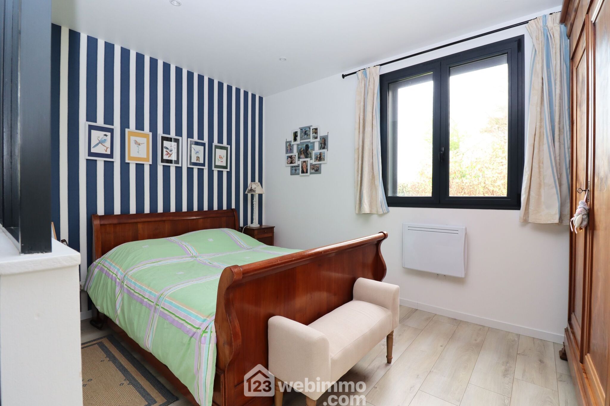 La maison édifiée en 1880, orientée plein sud, se compose au rez-de-chaussée, d'un grand salon-séjour de 42m2 avec poêle à bois, une cuisine aménagée et équipée Cuisinella de 14m2 avec plan de travail en granit noir, une arrière cuisine de 7,5m2, un WC séparé, une buanderie de 5m2 et un cellier de 8m2 disposant d'une porte de service au sud-ouest. Au nord, le rez-de-chaussée se prolonge par une belle extension moderne en rez-de-jardin de 40m2 (2015), comprenant un salon d'hiver vitré et, une suite parentale de 19m2 avec douche à l'italienne et ensemble double vasque.