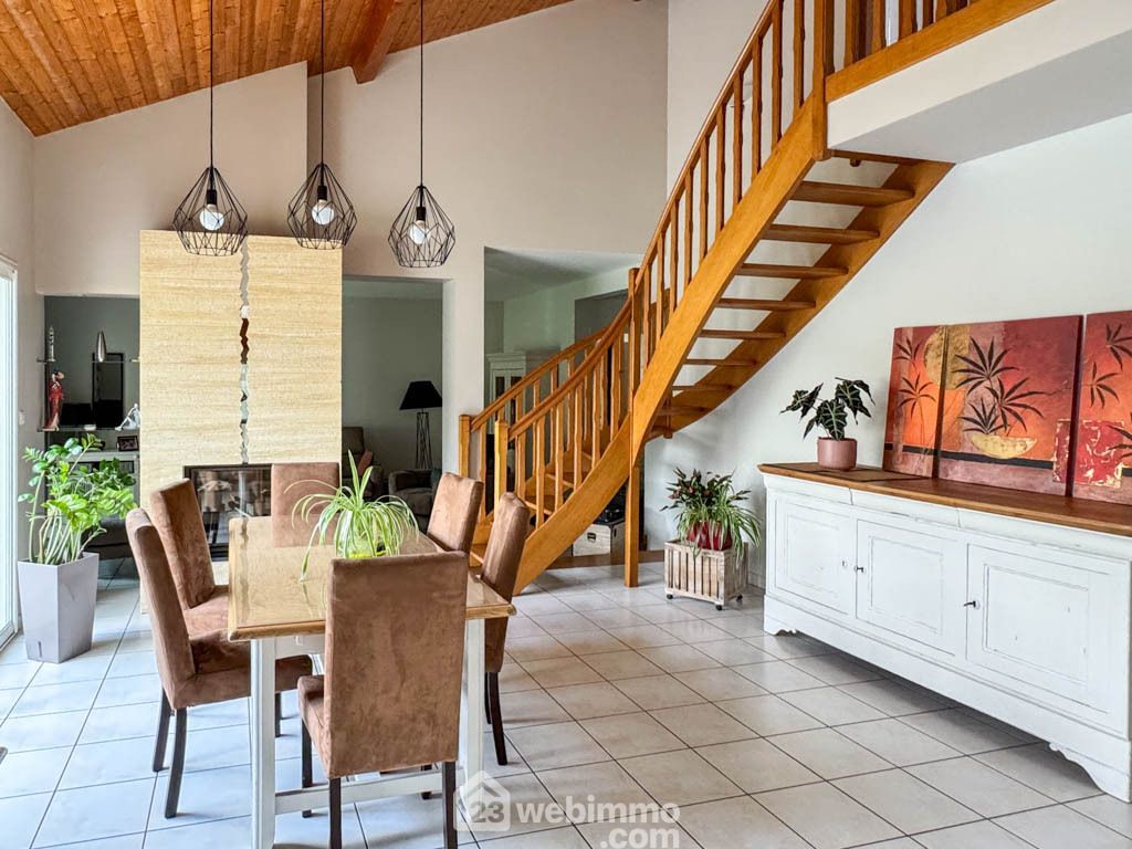 49300 - CHOLET Découvrez cette maison d'architecte à étage, construite en 2002, implantée dans un environnement calme sur une parcelle joliment arborée de 520 m², entièrement clôturée.