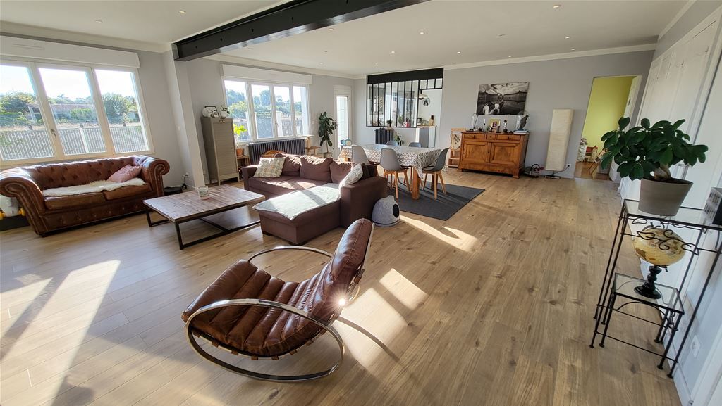 Nous sommes très heureux de pouvoir vous présenter en exclusivité cette charmante habitation de 147 m² complétement rénovée. Elle se compose d'une grande pièce de vie de 60 m² avec une cuisine fermée par une verrière pour un côté très contemporain. La cuisine est aménagée et équipée pour un ensemble très lumineux. L'espace nuit se compose d'une suite parentale avec salle de bain. Puis trois chambres et une salle d'eau. Enfin un extérieur avec une grande terrasse bois et une cuisine d'été.