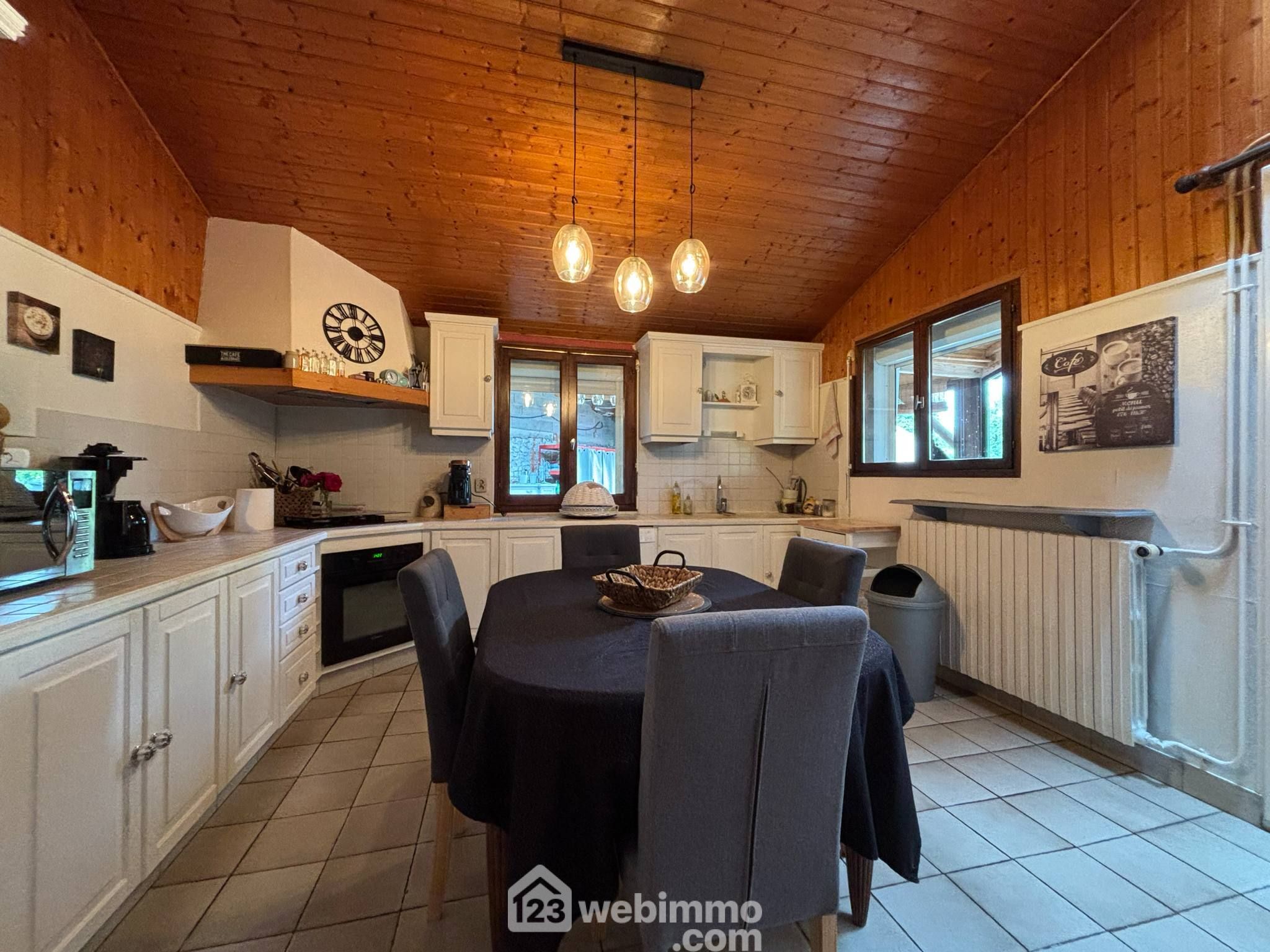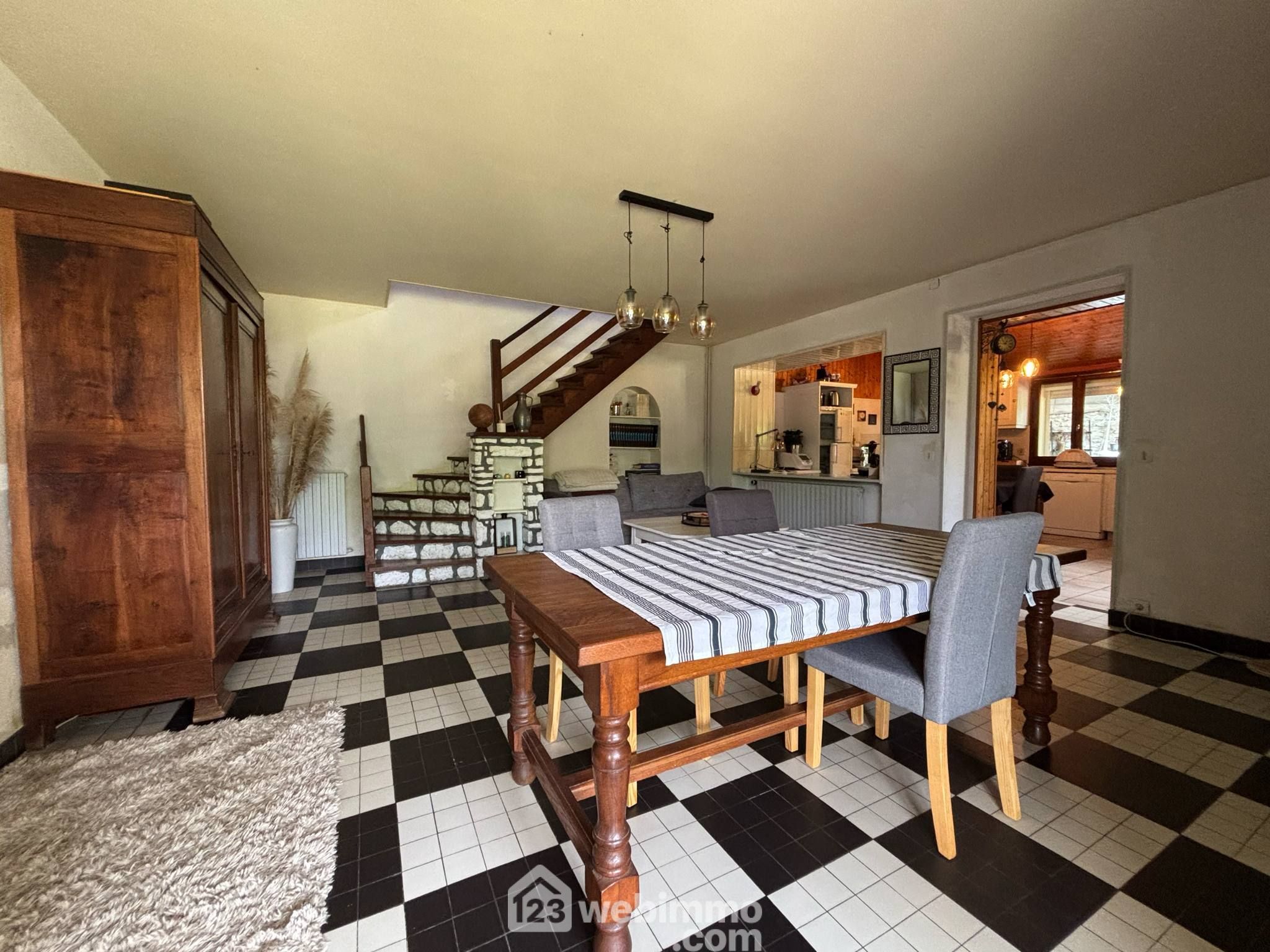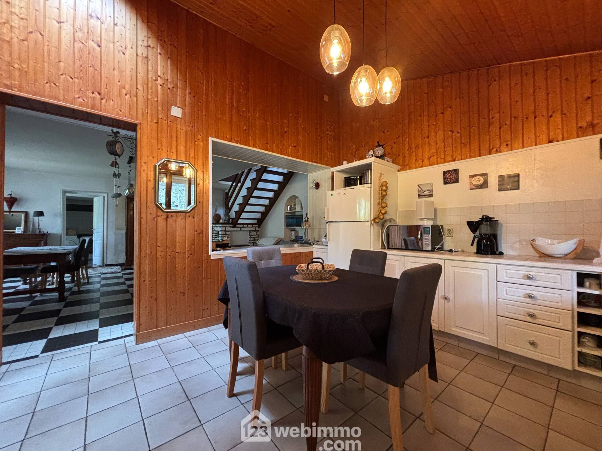 Maison de campagne avec vie de plain-pied, 148 m2 habitables, 6 pièces dont 4 chambres, sur un terrain clos de 1768 m2.