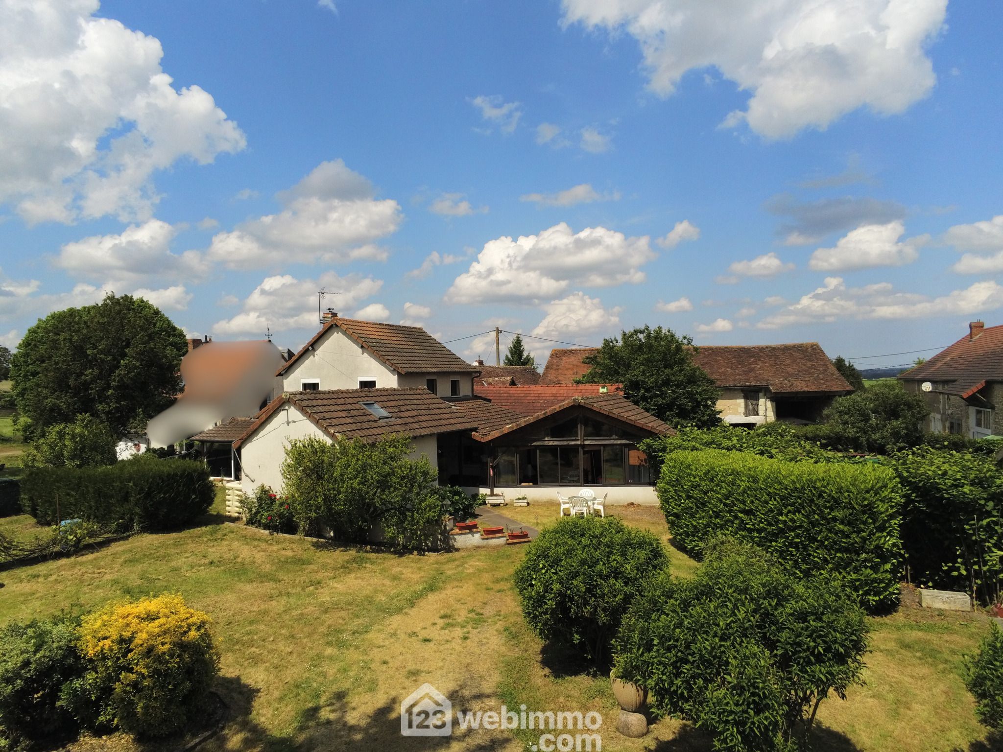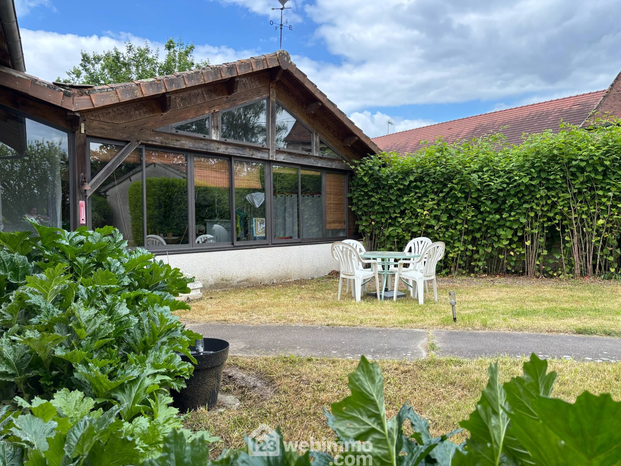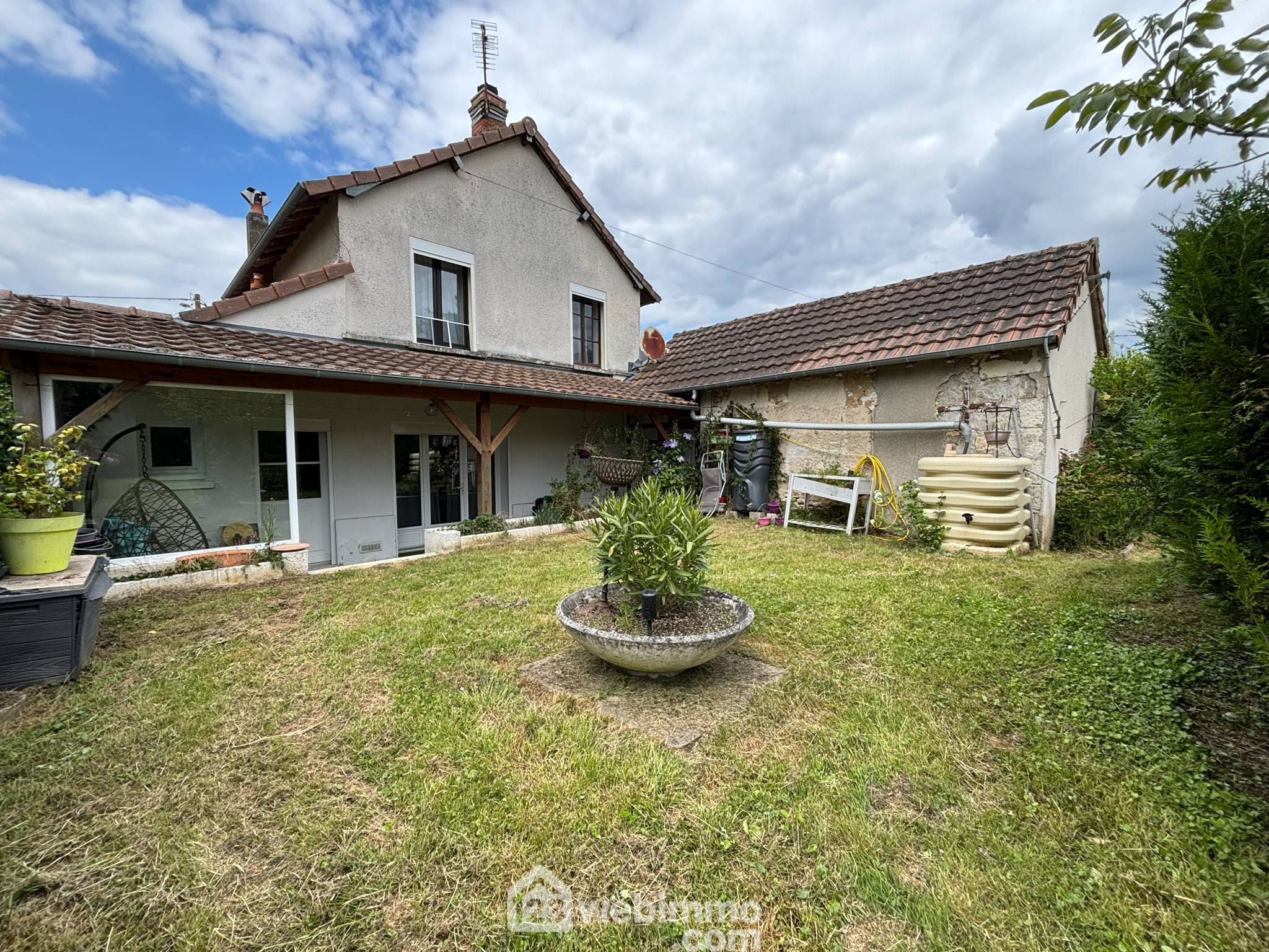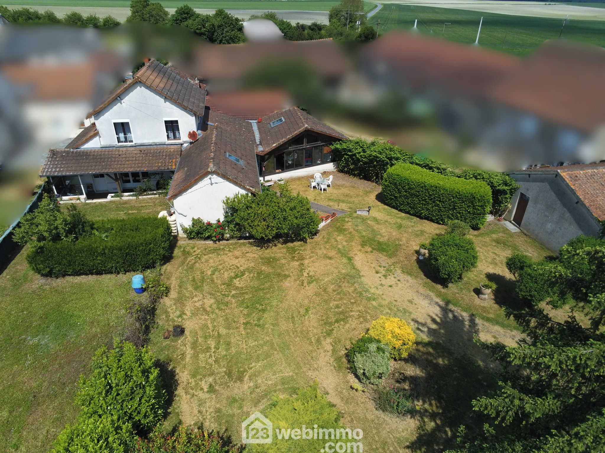 Maison de campagne avec vie de plain-pied, 148 m2 habitables, 6 pièces dont 4 chambres, sur un terrain clos de 1768 m2.