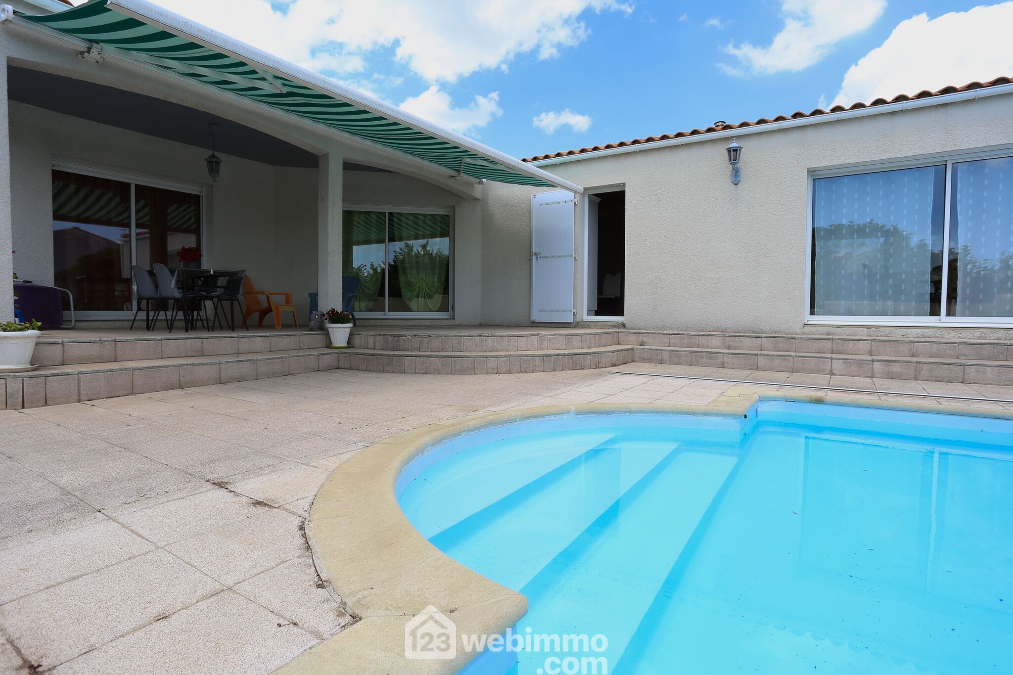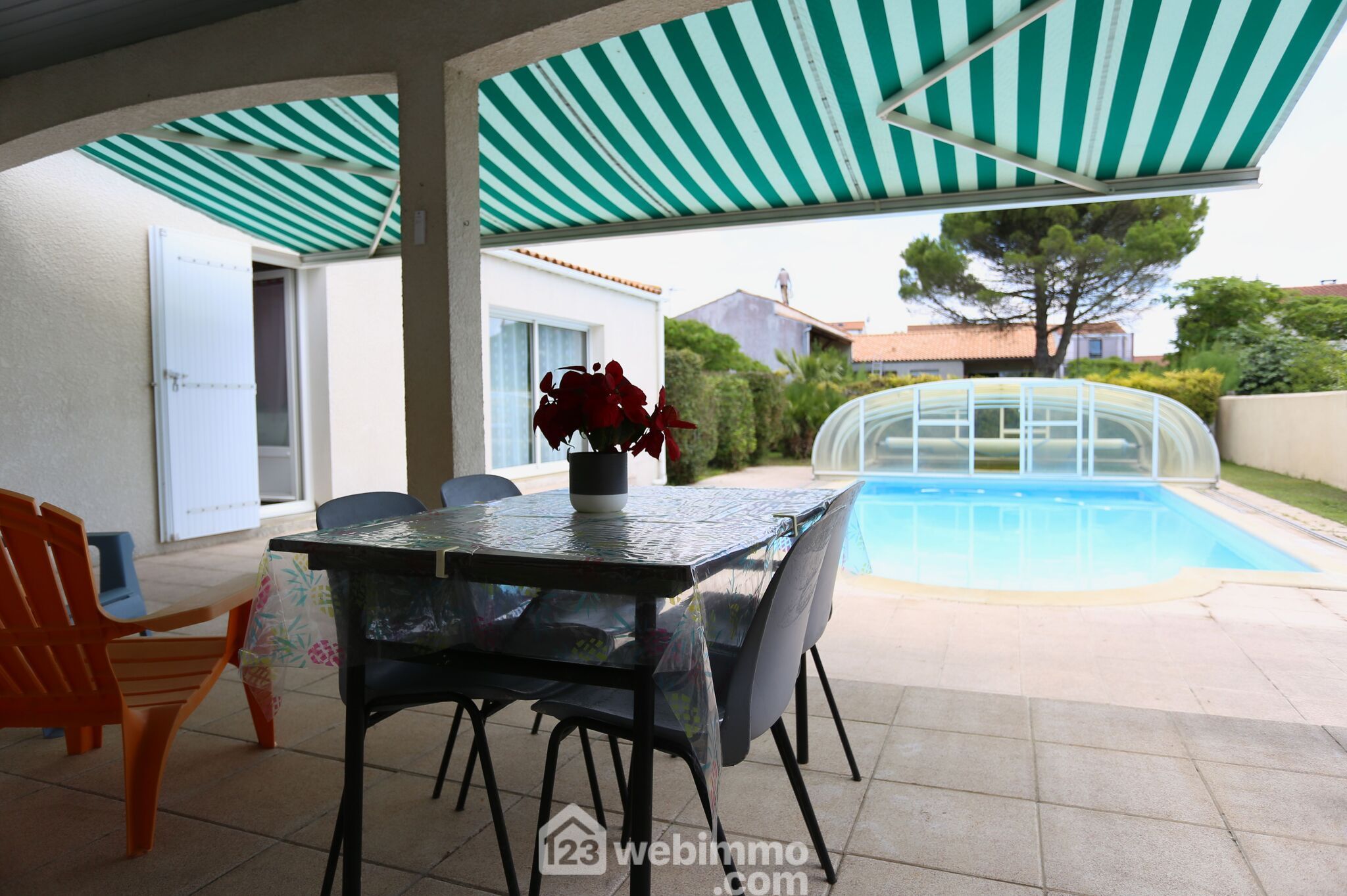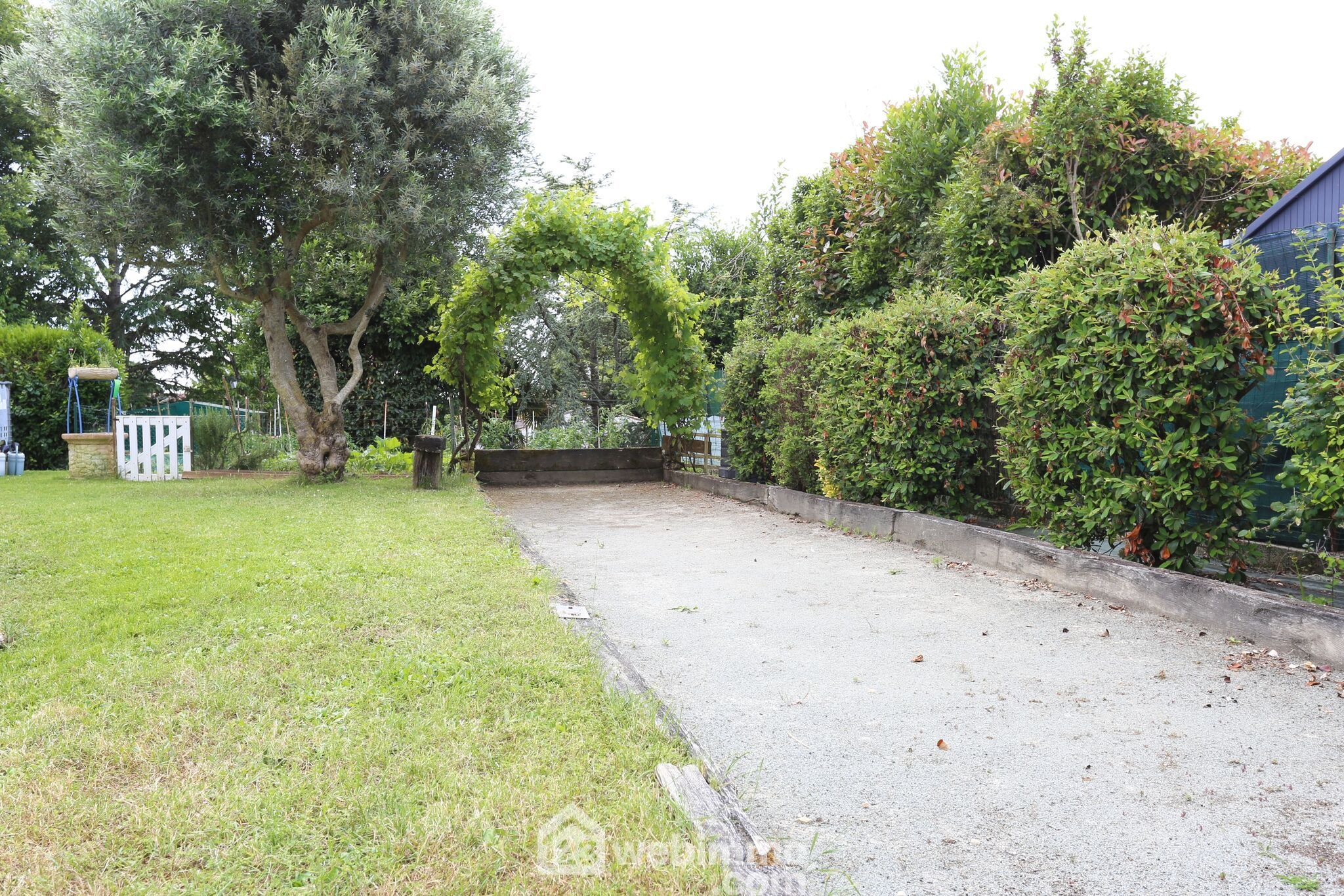 Très agréable jardin avec piscine de 10*5 parfaitement exposée, terrain de pétanque, potager.