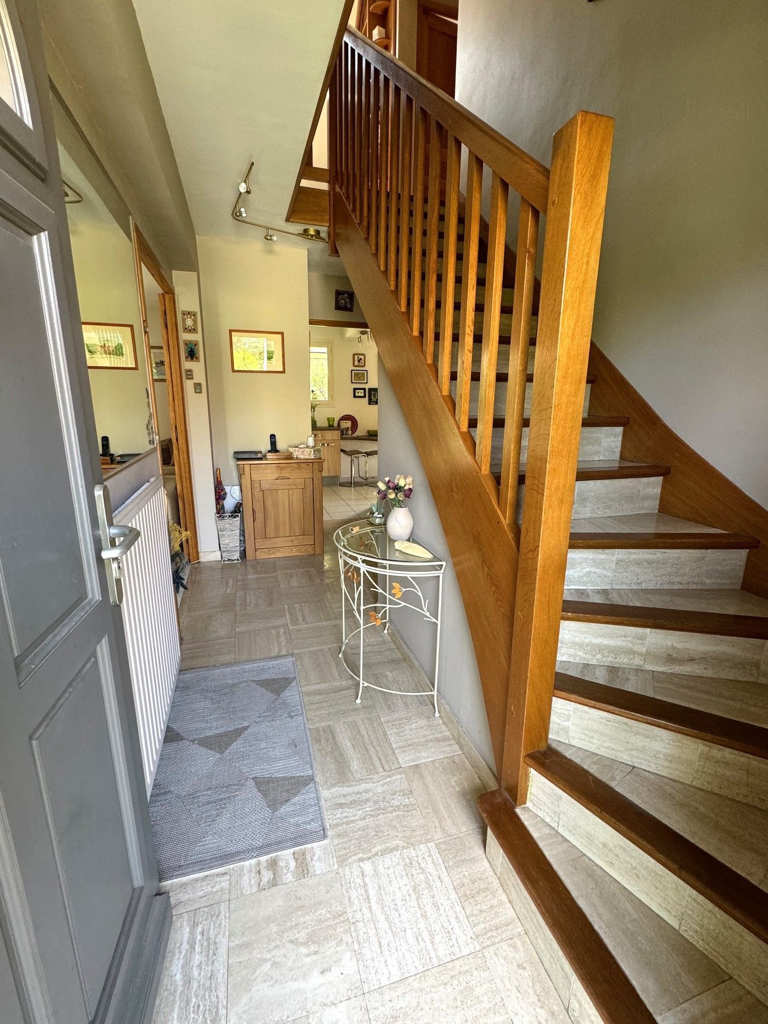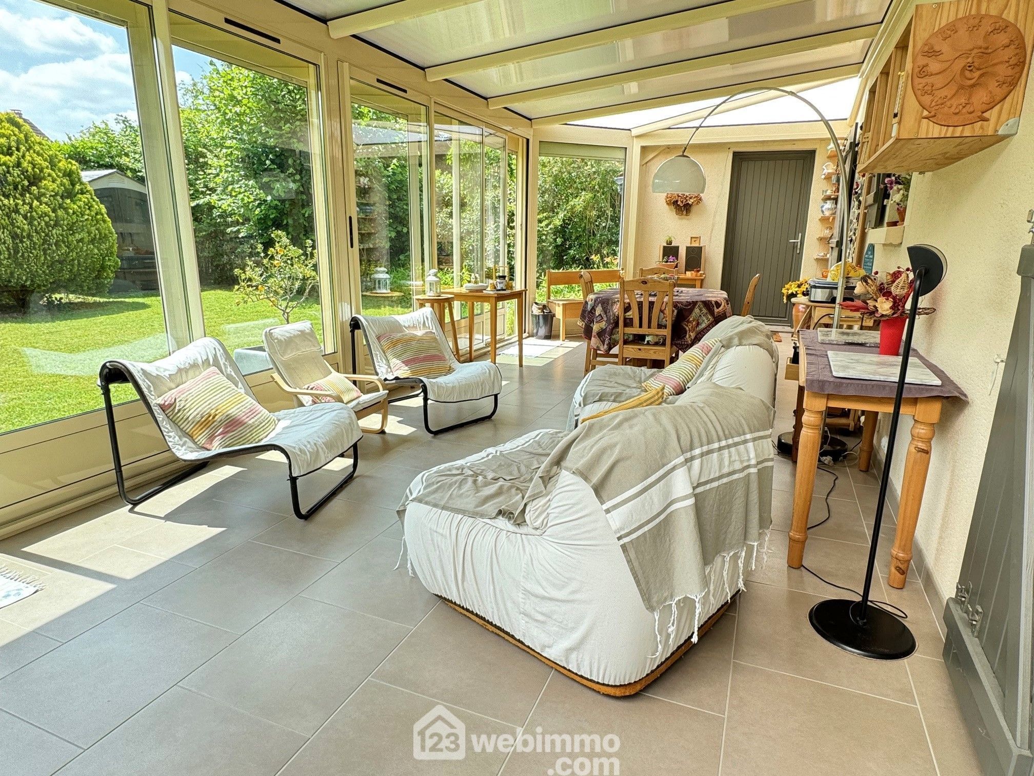 En entrant dans la maison, vous serez accueilli par une entrée qui mène à un vaste séjour doté d'une cheminée à insert, parfait pour des soirées chaleureuses en famille. La véranda chauffée, adjacente au séjour, offre un espace lumineux où vous pourrez profiter de la vue sur le jardin tout au long de l'année.