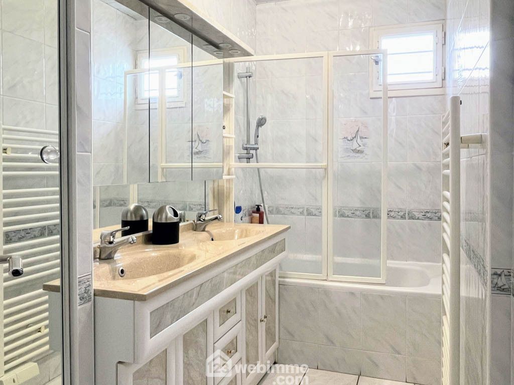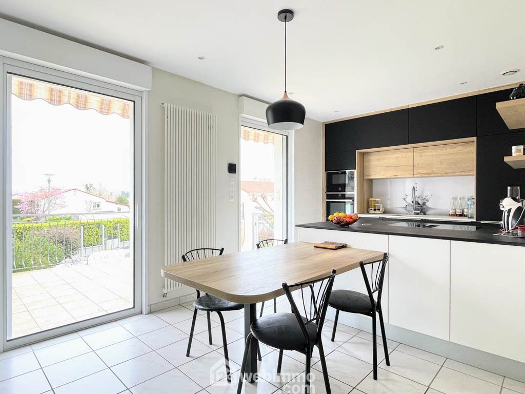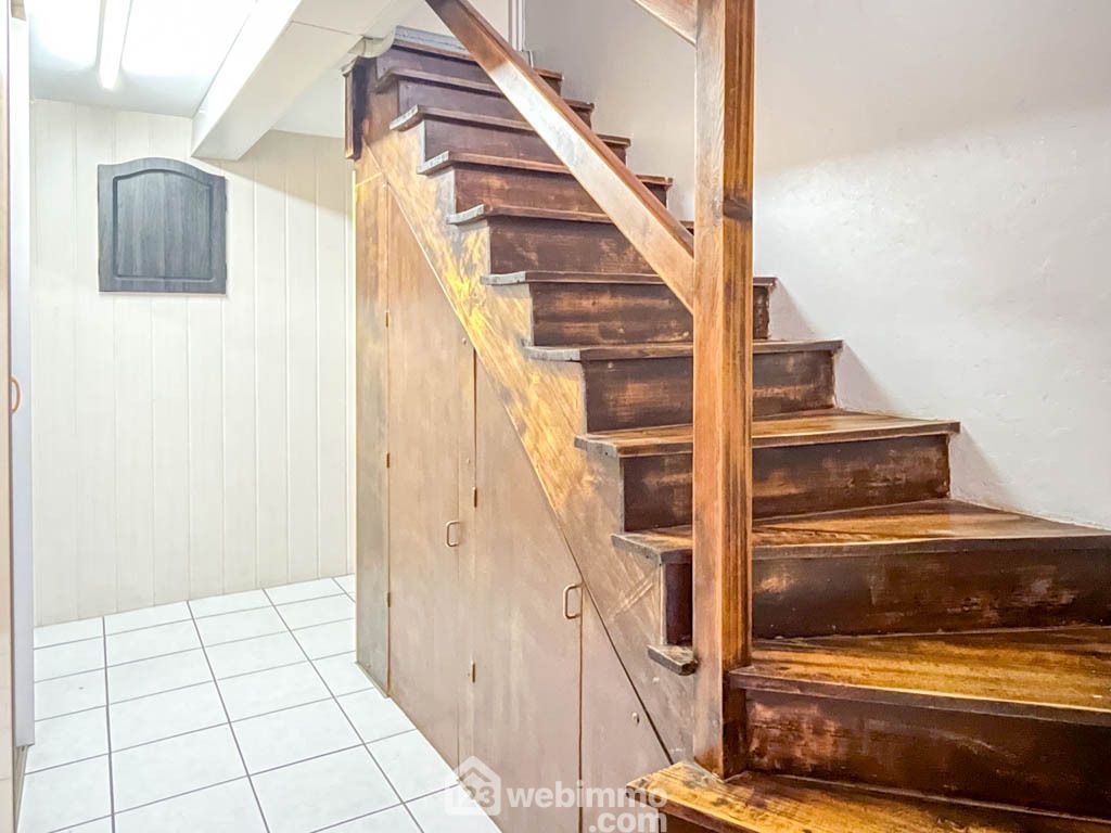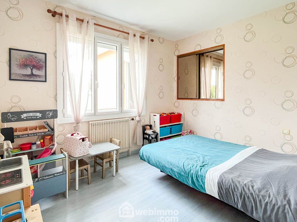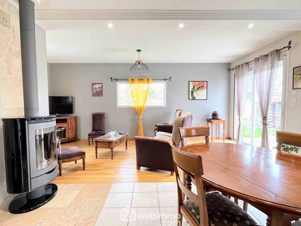 Au rez-de-chaussée, la pièce de vie lumineuse et chaleureuse s'ouvre partiellement sur une cuisine, claire et fonctionnelle. L'espace nuit comprend trois chambres ainsi qu'une salle de bain et un WC séparé.