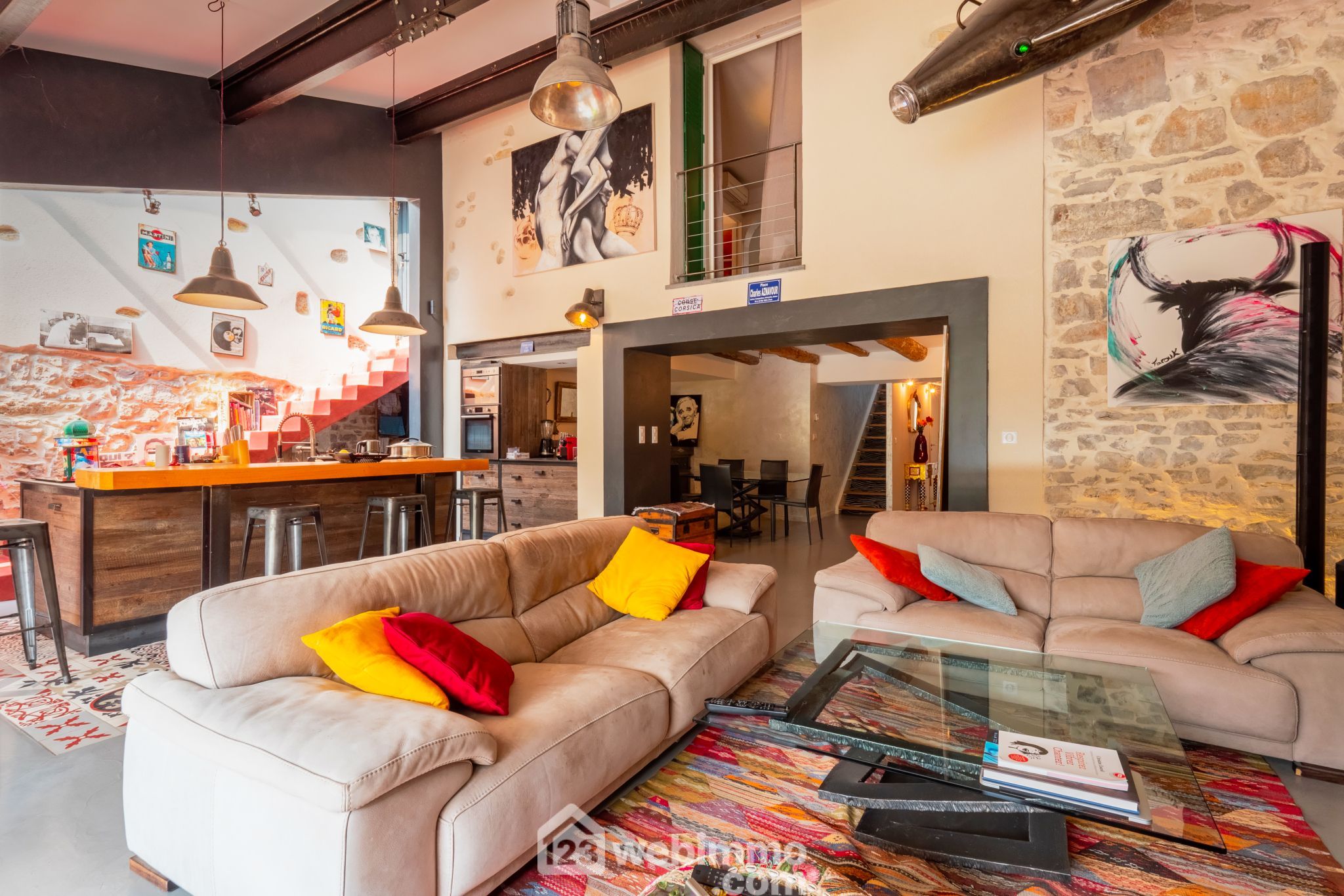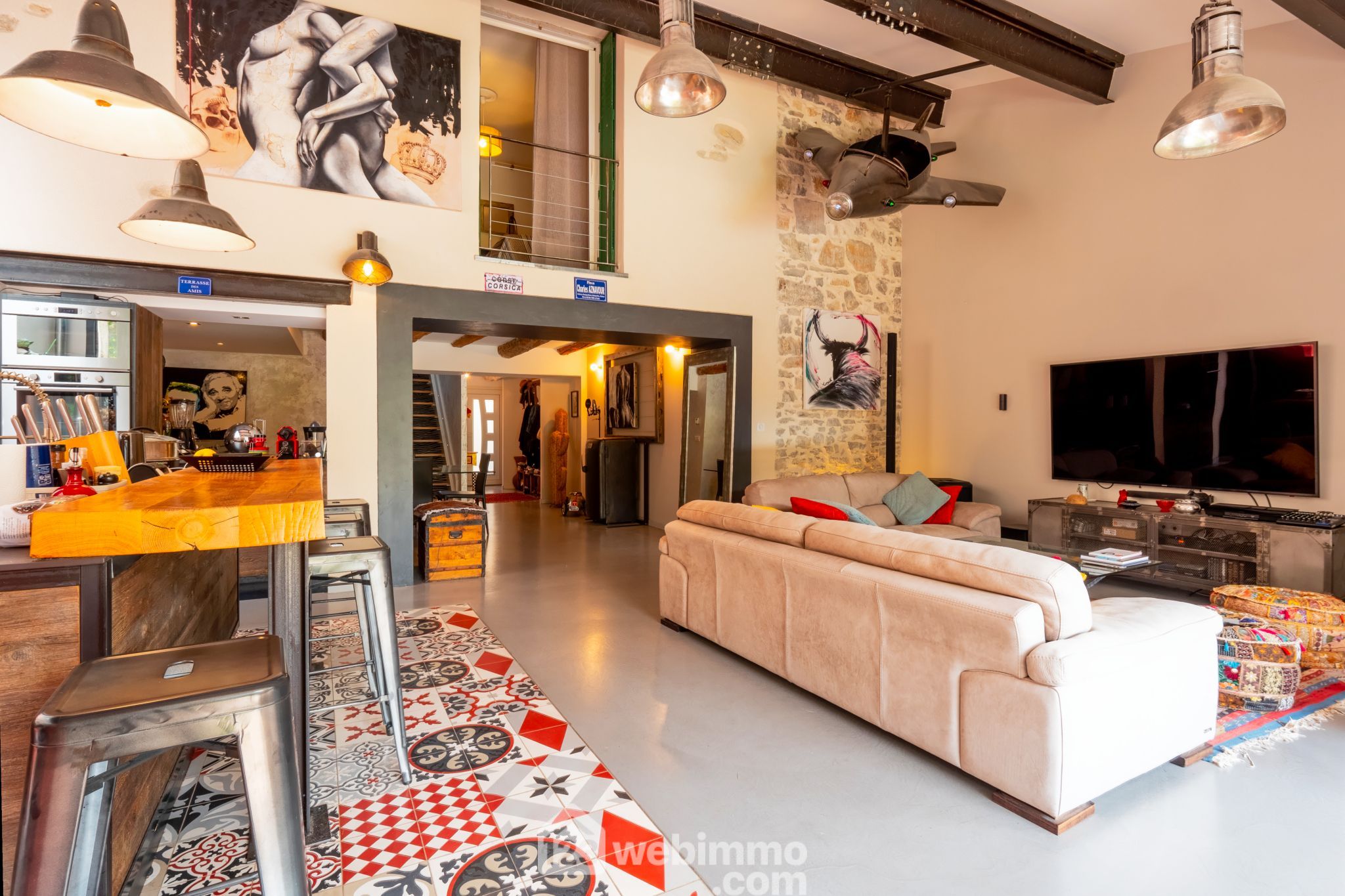 Cette maison ancienne en pierre, de 150 m² habitables sur 3 niveaux, a été totalement rénovée dans un esprit bohème chic et résolument moderne.