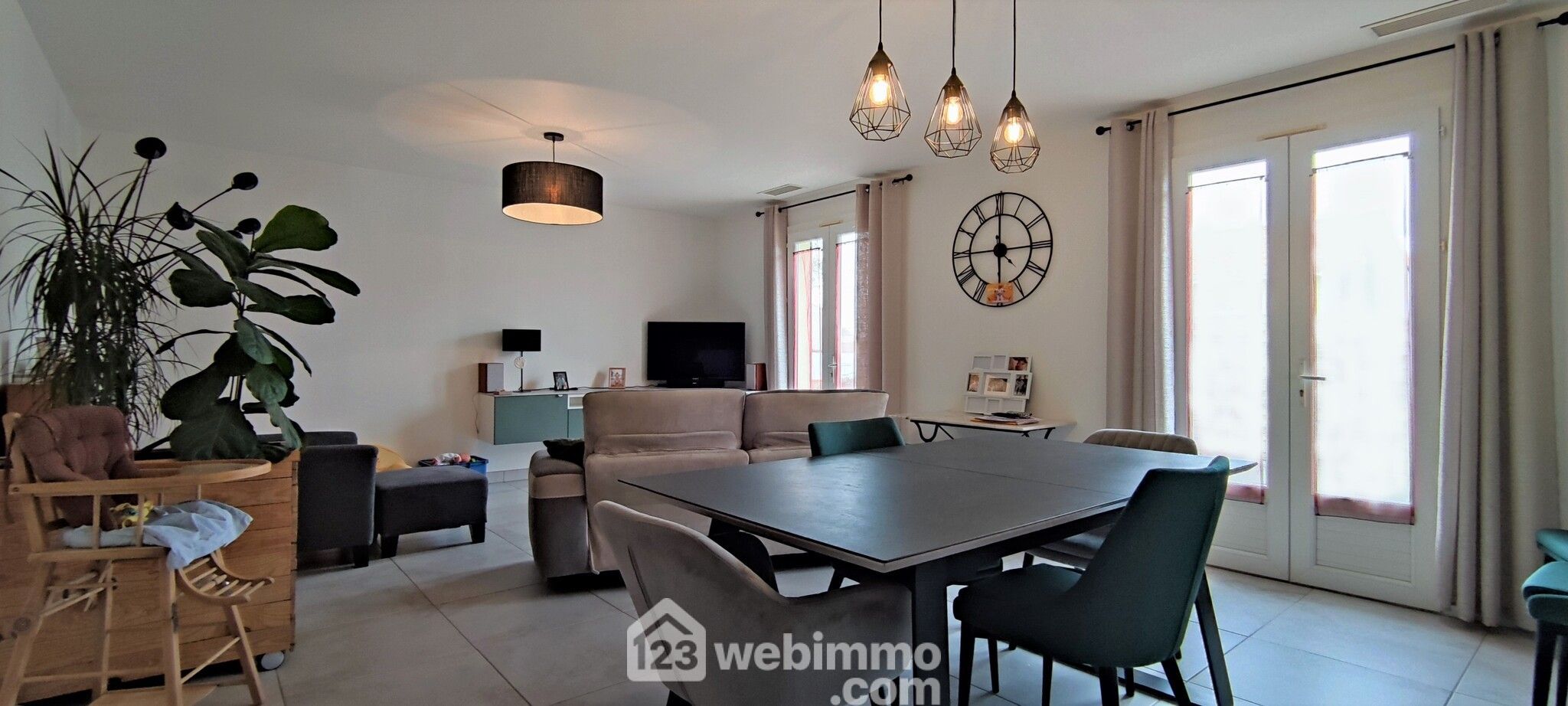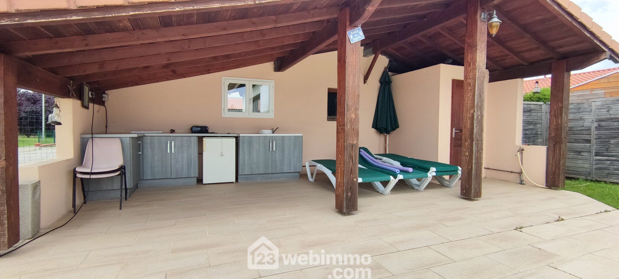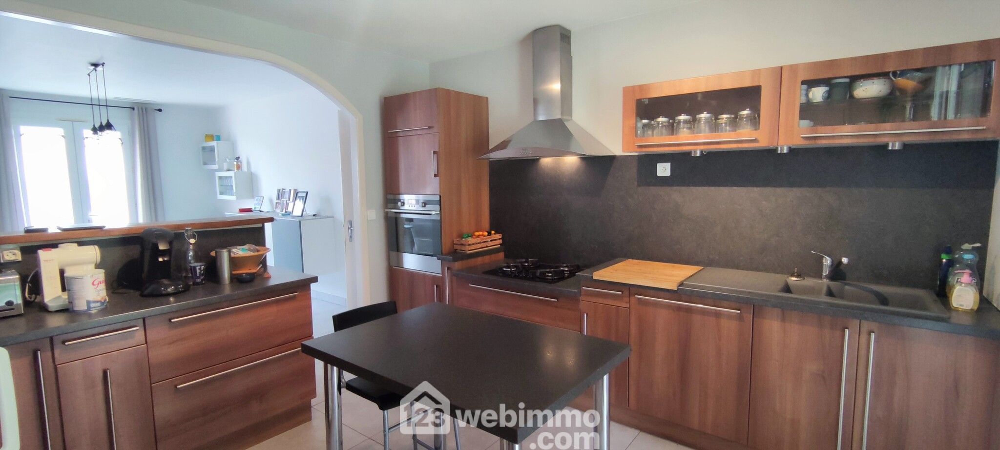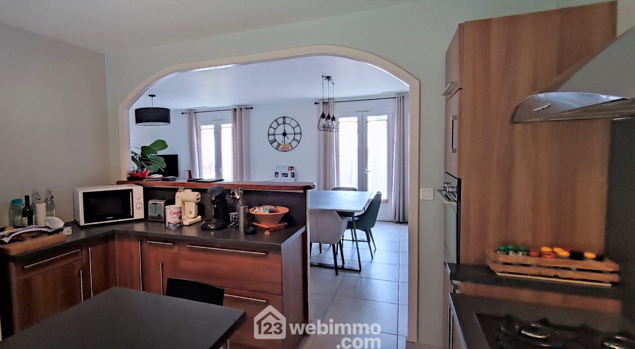 Située dans un lotissement à proximité de toutes les commodités, cette maison de 6 pièces, bien entretenue, est composée au RDC de 3 chambres de 11m² avec placards, d'une chambre de 14m², d'un séjour lumineux de 32m² avec accès direct à une terrasse, d'une cuisine équipée ouverte et fonctionnelle de 12m² avec accès à une seconde terrasse couverte de 18m², d'une buanderie/cellier de 10m² et d'un WC séparé.