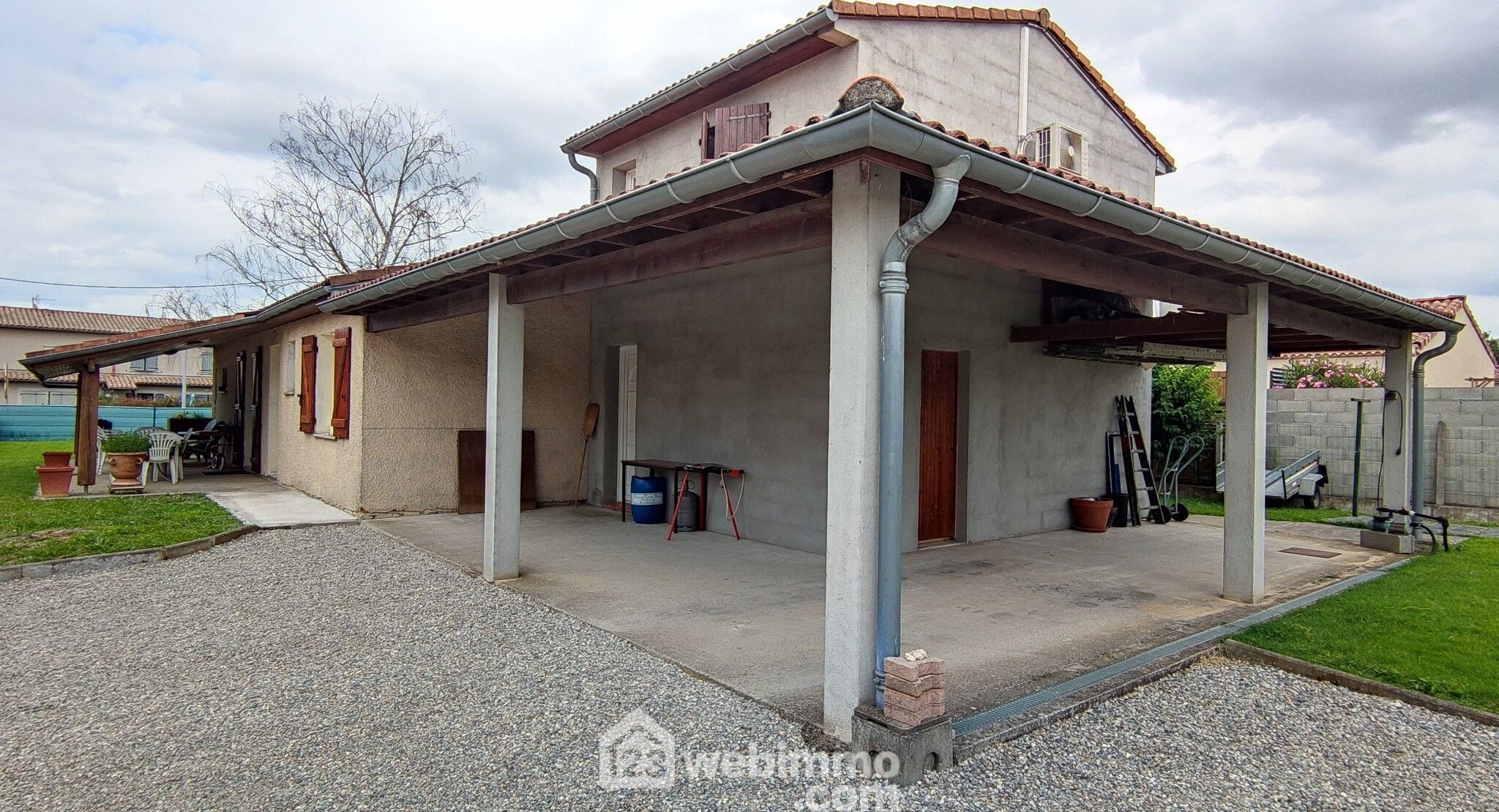 Un préau en angle d'une surface de 42m² permet d'y abriter des véhicules.