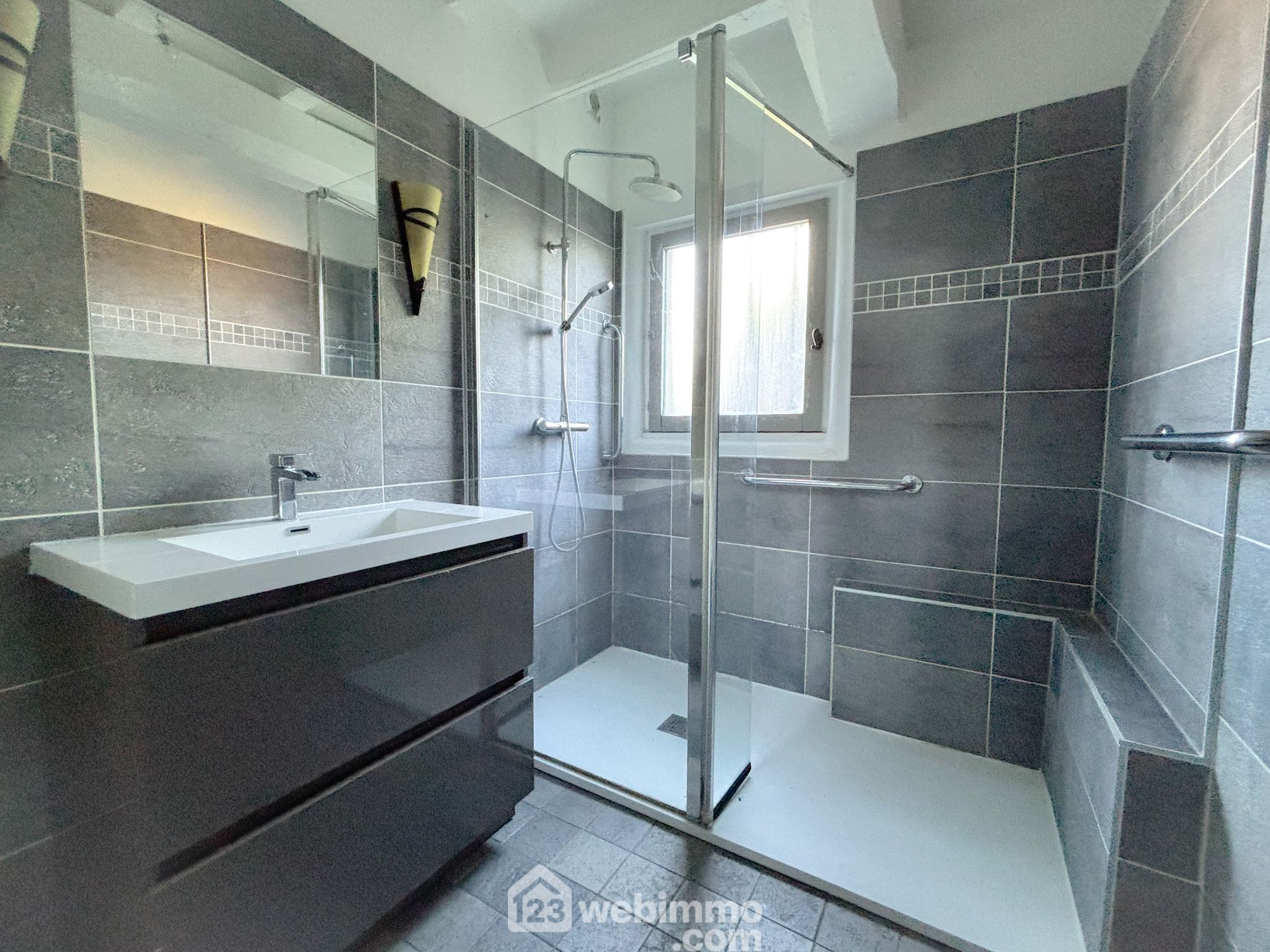 À l’étage, une spacieuse mezzanine dessert deux chambres supplémentaires, un bureau, une salle d’eau et un WC indépendant, offrant de beaux volumes et de multiples possibilités d’aménagement.