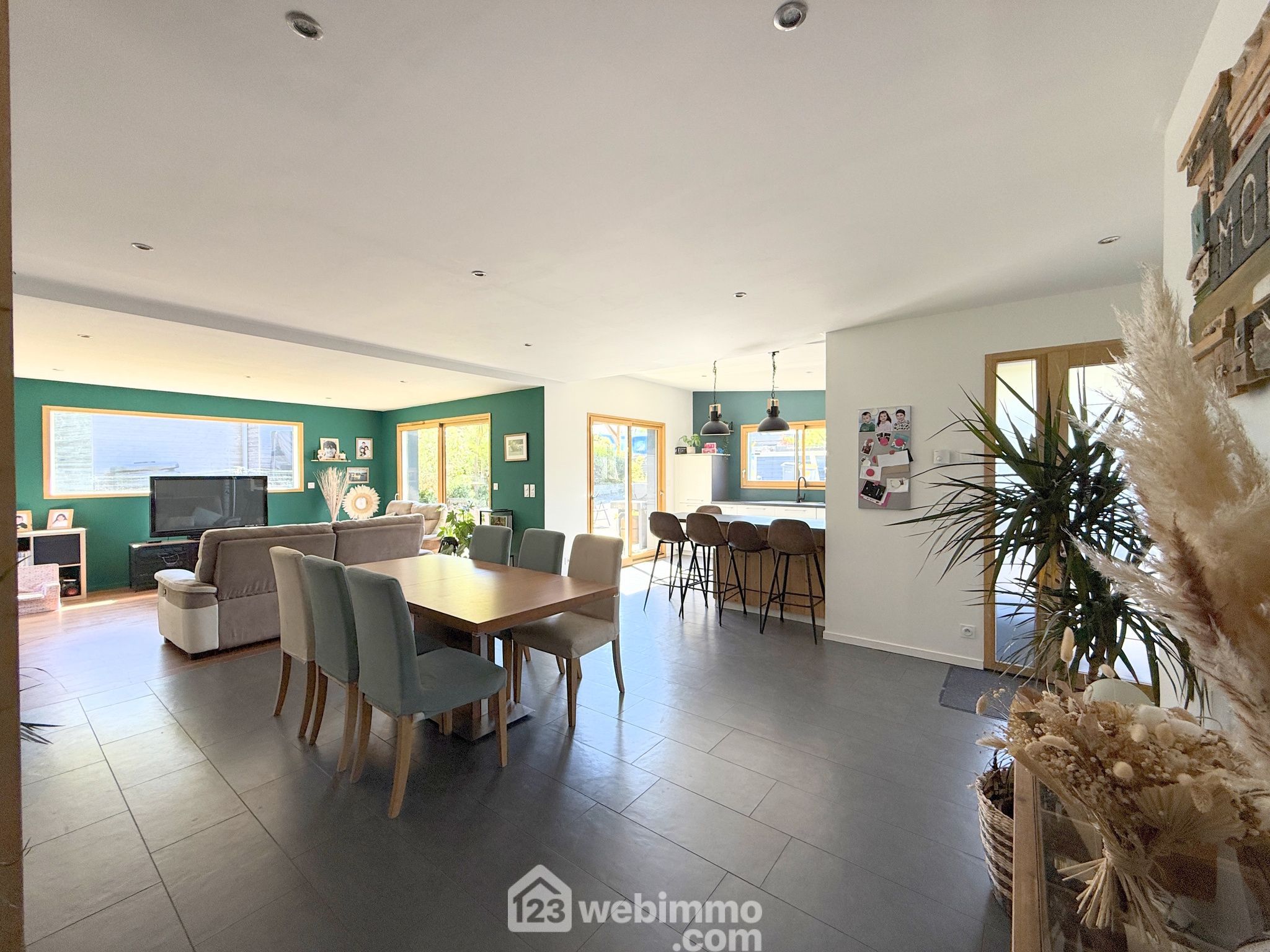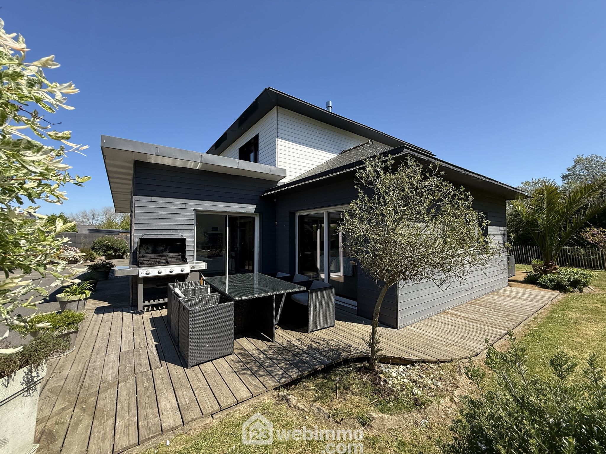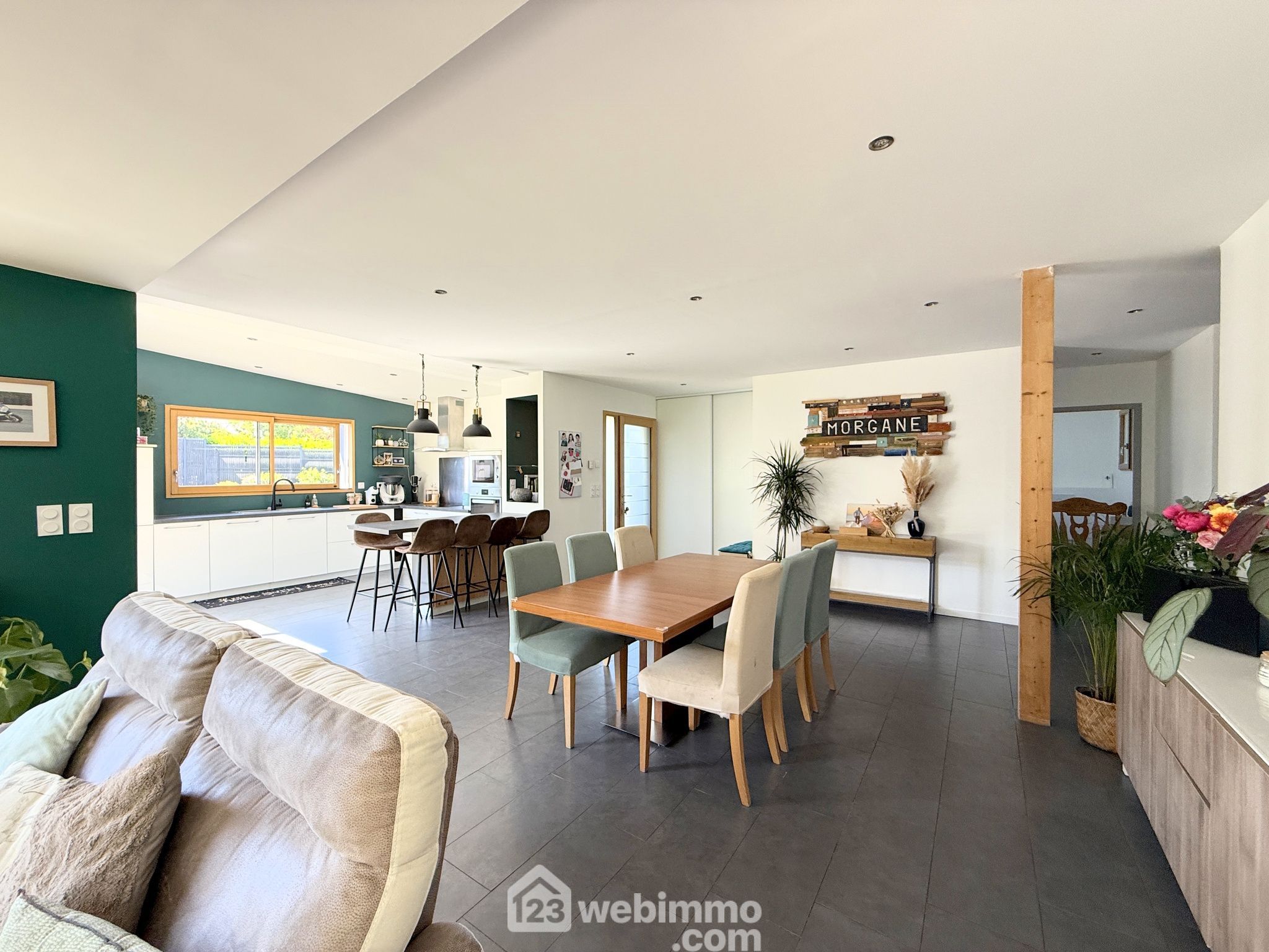 Dès l’entrée, un dressing vous accueille, puis s’ouvre une pièce de vie de 65 m² baignée de lumière naturelle, orientée sud-ouest, avec sa cuisine ouverte signée Schmidt. L’ensemble s’ouvre sur deux terrasses bois, sans vis-à-vis, pour profiter du jardin en toute saison.