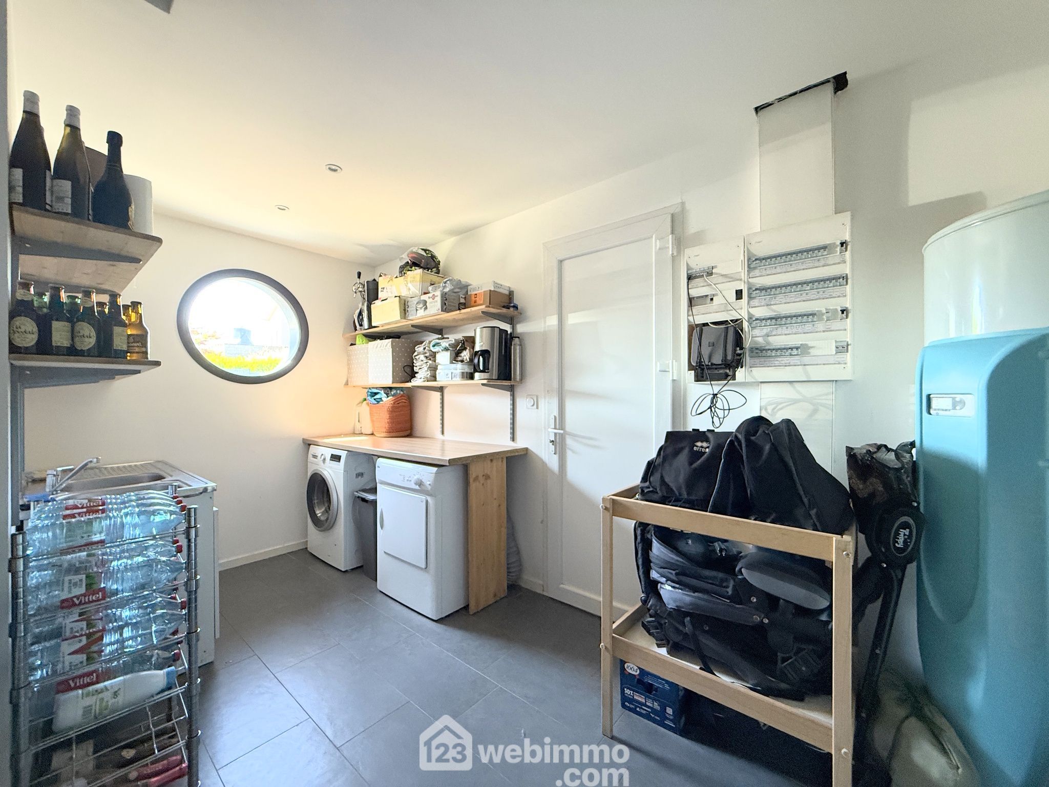 La maison est équipée de menuiseries aluminium/bois avec volets roulants électriques, d’une VMC, de la fibre optique pour rester connecté, et l’ensemble de l’installation électrique est conforme. L’assainissement est relié au tout-à-l’égout et répond aux normes actuelles. Le garage, accessible depuis le cellier ou l’extérieur, dispose de l’eau, de l’électricité et d’une porte motorisée.