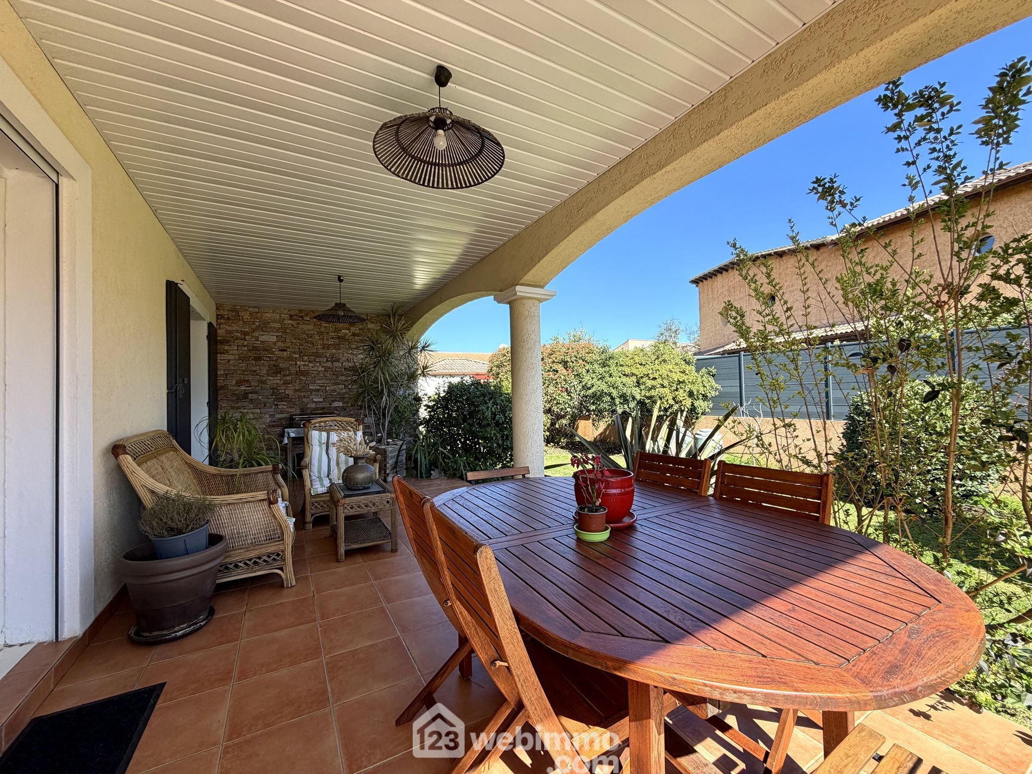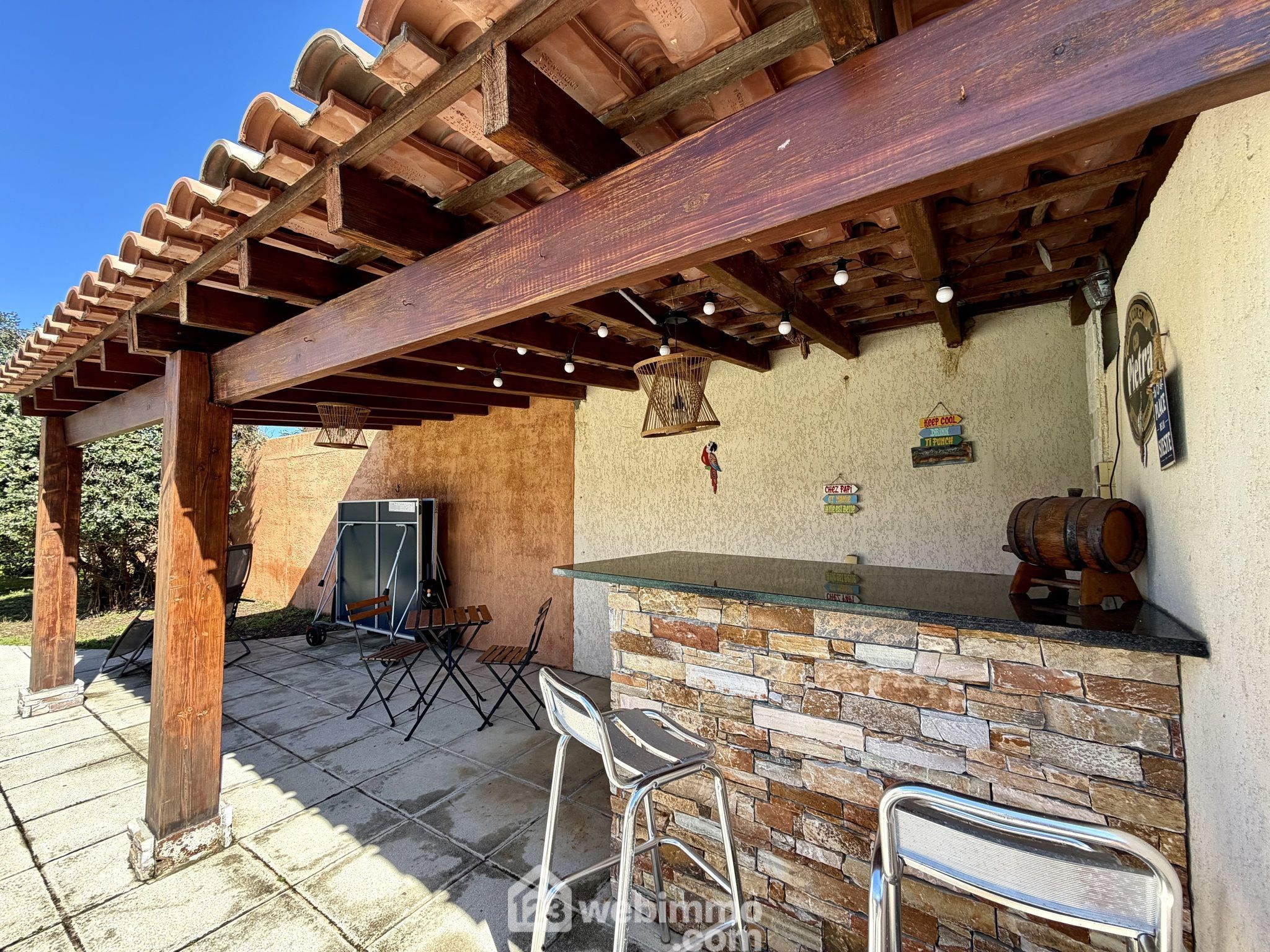 Positionnée à 300 mètres de la plage seulement, cette maison ne subit pas le bruit de la route de la marana et fait parti d'un lotissement résidentiel de 30 maisons.