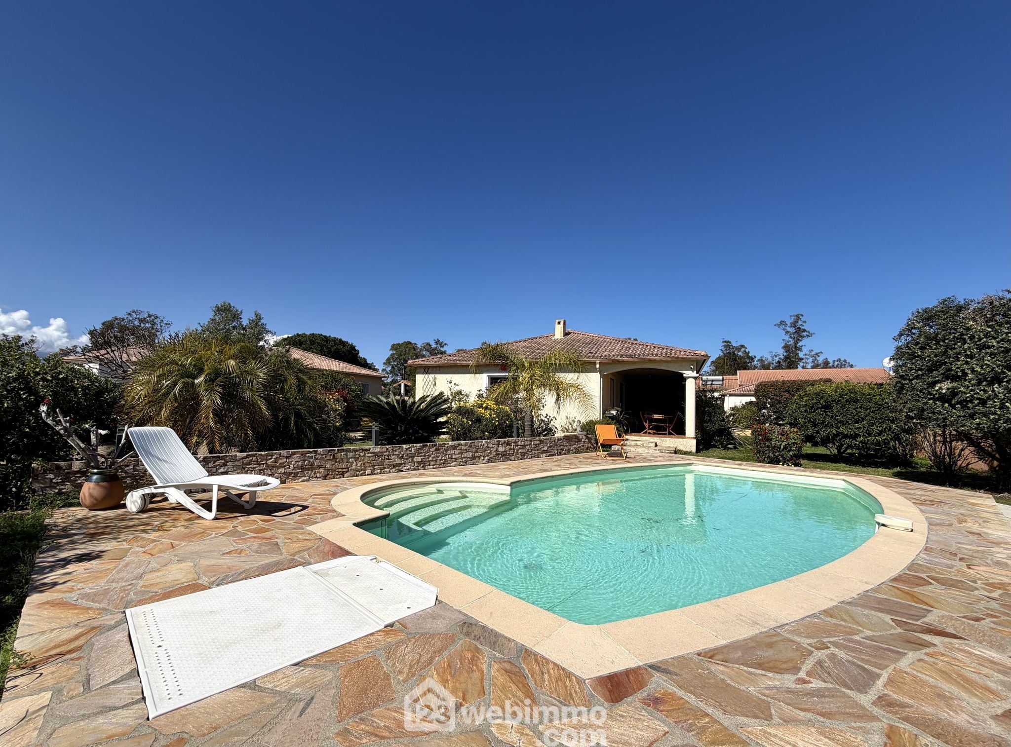 LUCCIANA LA MARANA - Belle maison de 2006 avec piscine, plain-pied de 151 m2 (T5 + 1 T1 indépendant) sur une parcelle plate de 1070 m2.