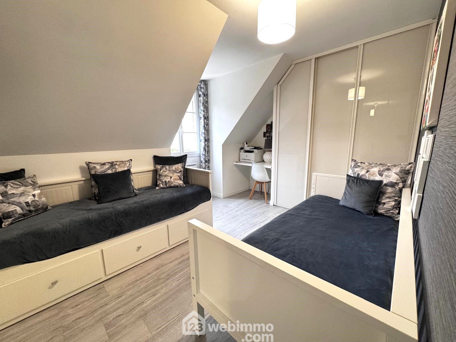 L’étage a été pensé pour le confort de toute la famille. Vous y découvrirez une belle suite parentale avec dressing et salle d’eau privative, véritable espace intime. Trois autres chambres avec rangements accueillent enfants ou invités, accompagnées d’une seconde salle de bains équipée d’une baignoire et d’une douche. Des WC indépendants complètent ce niveau.
