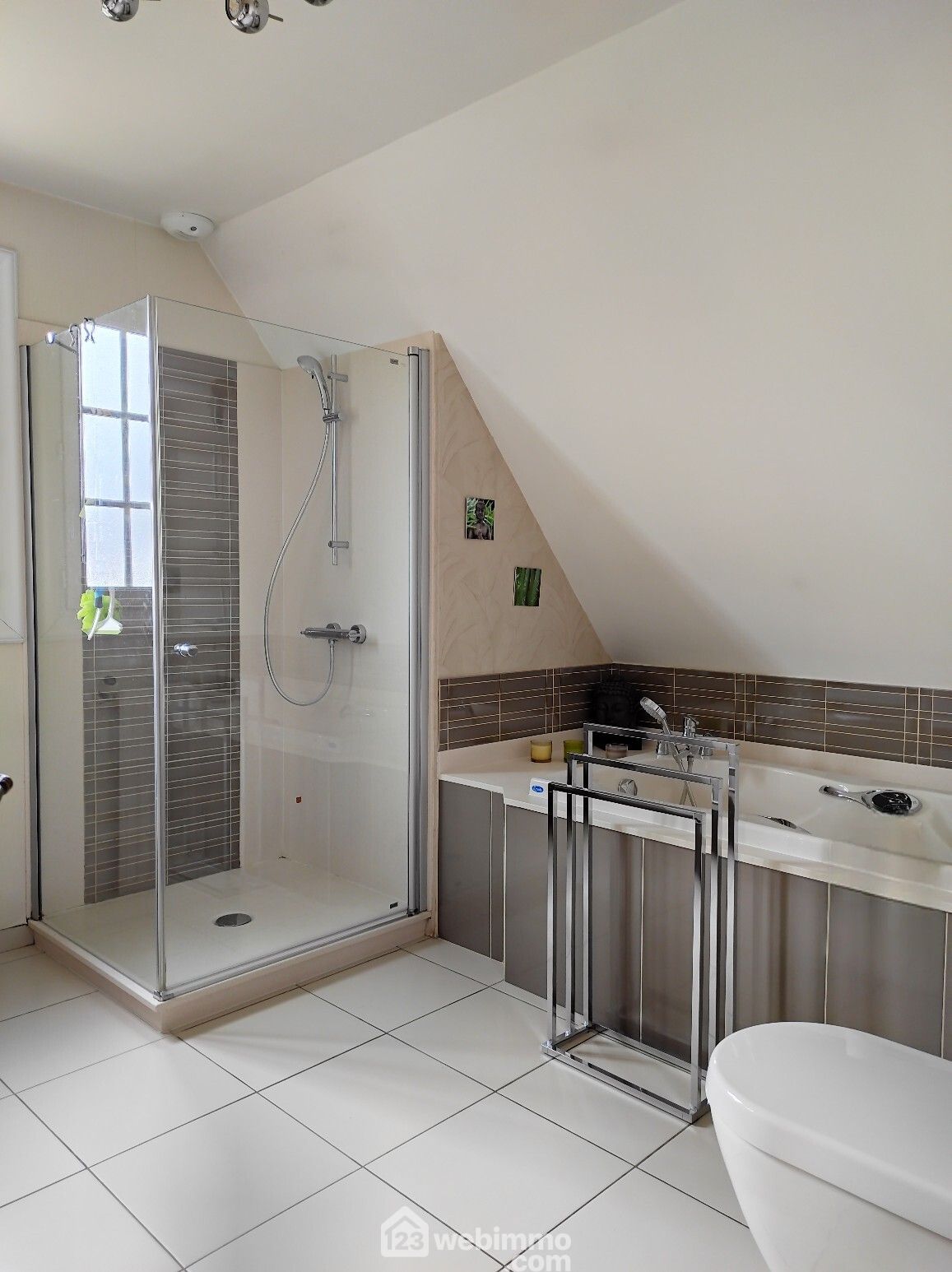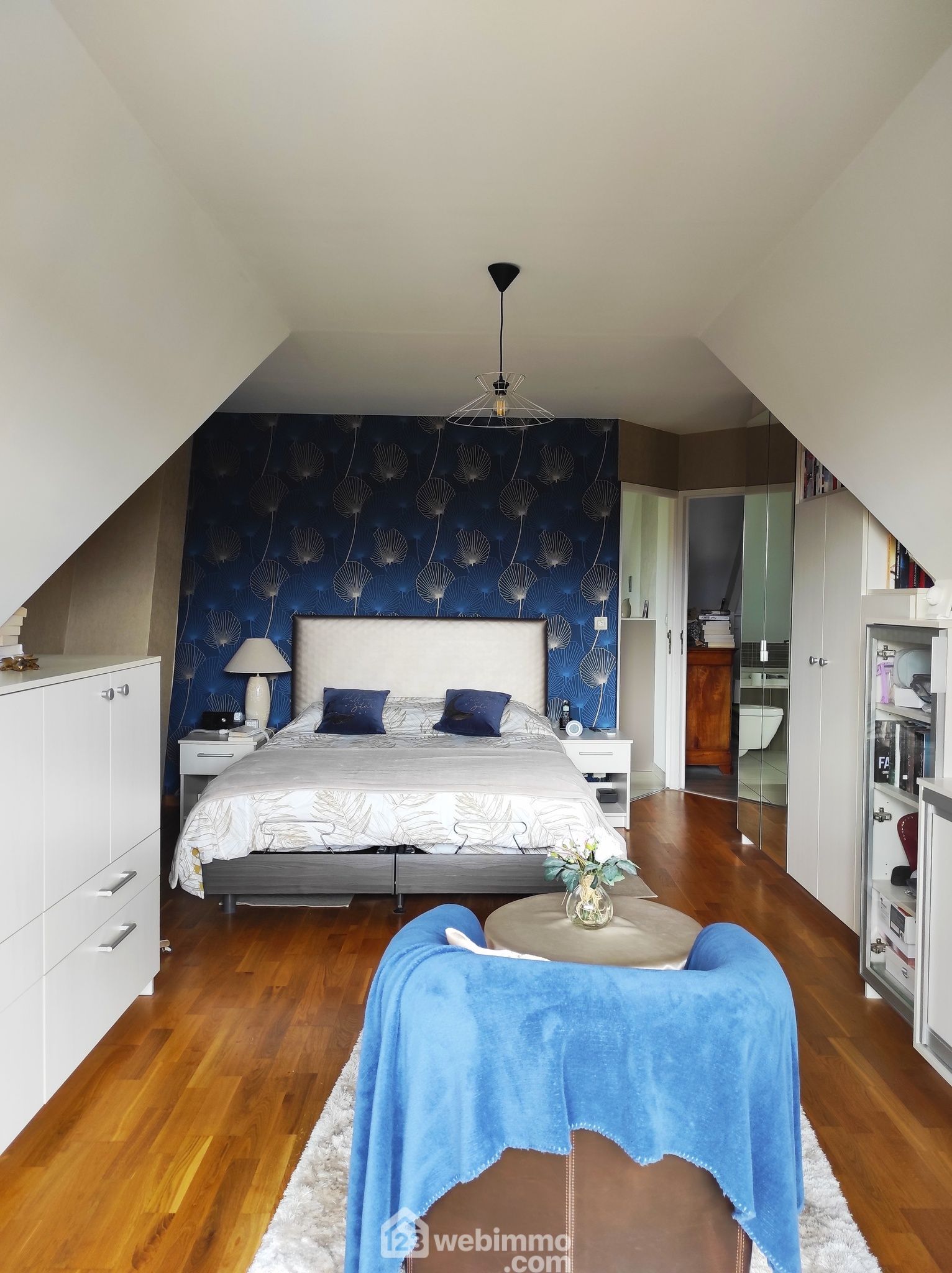Au 1er étage : Palier desservant une belle suite parentale avec une partie nuit ouverte sur un balcon surplombant le jardin et équipée de nombreux rangements intégrés et une salle de bain avec baignoire, douche et WC 25 m² pour le tout. Un espace nuit pour les enfants avec trois chambres supplémentaires et une salle d'eau avec WC.