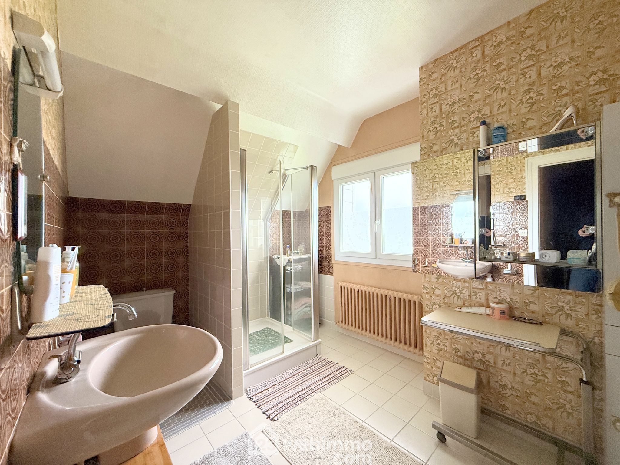 À l'étage, sur un plancher bois, le palier couloir de 6m2 dessert 3 grandes chambres de 11 à 15m2 habitables avec dressing, un bureau mansardé de 9m2 au sol, et une salle de douche de 5,5m2 avec WC.