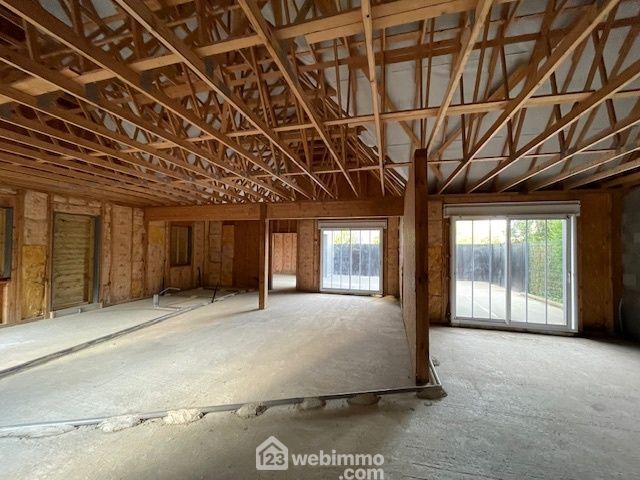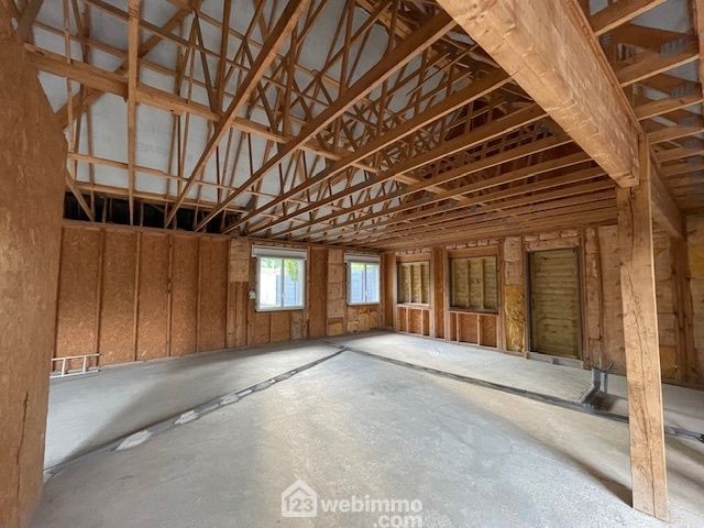 Réf: 9044 / Au calme et à proximité immédiate du centre-ville, de ses écoles et commerces, en retrait de rue, et derrière joli mur de clôture, magnifique construction de grande qualité hors d'eau, hors d'air, en bois extérieur noble (mélèze), couverte en ardoises naturelles de qualité, vivable de plain-pied (154.46 m²).