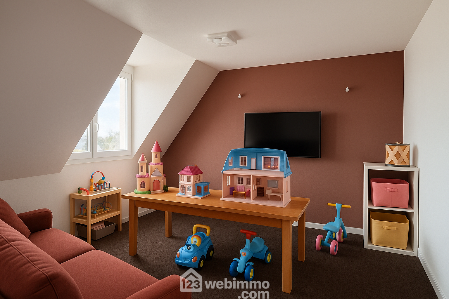 Dès l’entrée, vous serez charmé par son espace accueillant avec placard de rangement. Profitez d’une pièce de vie lumineuse de 48 m² avec cuisine ouverte idéale pour vos moments en famille ou entre amis. Une pièce palière de 20 m² vous offre un bel espace modulable selon vos envies : bureau, salle de jeux ou coin lecture.