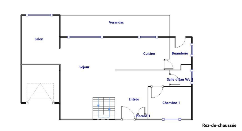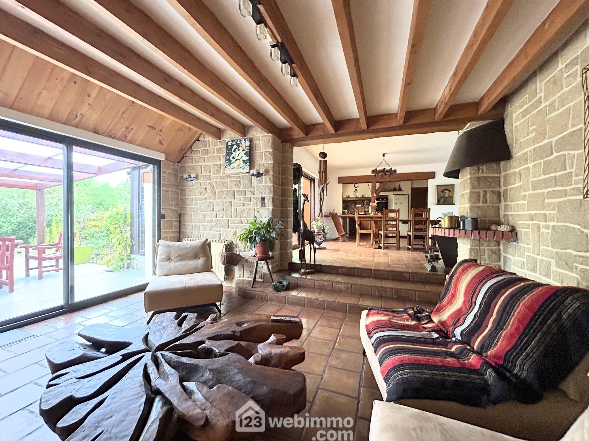 Le rez-de-chaussée propose un véritable espace de vie de plain-pied avec une vaste pièce de vie de 82 m² regroupant l’entrée, le salon, la salle à manger et la cuisine aménagée et équipée. L’ensemble est prolongé par une véranda lumineuse de 22 m², parfaite pour profiter du jardin en toute saison. Une chambre, une salle de douche avec WC ainsi qu’un cellier complètent ce niveau, permettant une vie confortable sans contrainte d’escalier.
