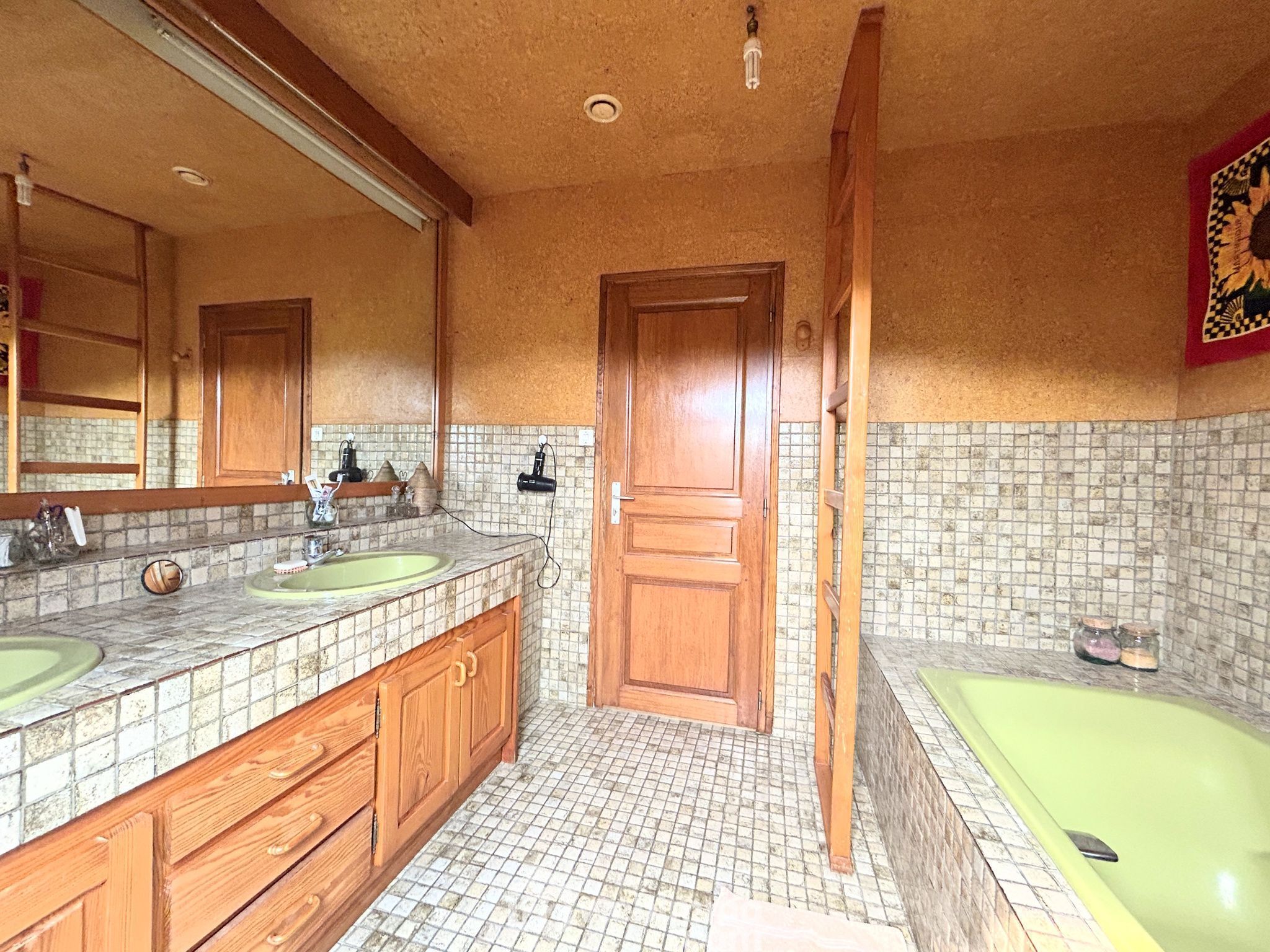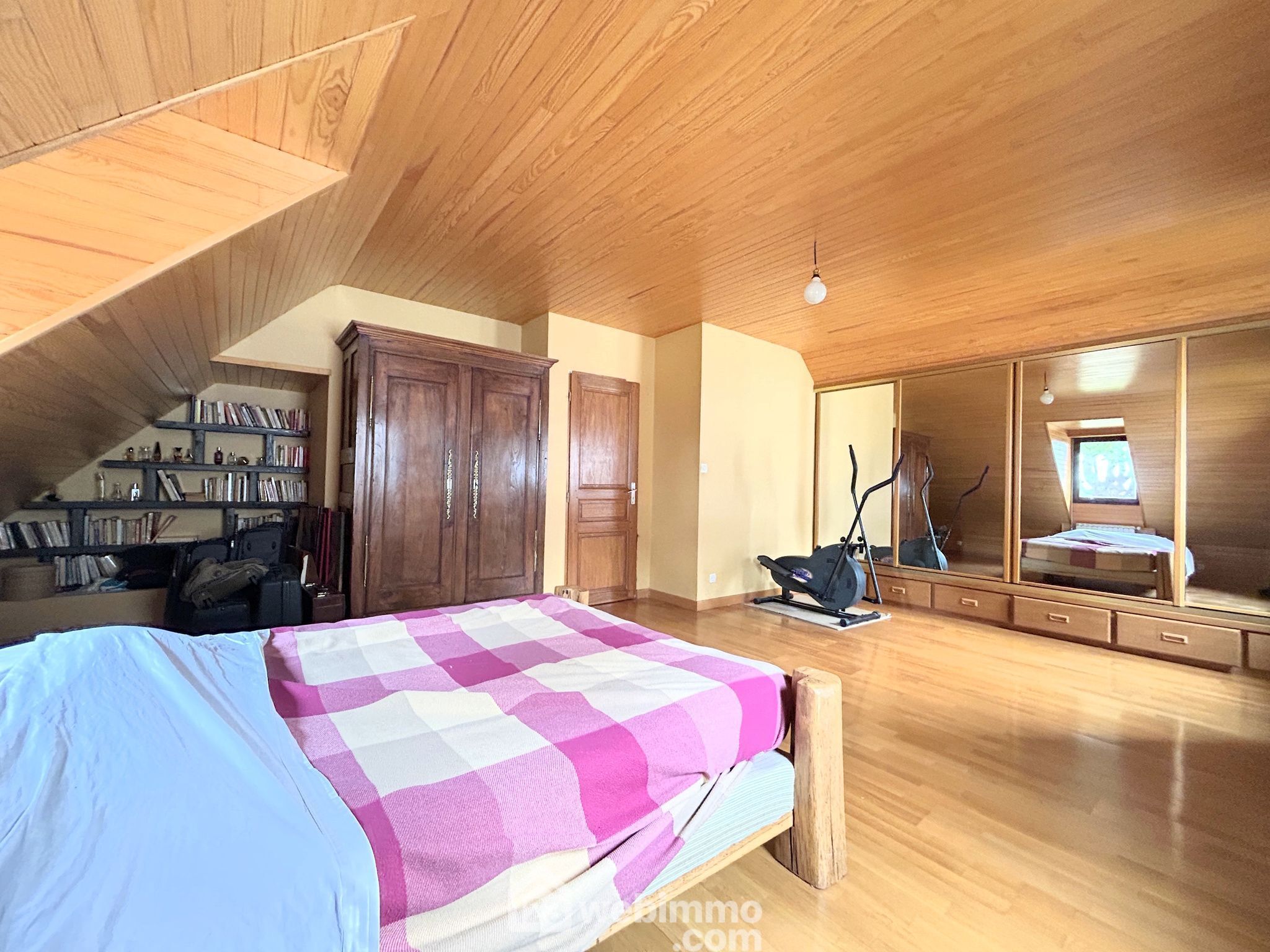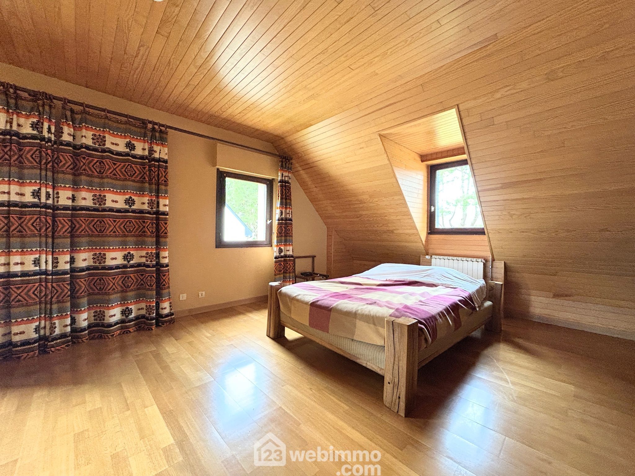 À l’étage, le palier aménagé en mezzanine dessert deux grandes chambres de 13 m² et 23 m² habitables, une très spacieuse salle de bains et un WC séparé, idéal pour recevoir famille et petits-enfants en toute indépendance.