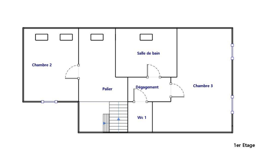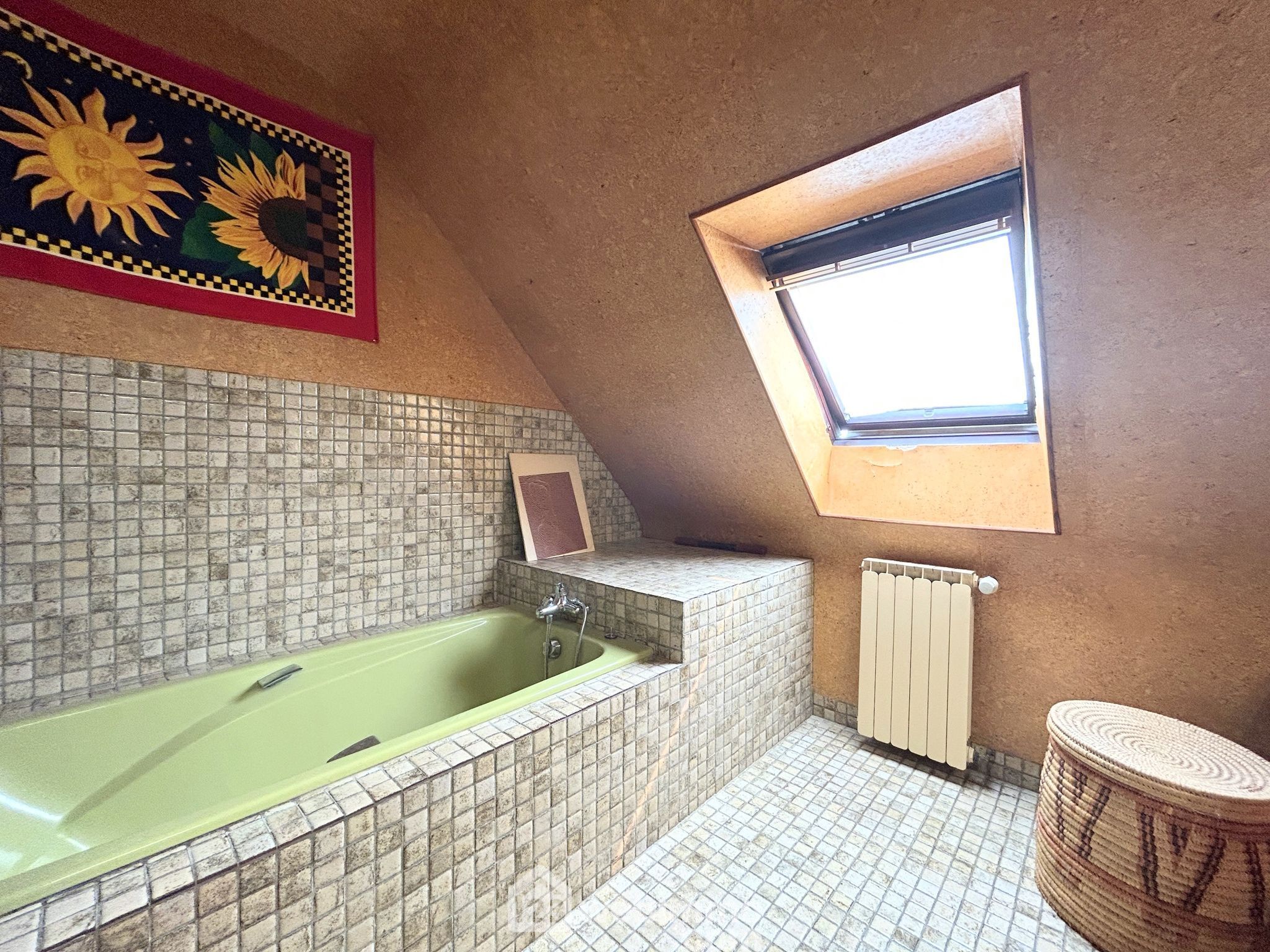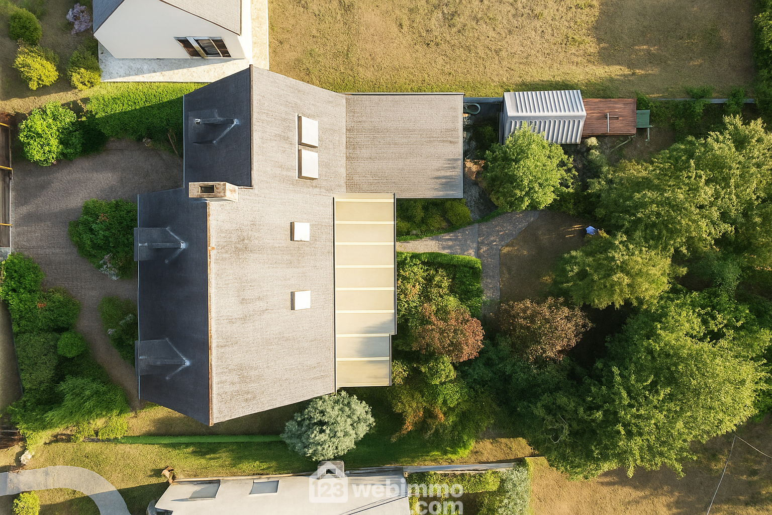 À l’étage, le palier aménagé en mezzanine dessert deux grandes chambres de 13 m² et 23 m² habitables, une très spacieuse salle de bains et un WC séparé, idéal pour recevoir famille et petits-enfants en toute indépendance.