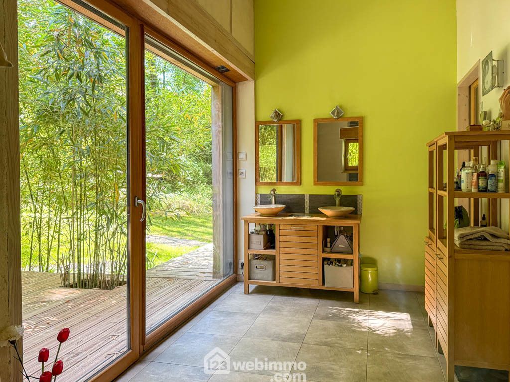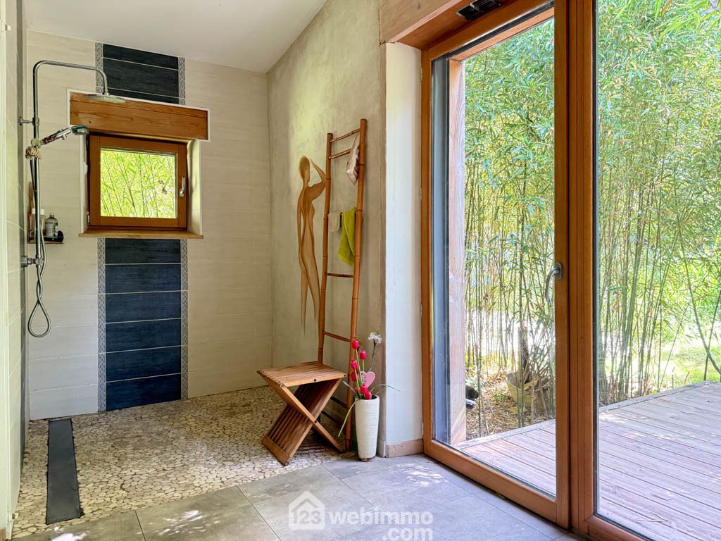 Une salle d’eau avec douche à l’italienne et vue privilégiée sur la nature & terrasse.