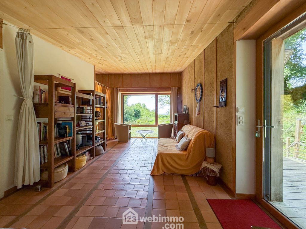Accessible depuis le jardin d’hiver et par la terrasse extérieure, ce second espace est totalement modulable : actuellement aménagé en gîte autonome avec cuisine, pièce de vie (ou chambre), salle d’eau et toilettes sèches. Il peut être conservé en hébergement saisonnier, utilisé comme espace professionnel, ou rattaché à la maison principale pour créer un grand logement familial.