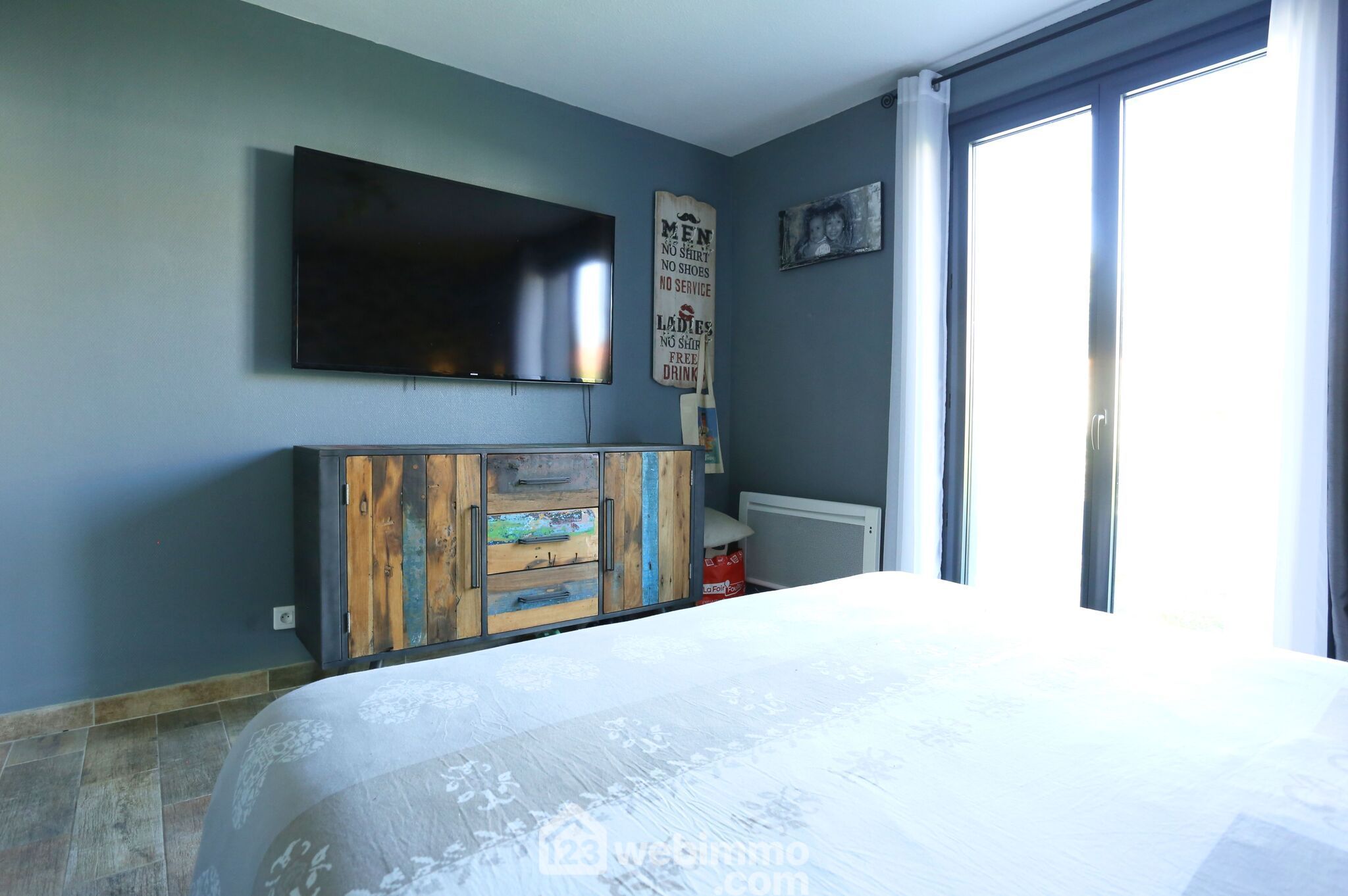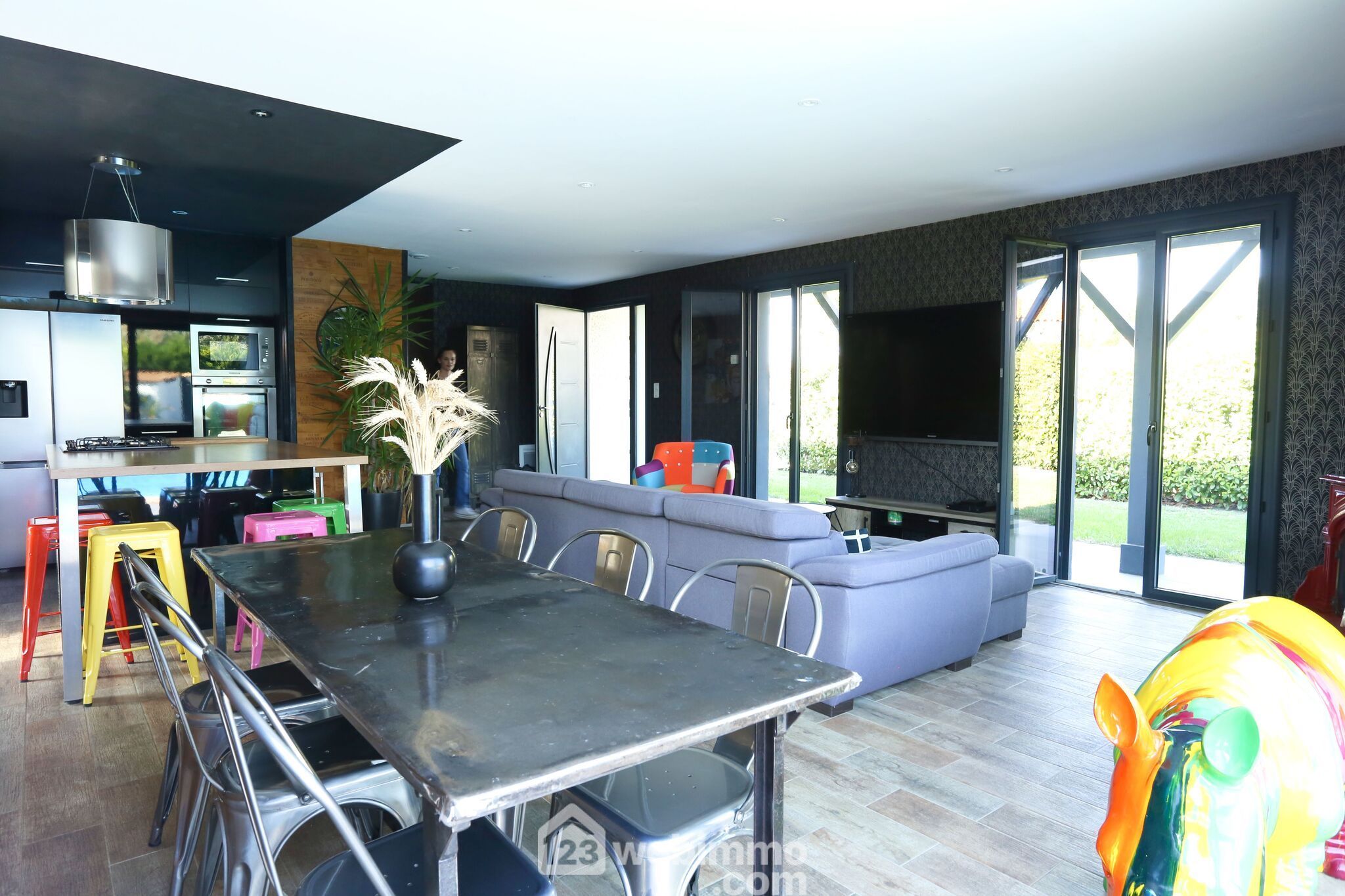 De Plain-pied, elle a été intégralement rénovée en 2016. Extension de 50 m² réalisée en 2022. Elle se compose d'une spacieuse pièce de vie comprenant salon/sam avec cuisine équipée.
