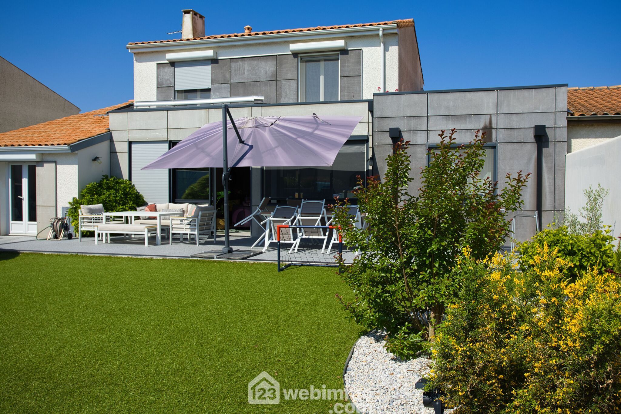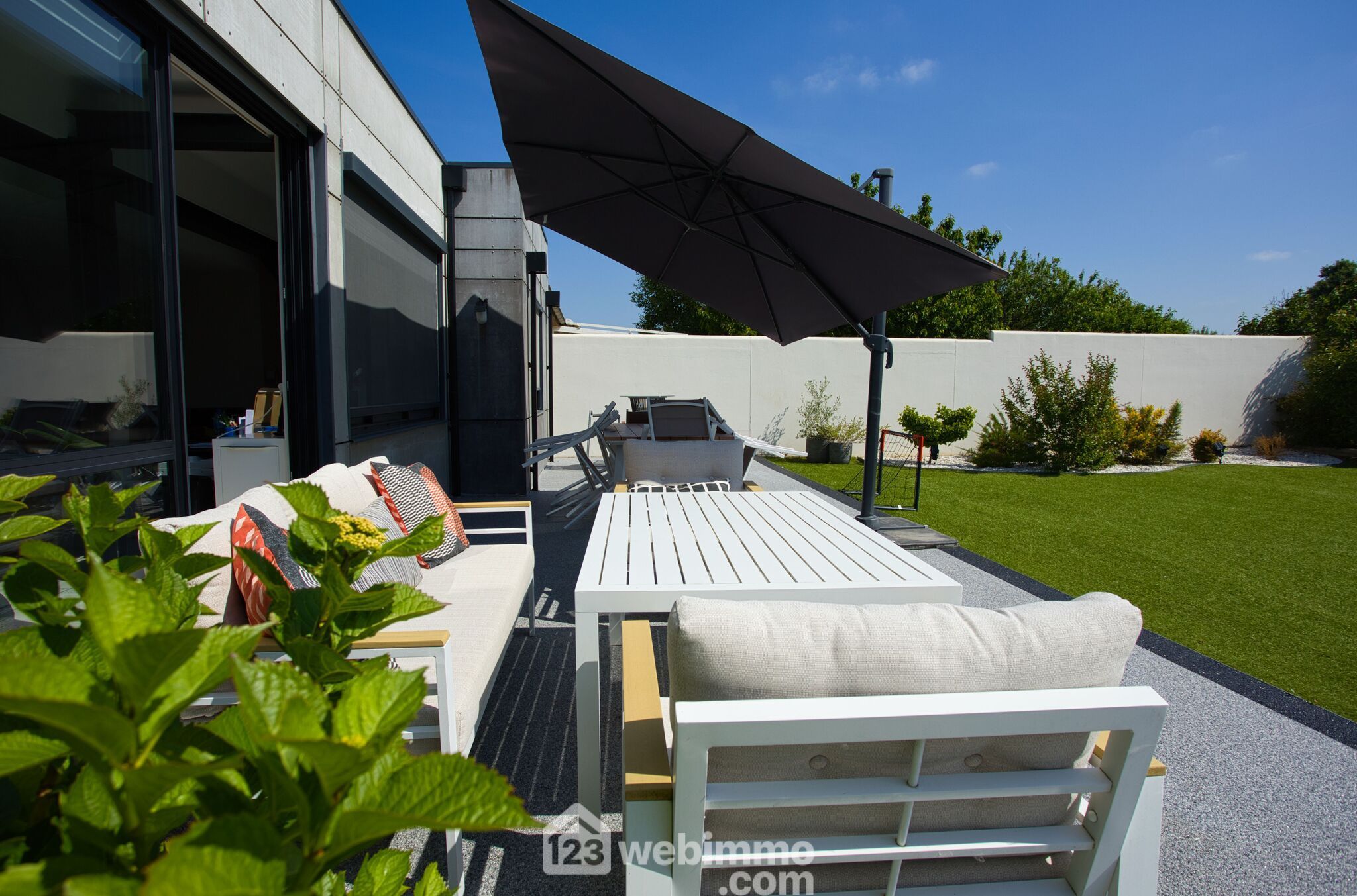 Le jardin clos de 500 m², sans vis-à-vis, offre un bel équilibre entre intimité et simplicité d’entretien. Un garage double de 36 m² complète les prestations.