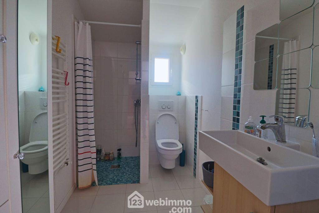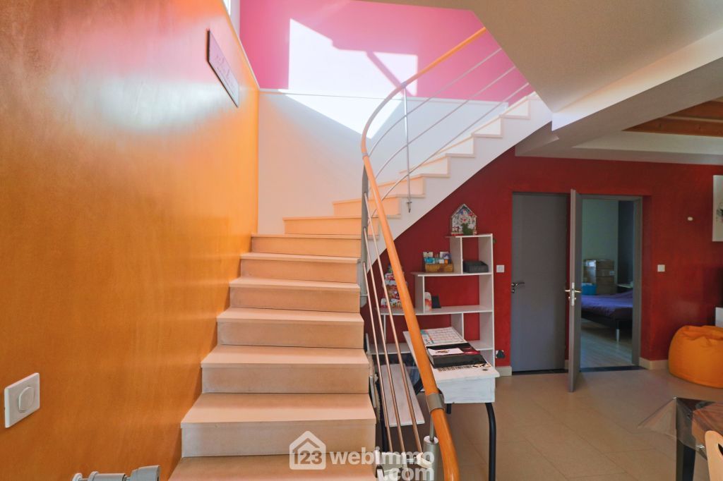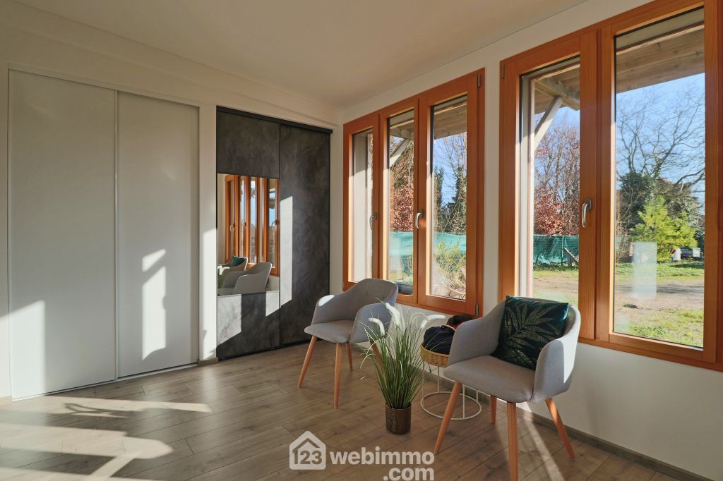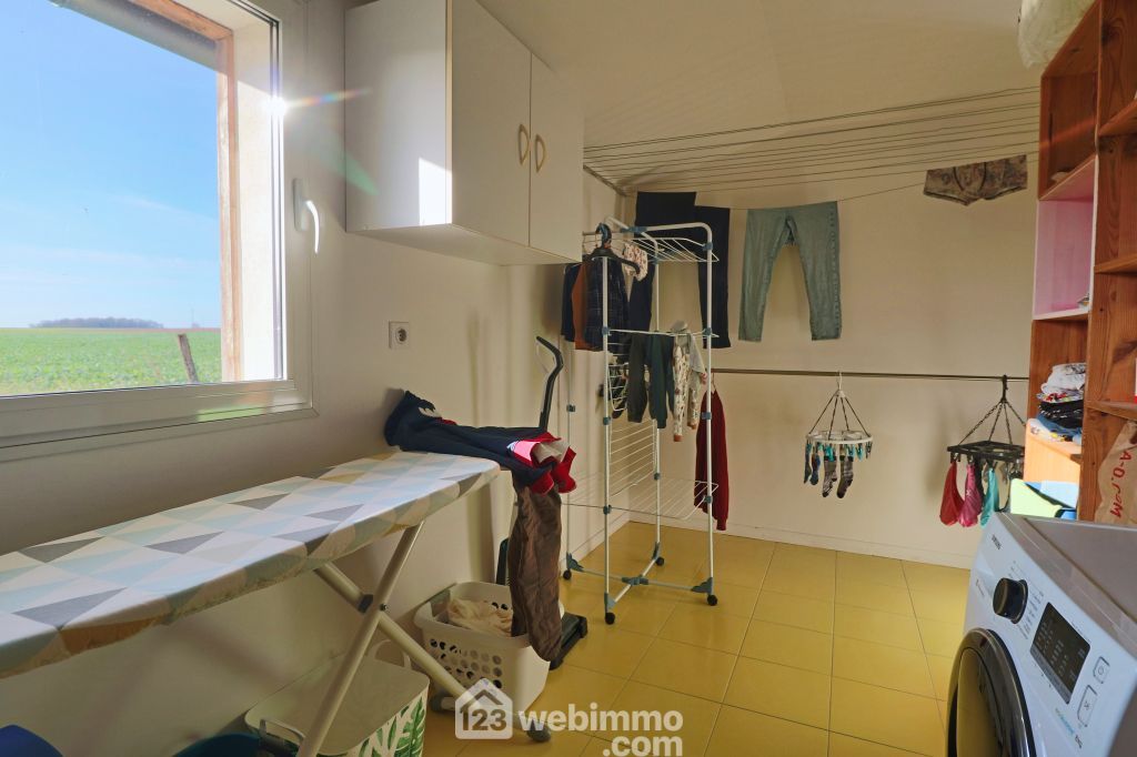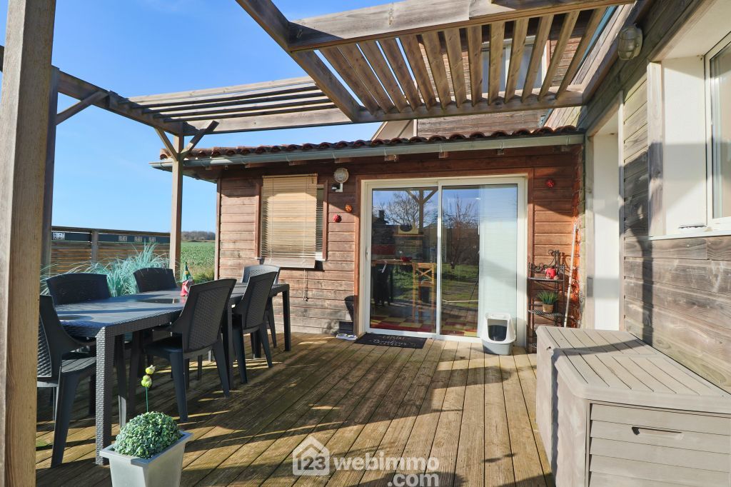 86170 Saint-Martin-la-Pallu. Dans un petit hameau à 3 km de Neuville-du-Poitou, maison basse consommation en ossature bois et bardage clin de qualité. L'entrée avec grands placards ouvre actuellement sur un espace salon avec possibilité d'en faire un espace jeux, le local technique avec chauffe-eau solaire et sur le séjour. Belle pièce de vie de 57 m2 avec espace repas, coin salon et la cuisine ouverte, aménagée et équipée, naturellement très lumineuse. Attenante à la cuisine, la buanderie de 9 m2. De l'autre côté du séjour, une chambre d'appoint de 10,2 m2 avec placard, 1 suite parentale (chambre de 13 m2, dressing et salle d'eau privative) et 1 WC indépendant. Pas d'espace de perdu au rez-de-chaussée grâce à une distribution astucieuse. A l'étage, un grand palier très lumineux distribue 2 chambres de 9 m2 et une salle d'eau avec WC. A l'extérieur, terrasse avec brise soleil, un jardin arboré et partiellement clos avec abri de jardin et petit atelier. Prête à habiter, il ne reste plus qu'à poser ses valises pour cette maison familiale de qualité à proximité de Neuville, sans vis-à-vis. Le charme de la campagne proche des commodités.