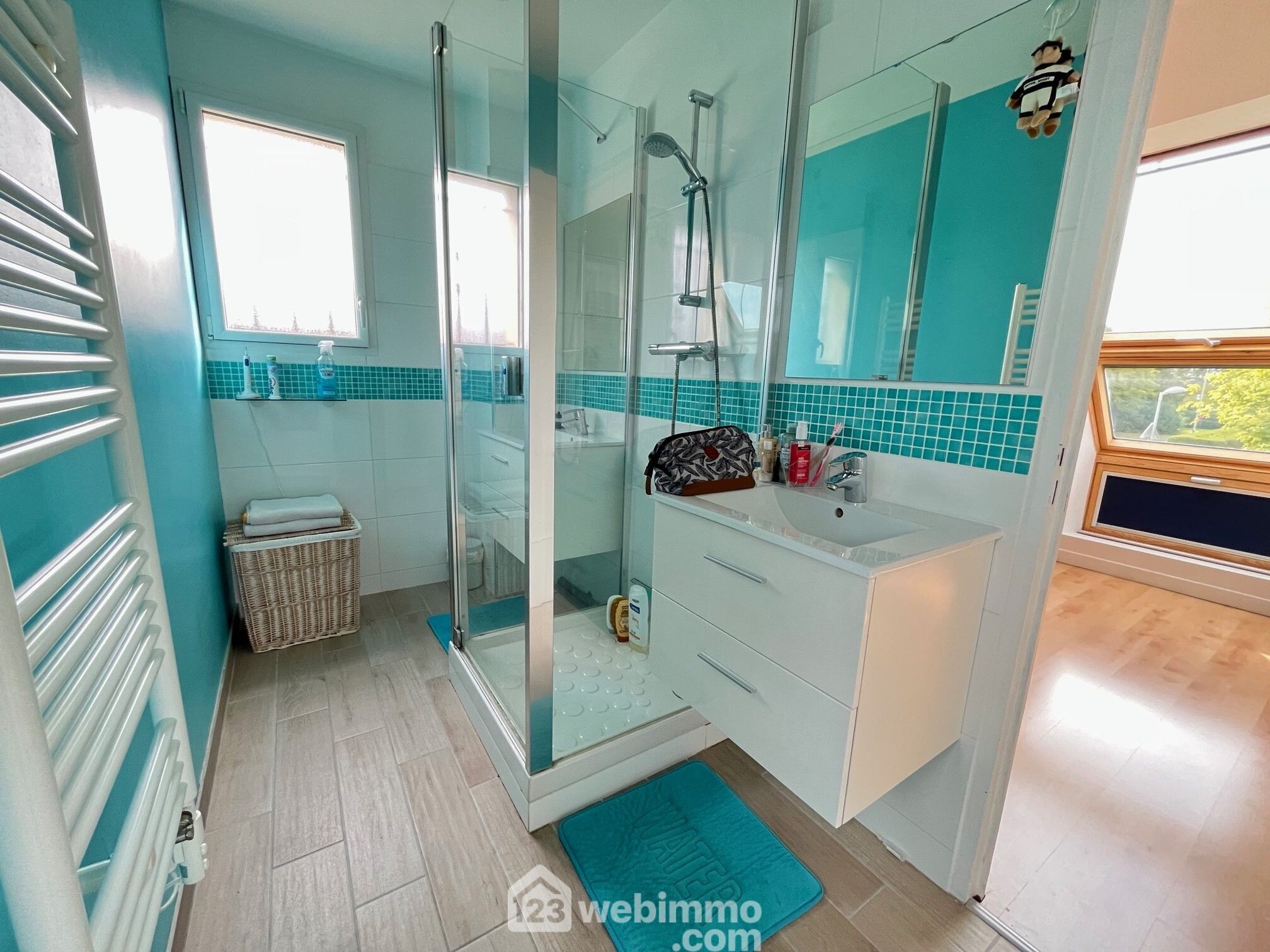 Un vaste palier dessert deux chambres, partageant une salle d'eau commune, une suite parentale de 33 m², avec dressing aménagé et salle de bain privative comprenant baignoire et douche, un deuxième dressing pour optimiser le rangement et un WC indépendant.