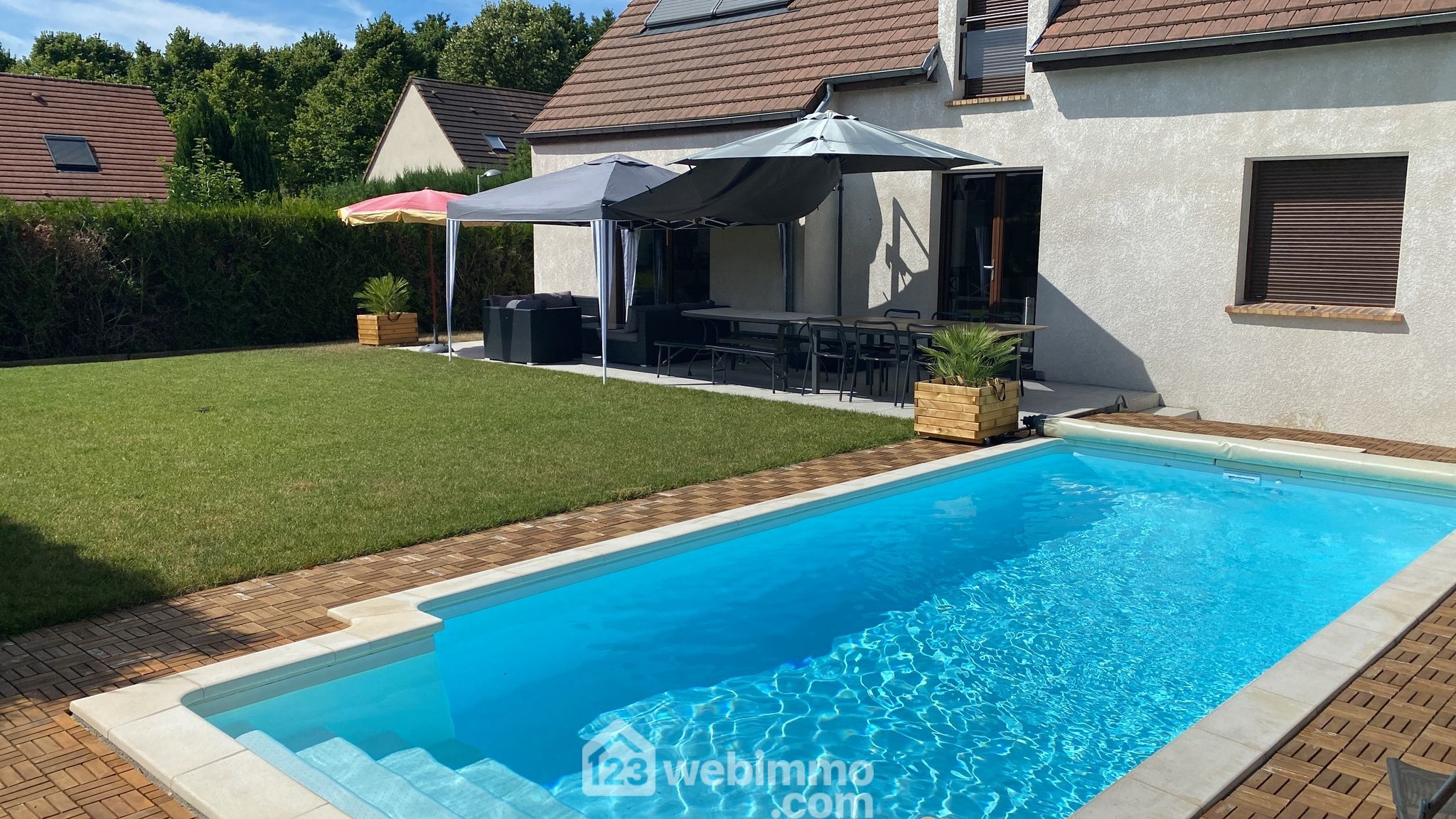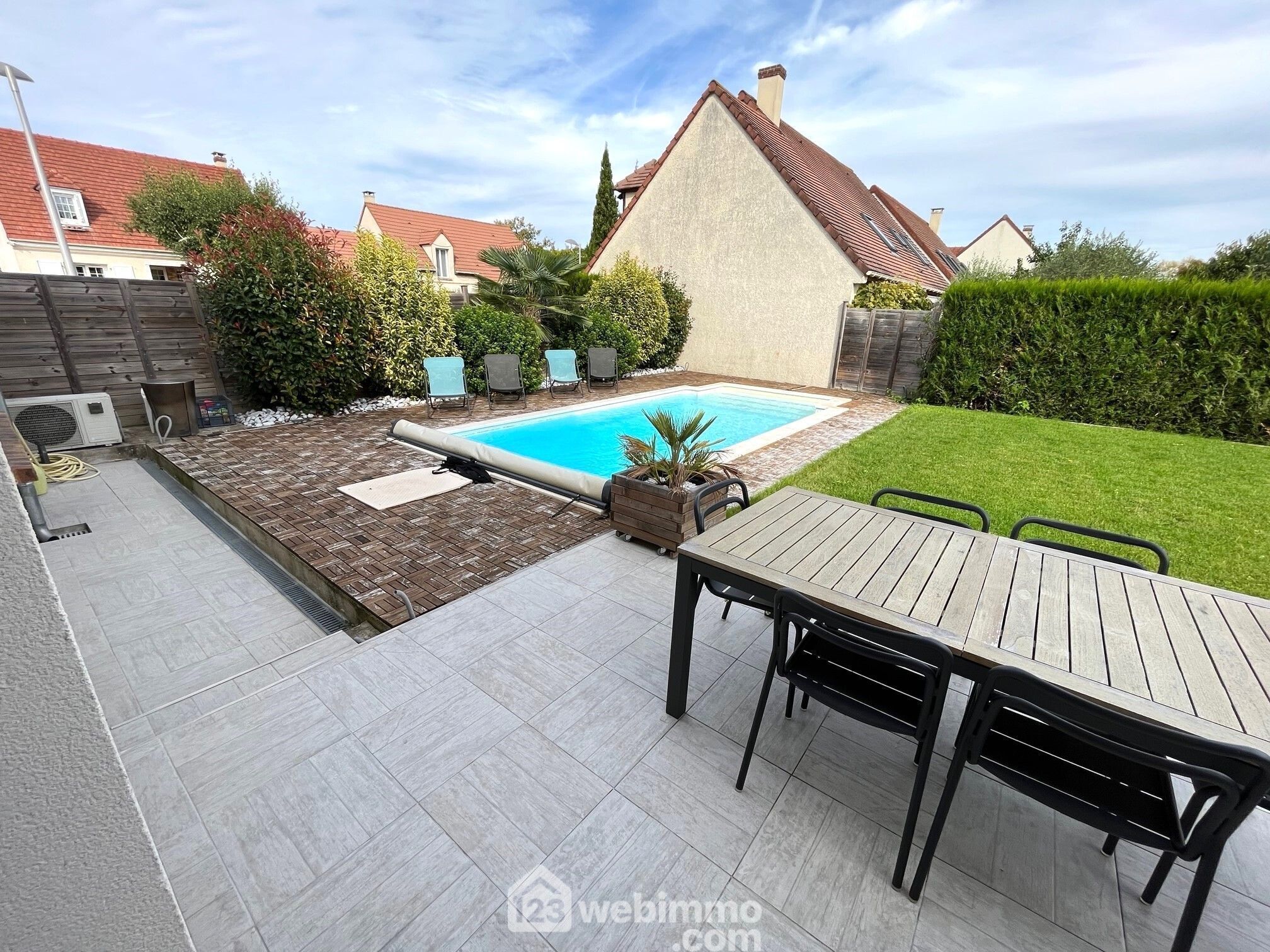 Profitez d'un jardin avec terrasse, idéal pour les moments de détente en plein air et une piscine chauffée qui ajoute une touche de luxe et de confort à votre espace extérieur.