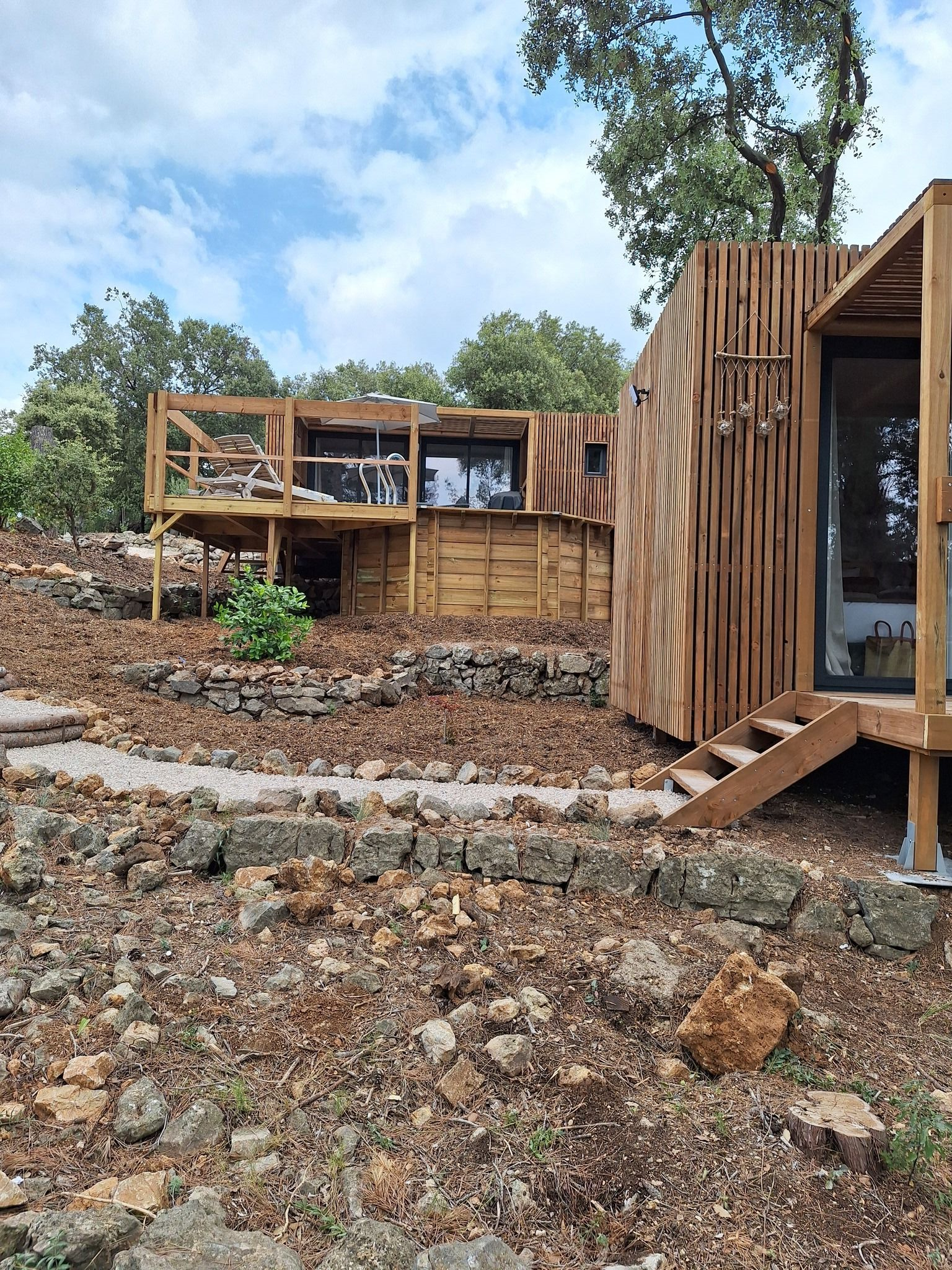 Au Thoronet: Villa de 124M², 2 Tiny houses (19,70M² chacune), 6 chambres, bureau, piscine, garage, terrain 2700M²,5 terrasses