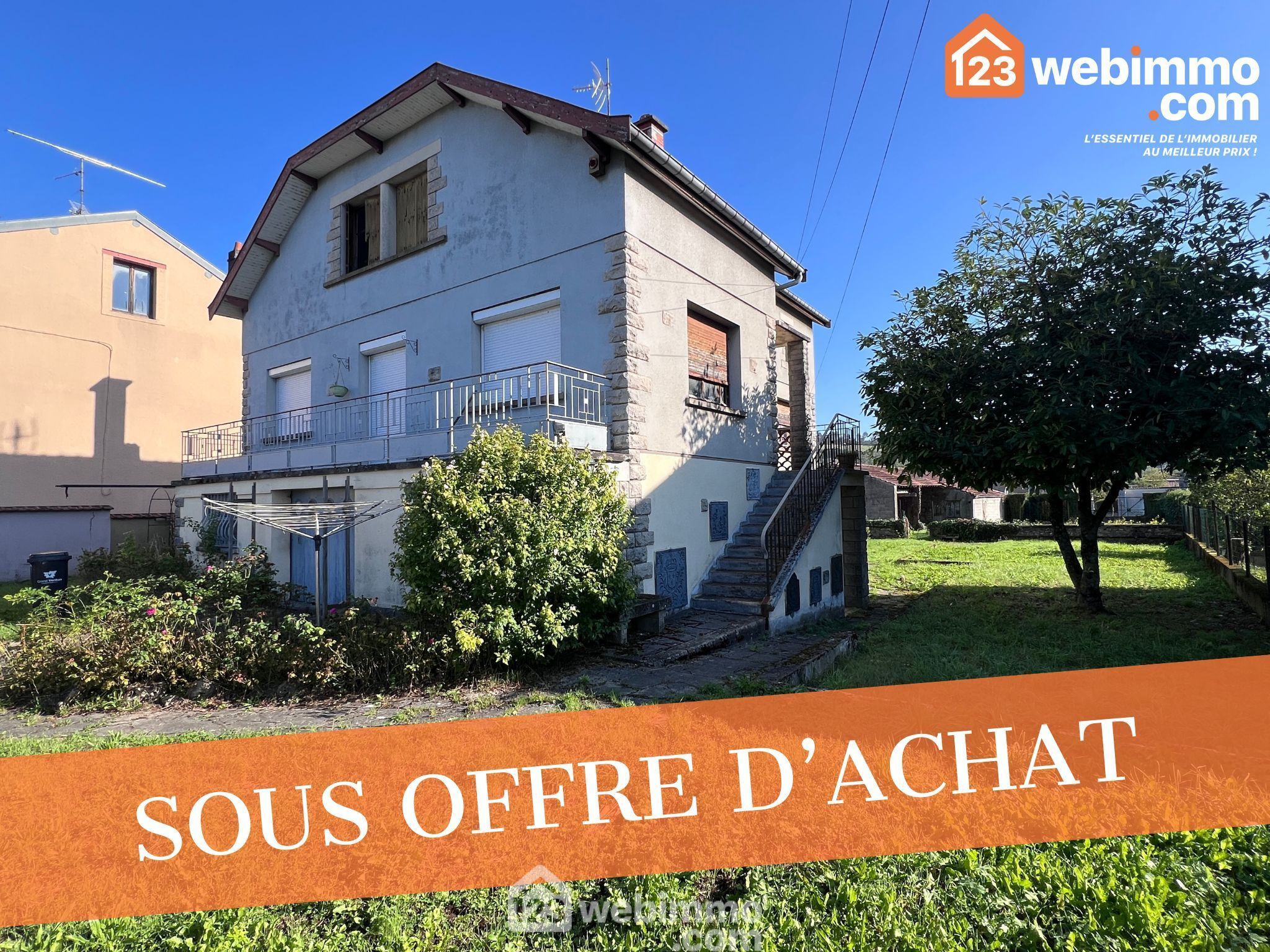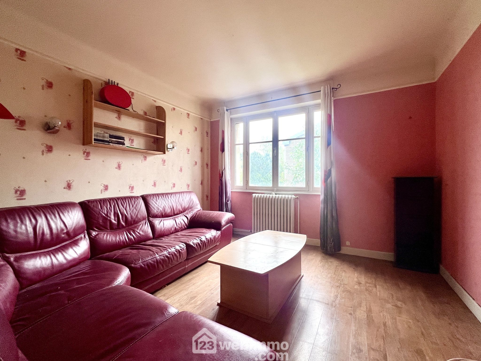 Maison de 165m² habitables à rénover comprenant un garage, un appartement T2 au RDC, une dépendance, combles aménageables et terrain.