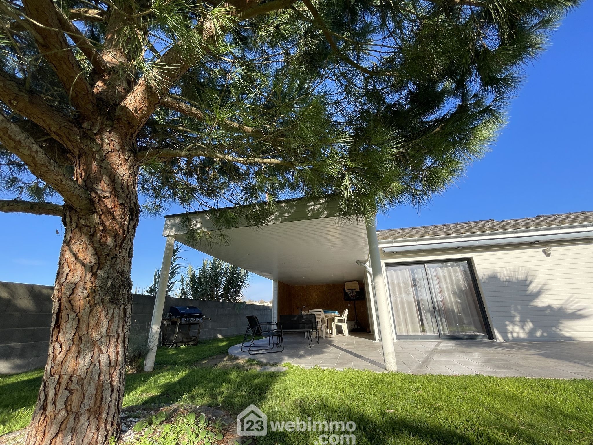 Le terrain clos et arboré est aménagé et entretenu : piscine hors-sol avec filtration à sable, entourée d’une terrasse bois, cabane pour enfants et petit poulailler.