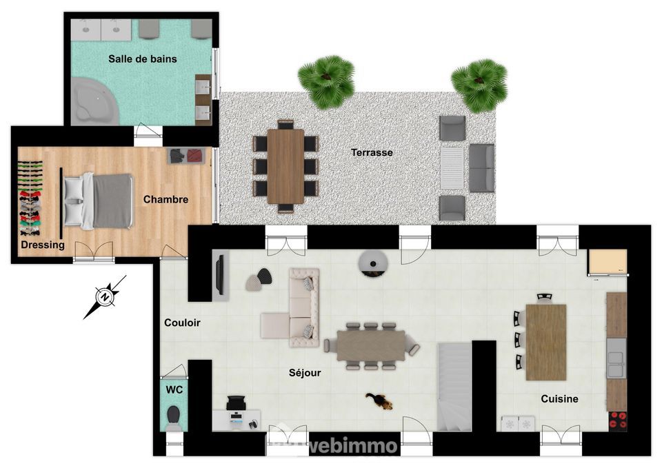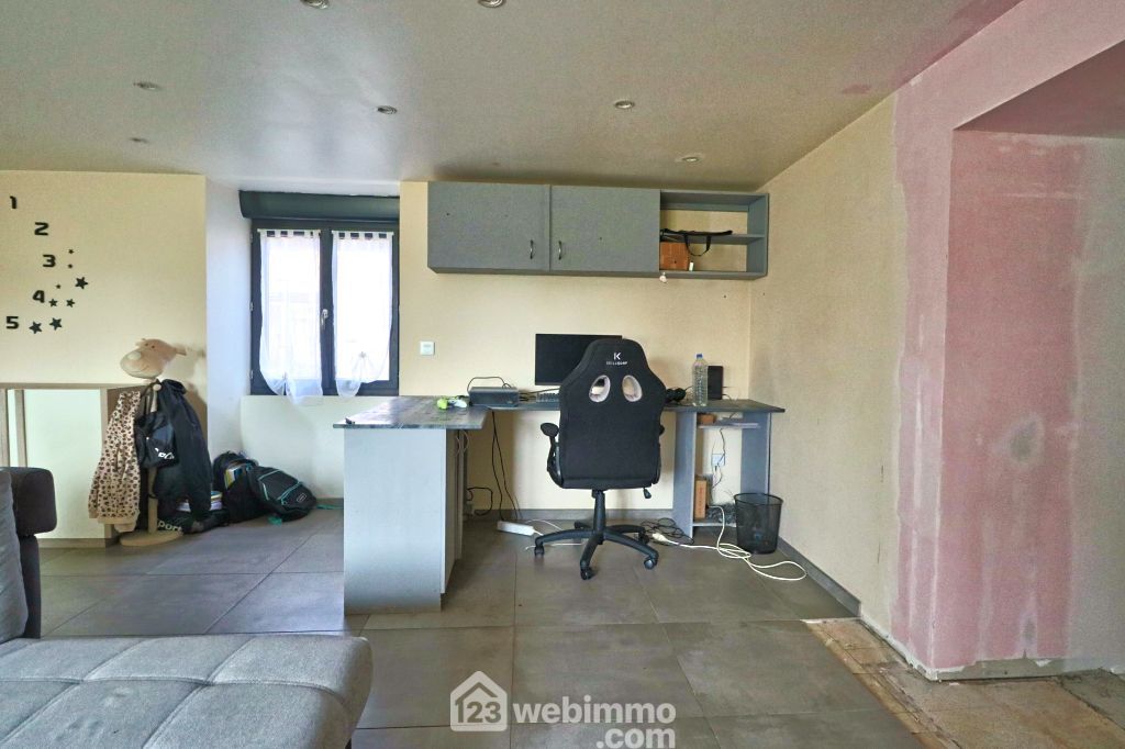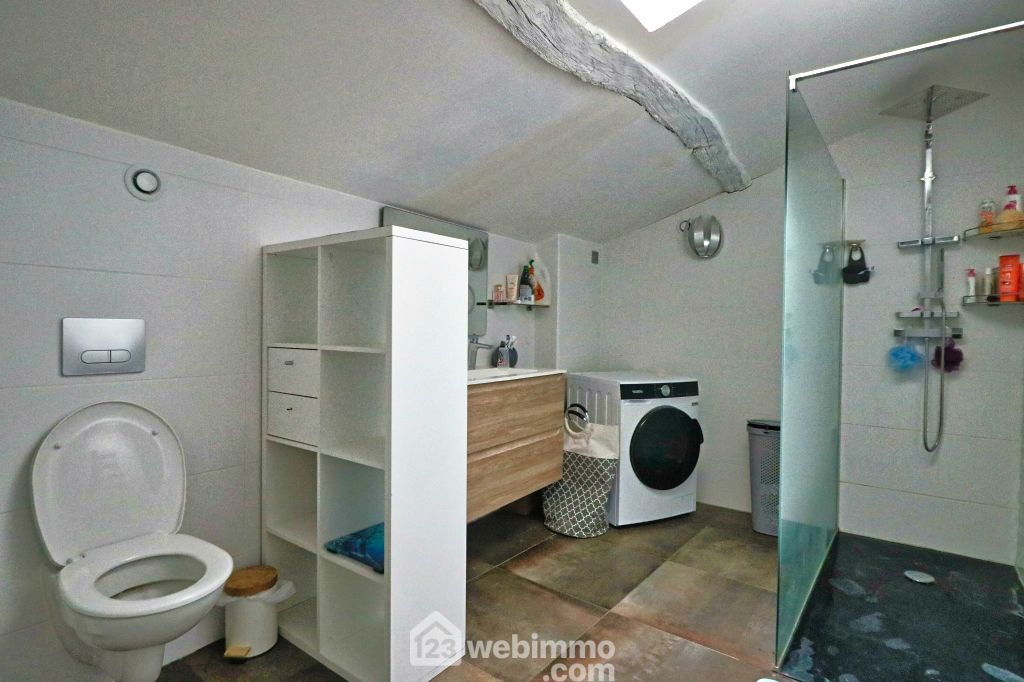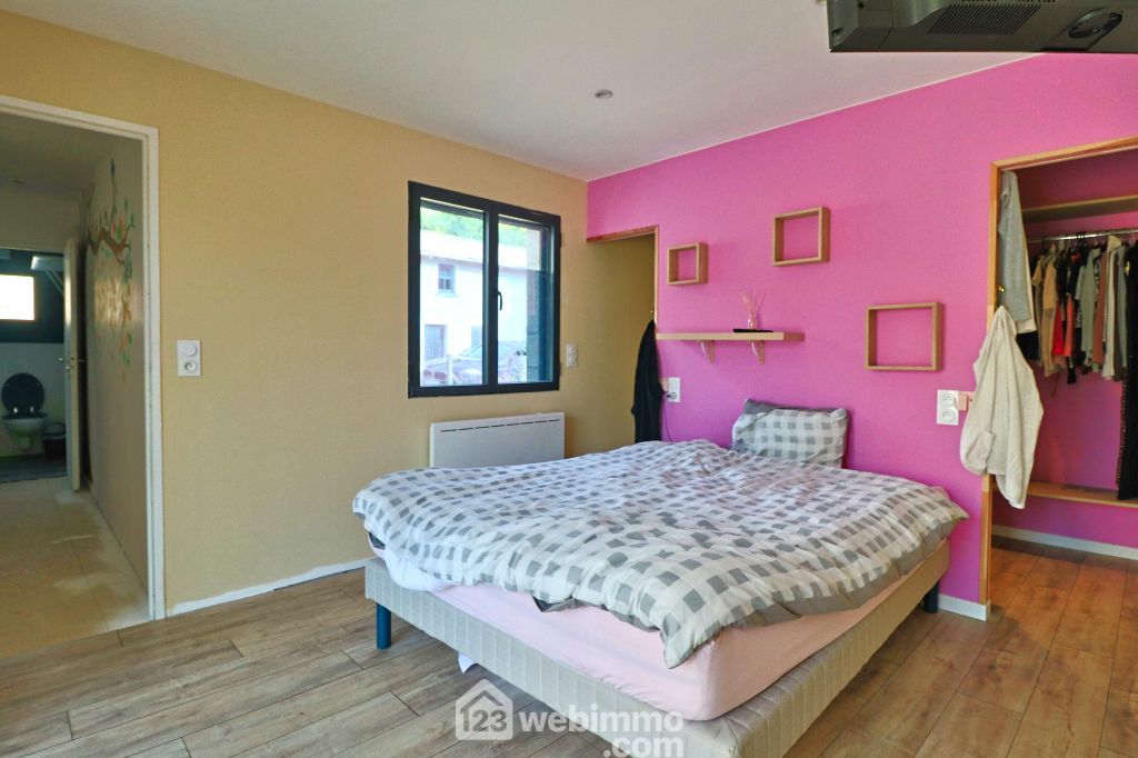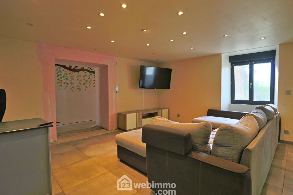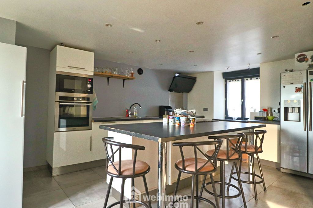 - Au rez-de-chaussée : séjour de 44 m2 avec poêle à granulés qui chauffe la maison, cuisine type US aménagée et équipée avec îlot central (four, plaque à induction, hotte, micro-onde), couloir avec WC indépendant et suite parentale de 33 m2 avec chambre (14 m2), dressing (4,5 m2), salle de bains (14,8 m2) à terminer (eau et électricité ok) et accès direct à la terrasse.