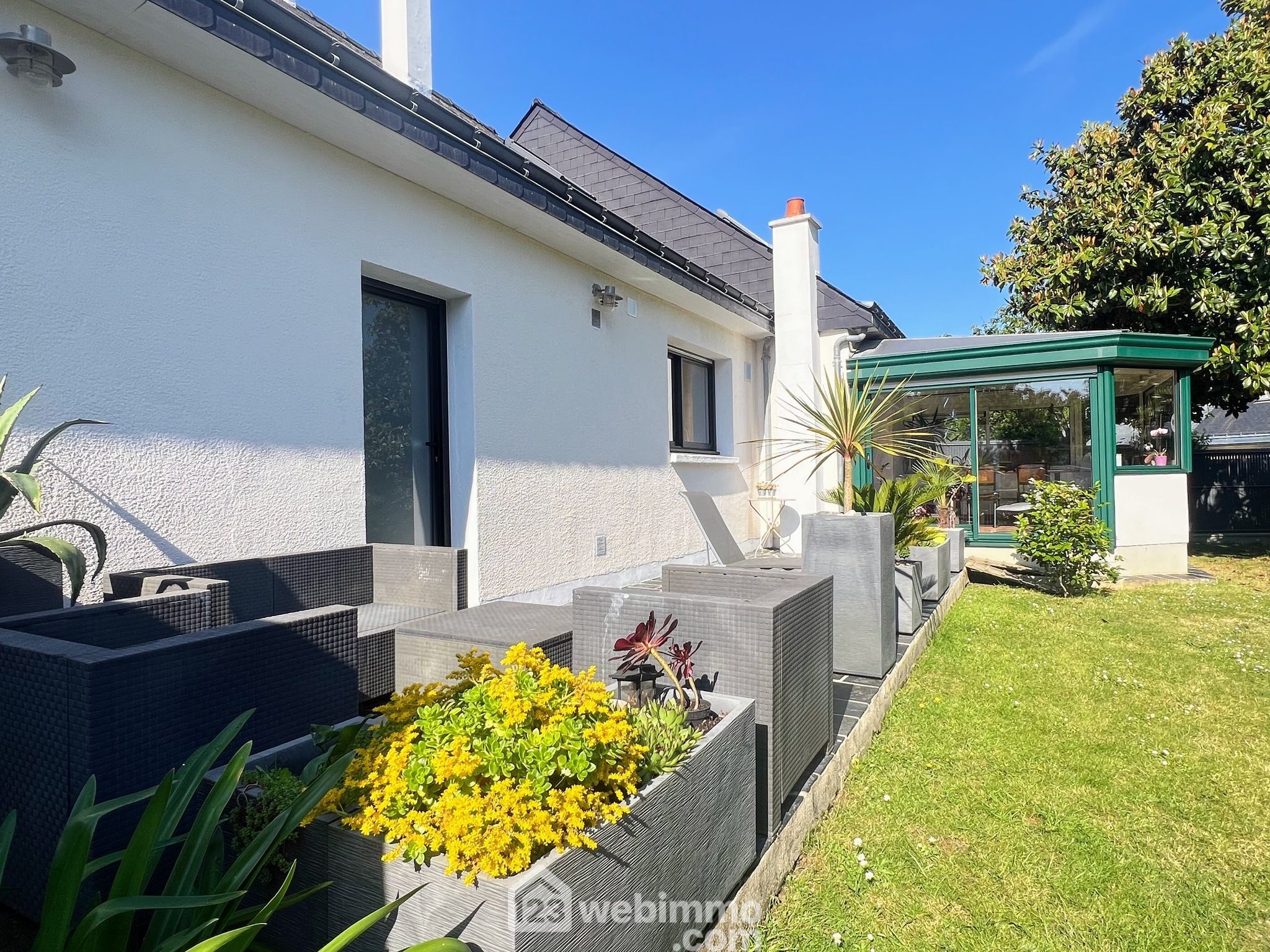 Le jardin clos, sans vis-à-vis direct, est idéal pour laisser les enfants jouer en toute sécurité, organiser des repas en extérieur ou simplement profiter du calme. Une grande terrasse carrelée prolonge cet espace extérieur, véritable atout aux beaux jours.