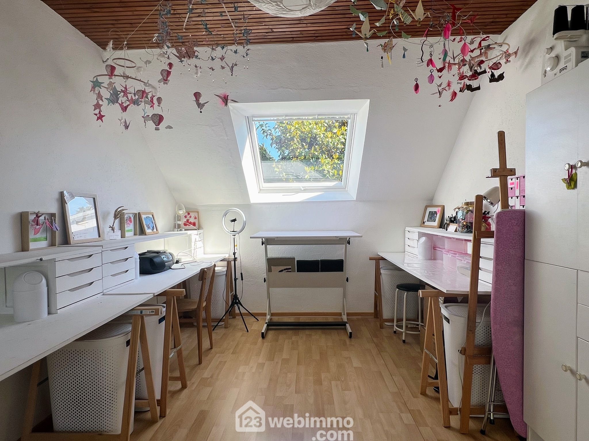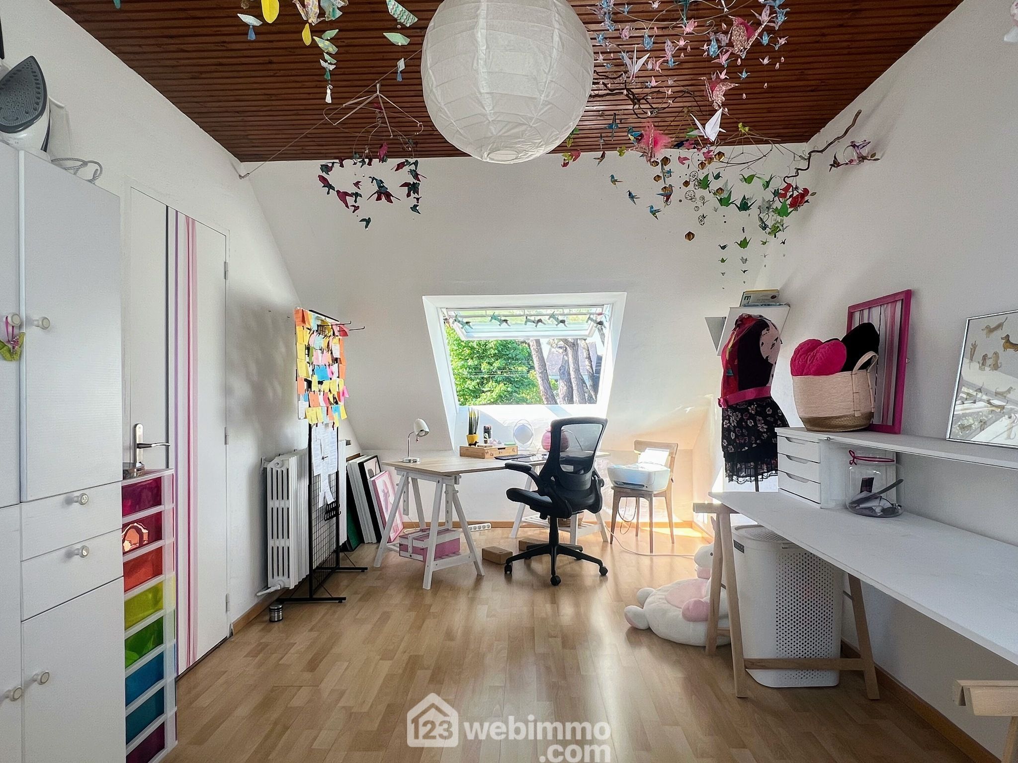 À l’étage, trois belles chambres accueillent les enfants, accompagnées d’une salle de jeux, parfaite pour leurs moments de détente, et d’une mezzanine qui peut faire office de bureau, coin lecture ou espace devoirs. Une grande salle de bain vient compléter l’espace nuit.