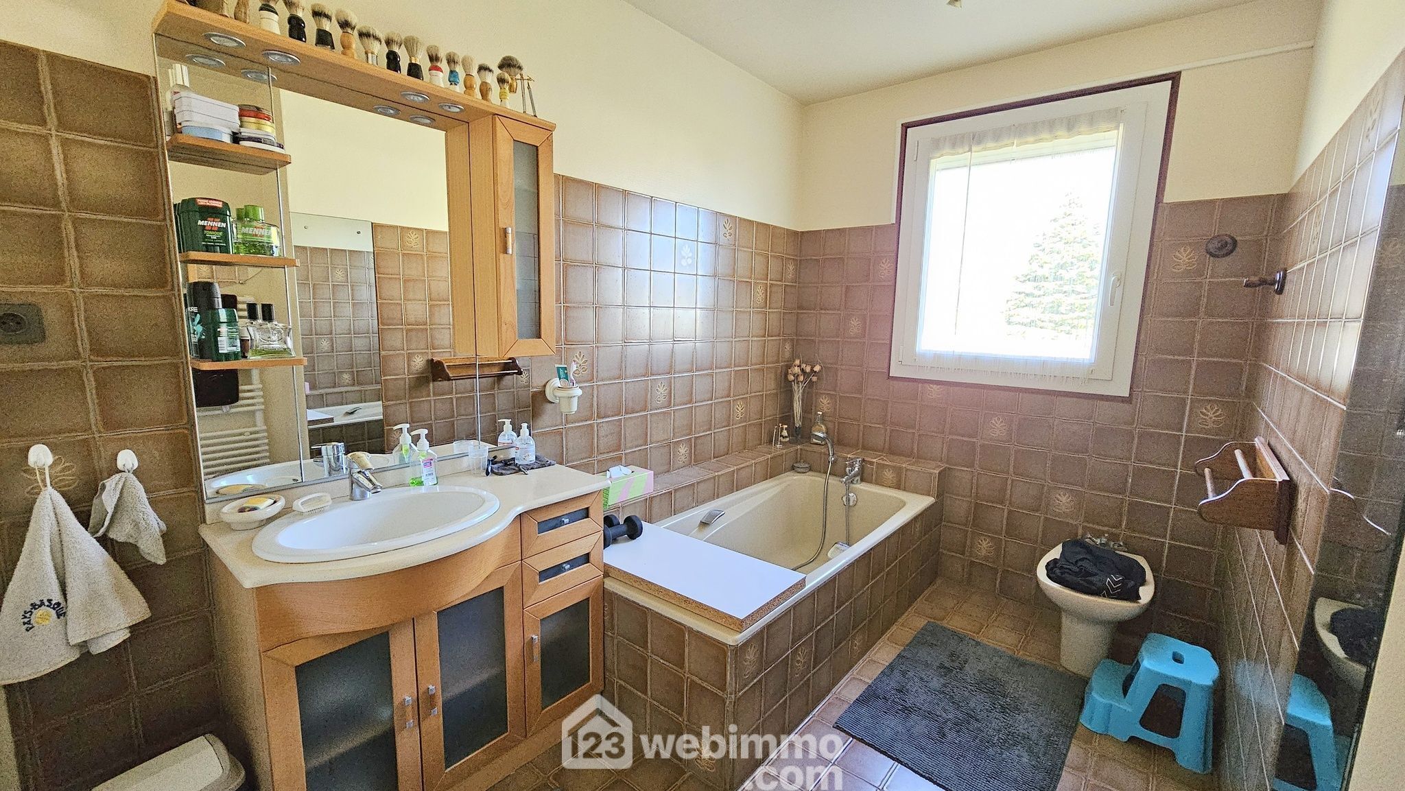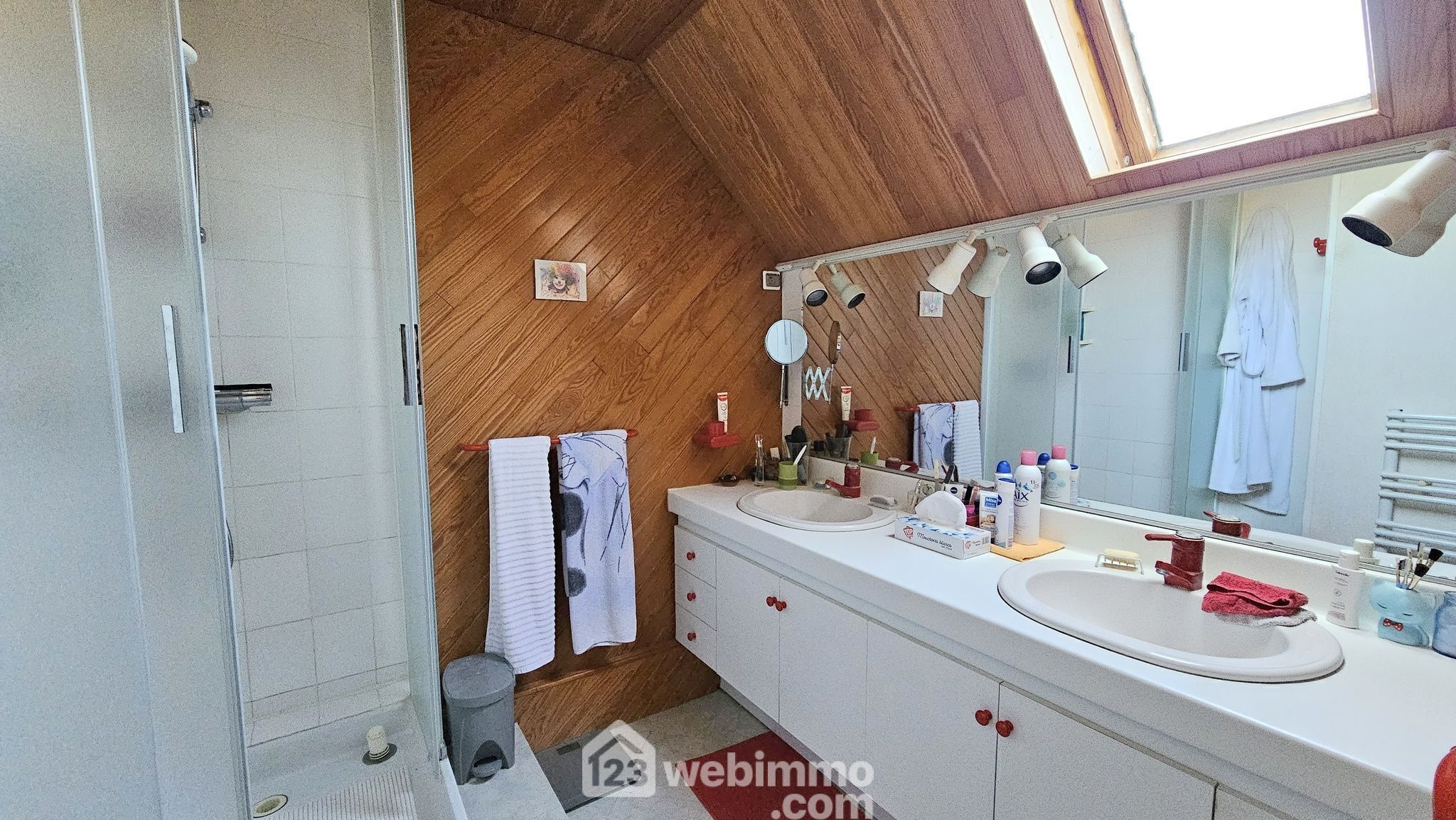 À l’étage, l’espace nuit s’épanouit avec trois grandes chambres, une salle d’eau et un WC, le tout accessible depuis une pièce palière, idéale pour un espace bureau ou détente.