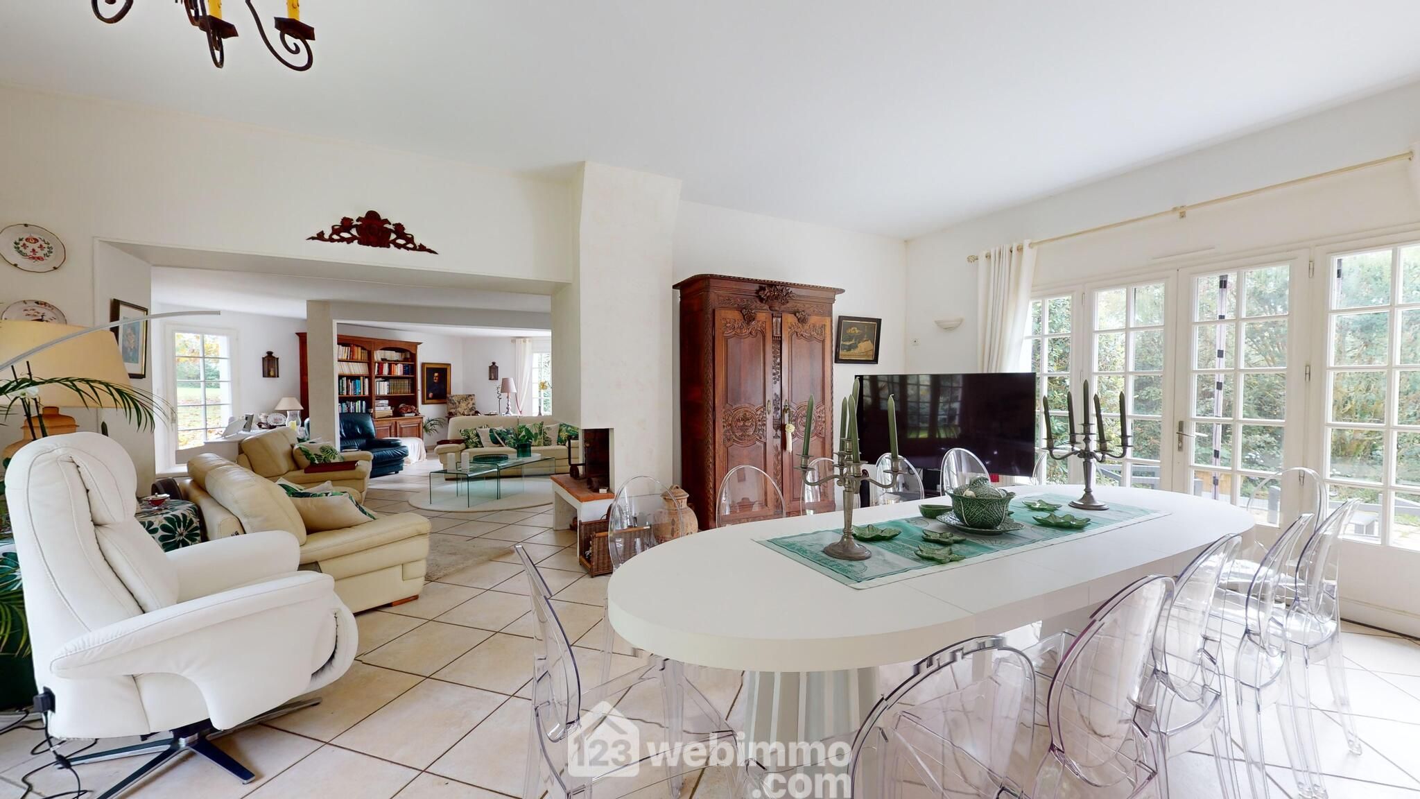 Dès l’entrée, l’ampleur de la grande pièce de vie attire le regard. Lumineuse et accueillante, elle offre un espace où chaque instant prend une dimension particulière, que ce soit pour partager des moments en famille, accueillir des amis ou simplement se détendre, tout en admirant le magnifique parc arboré.