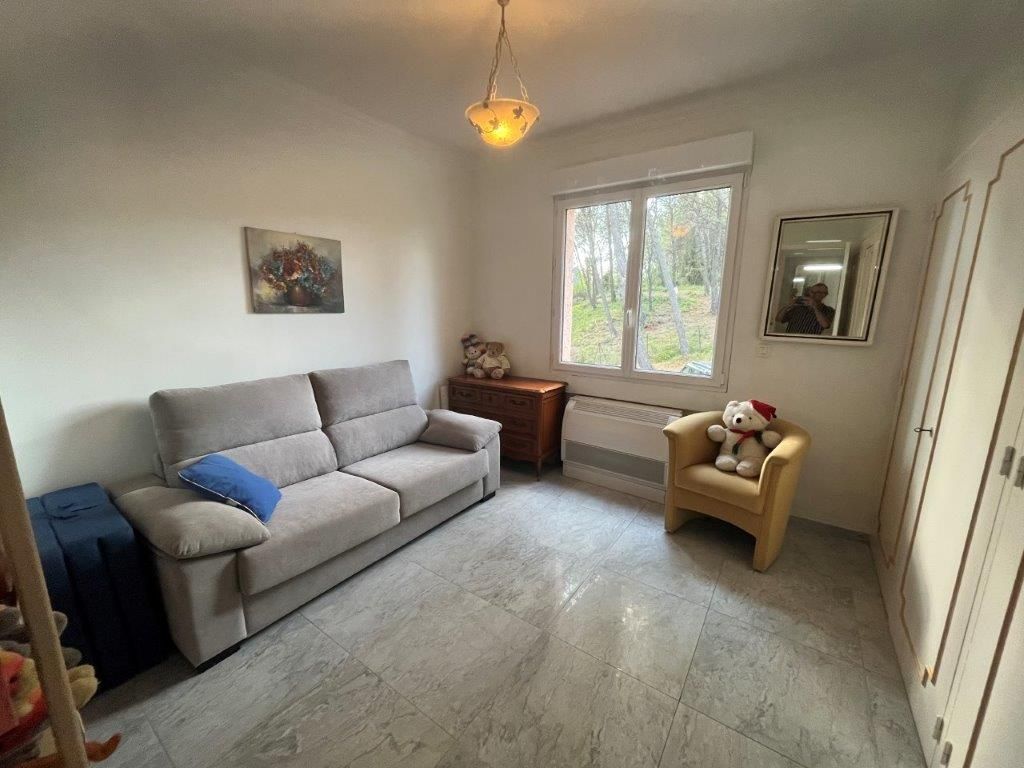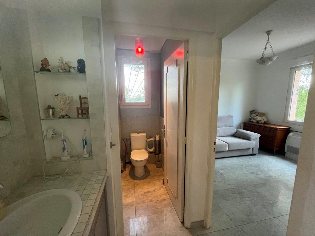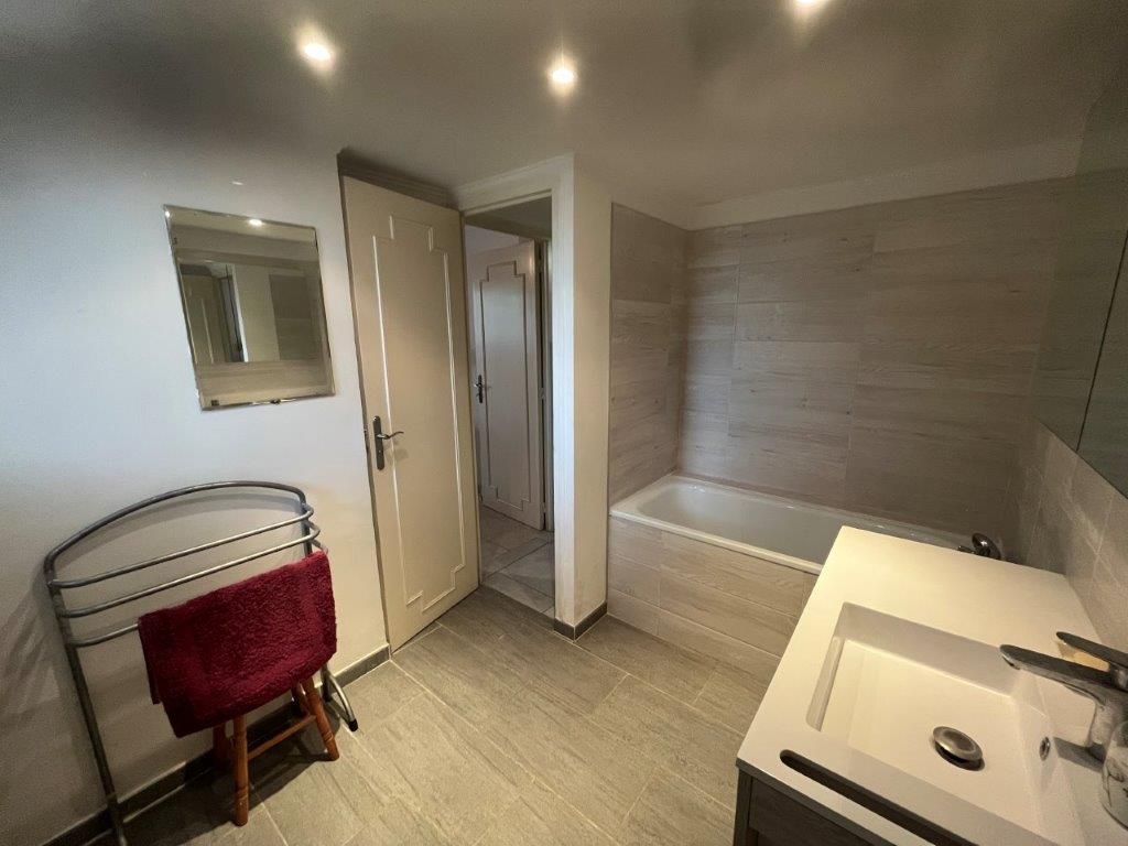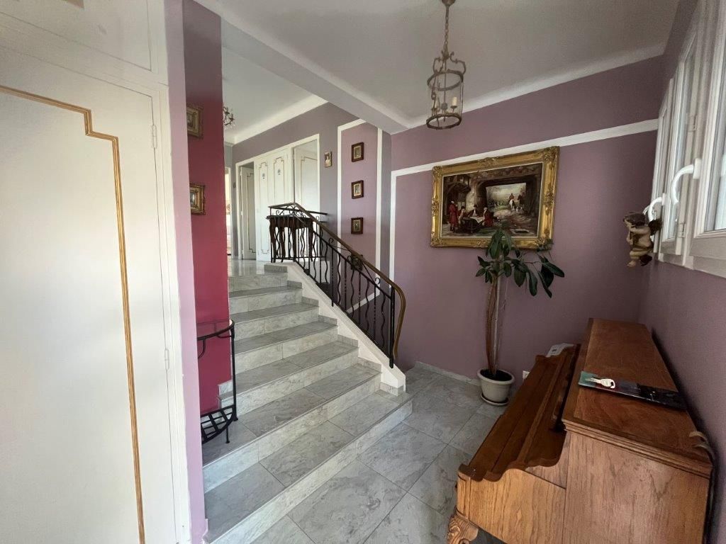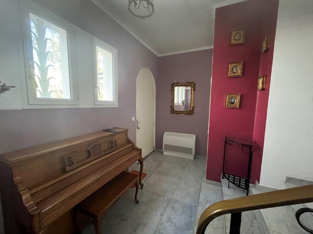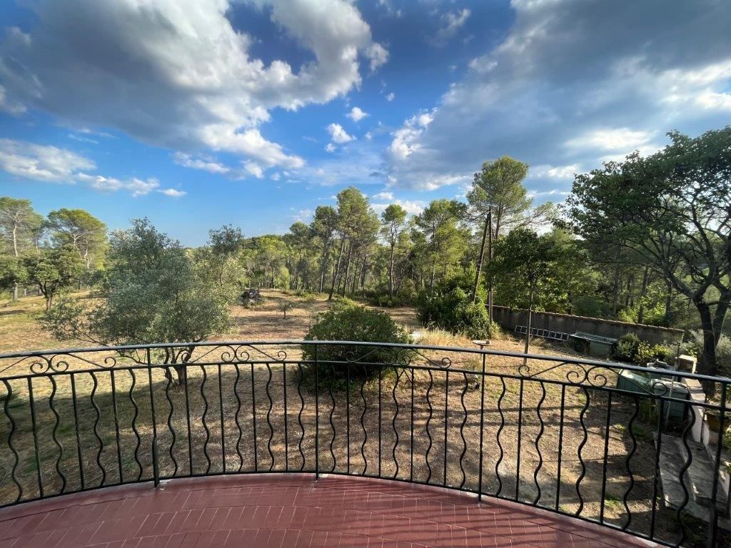 A l'étage 2 chambres, une grande salle d'eau, un coin WC séparé avec lave main, une belle cuisine récente ouverte sur le séjour, une grande terrasse accessible de la cuisine et du séjour avec une vue panoramique sur le parc boisé.