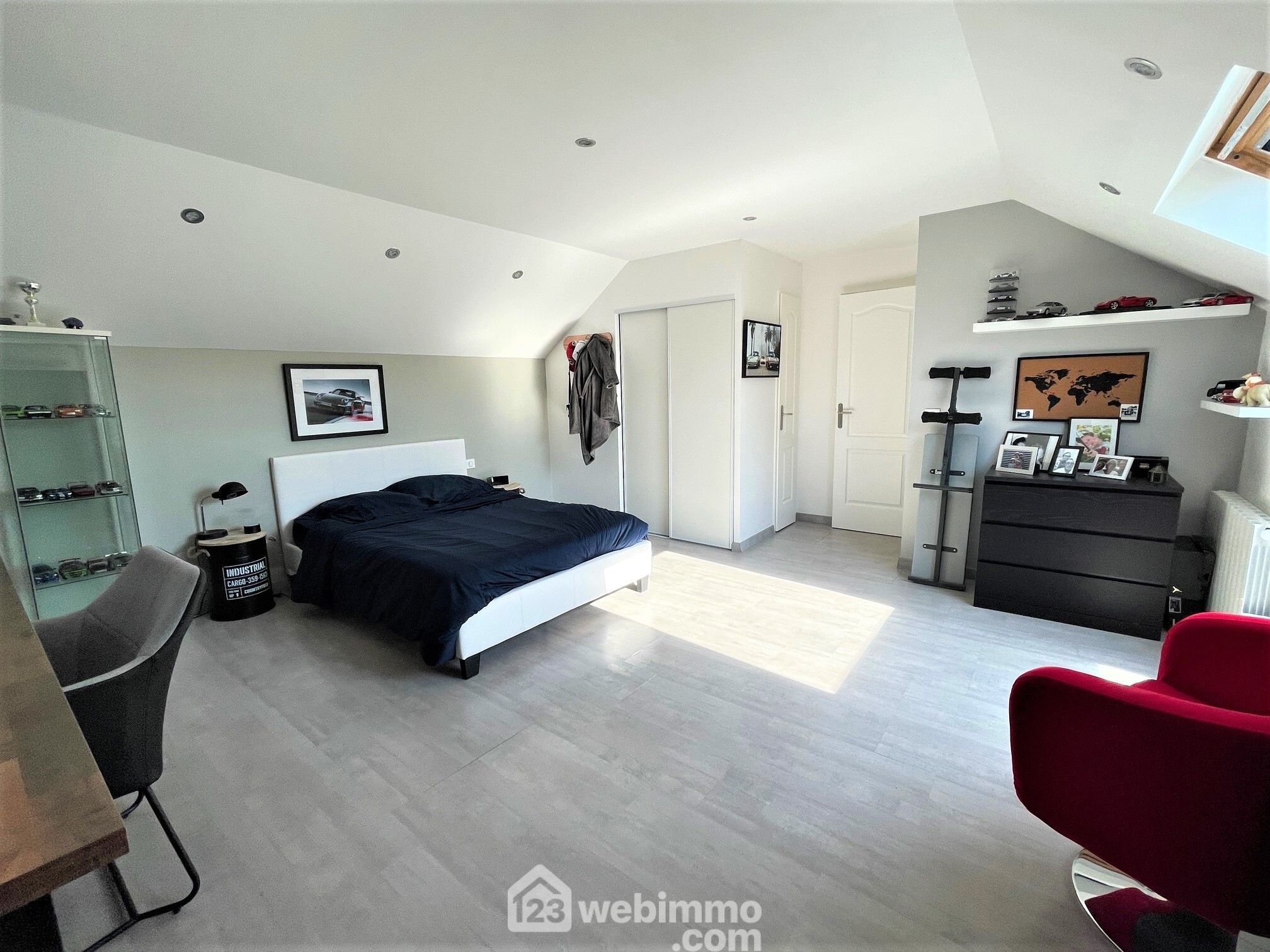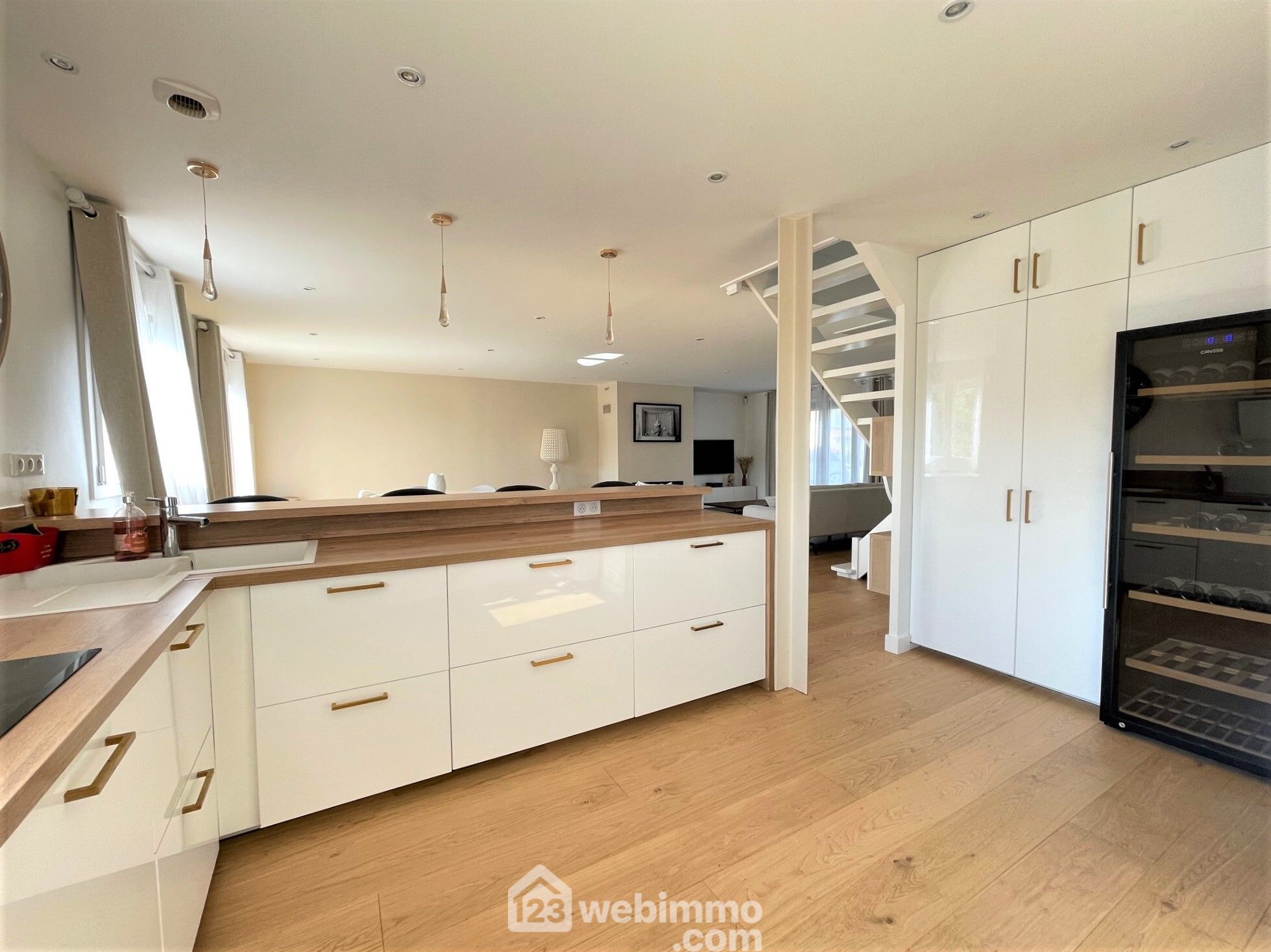 - Au rez-de-chaussée: d'une entrée avec placard, d'un double séjour lumineux et spacieux avec son insert, d'une cuisine américaine moderne entièrement aménagée et équipée, cet espace est d'environ 69m², d'une suite parentale avec dressing aménagé et sa salle de bains avec baignoire et douche, wc indépendant avec lave-mains. Buanderie et garage double avec porte automatique.