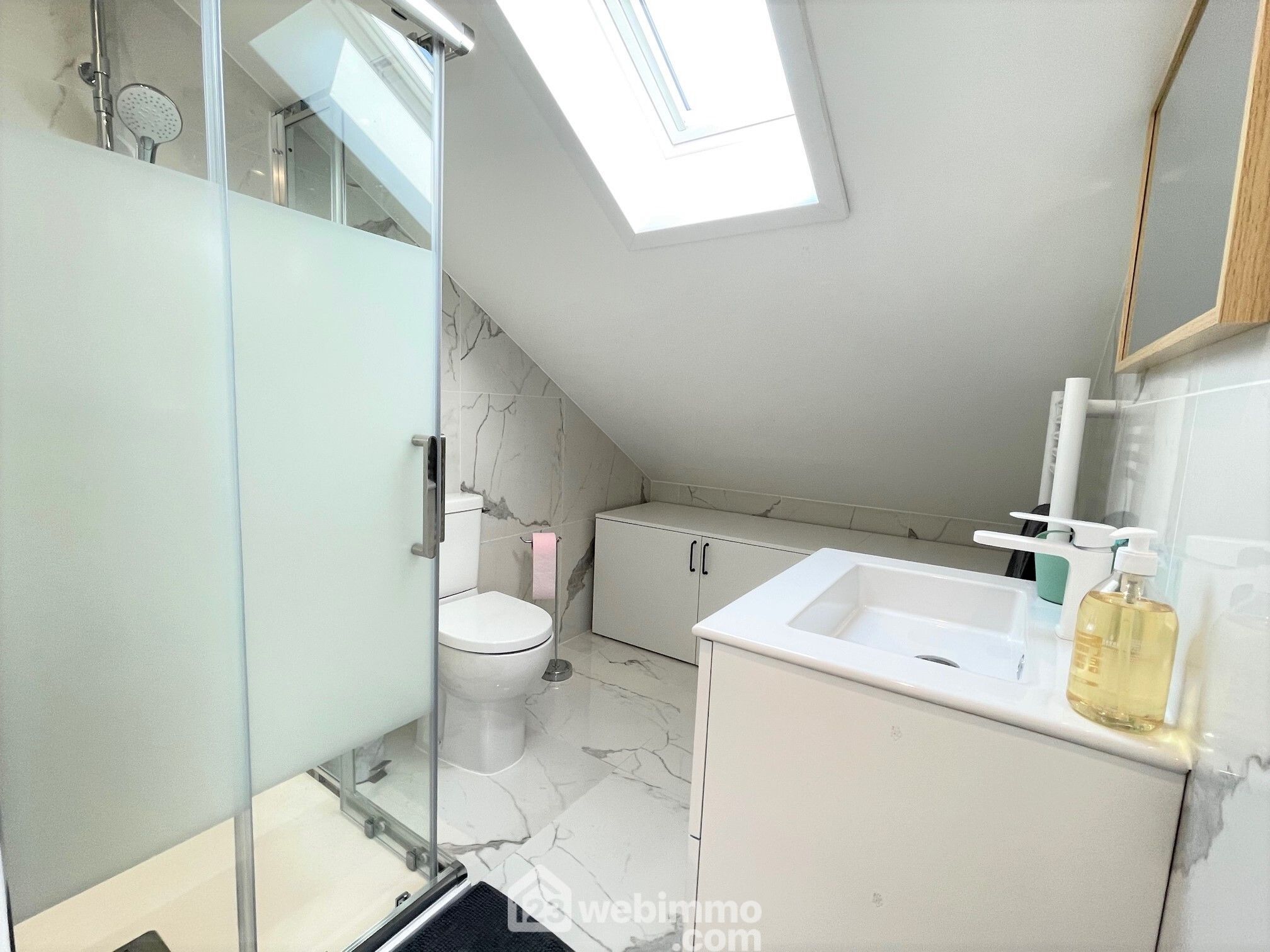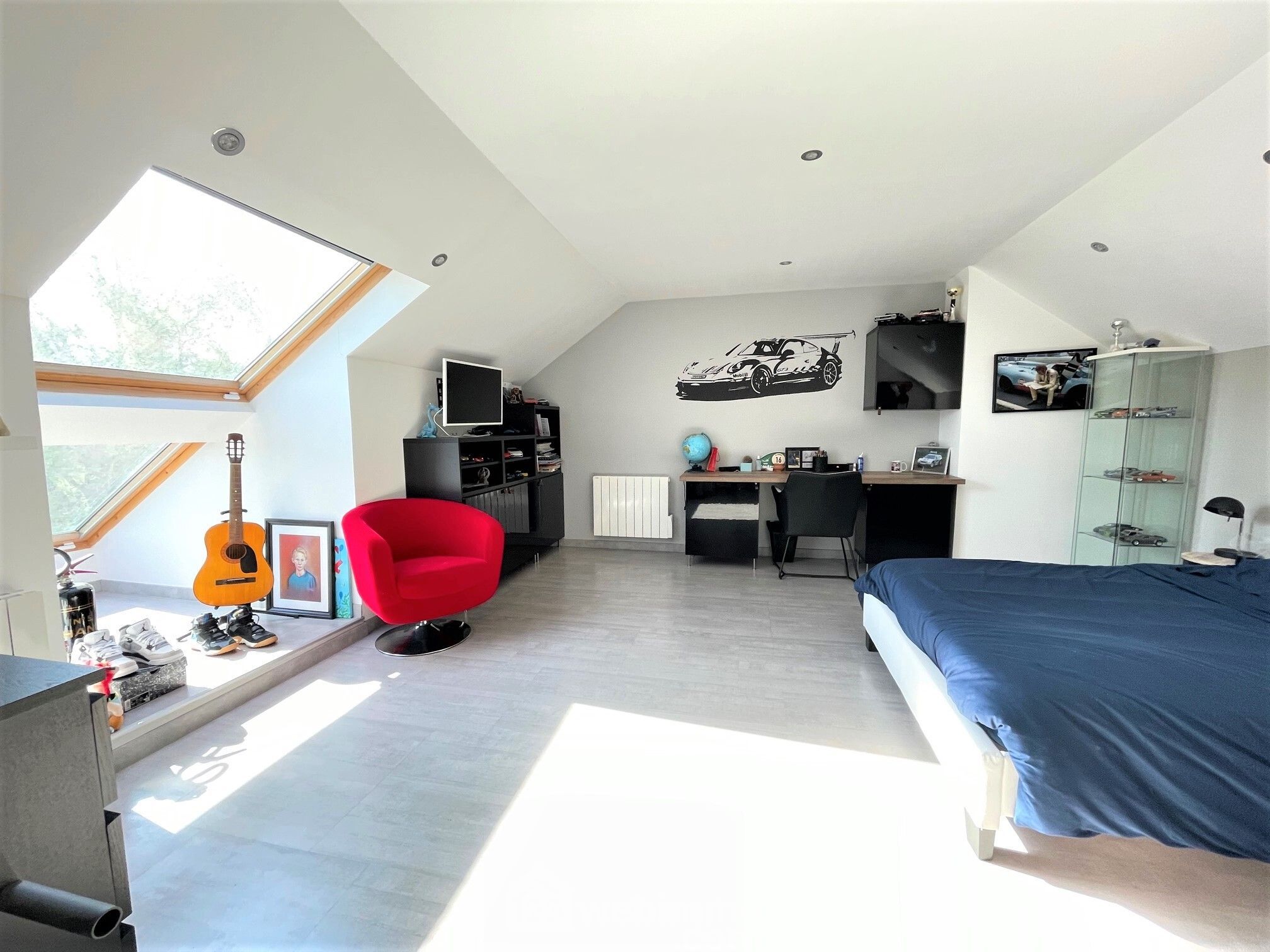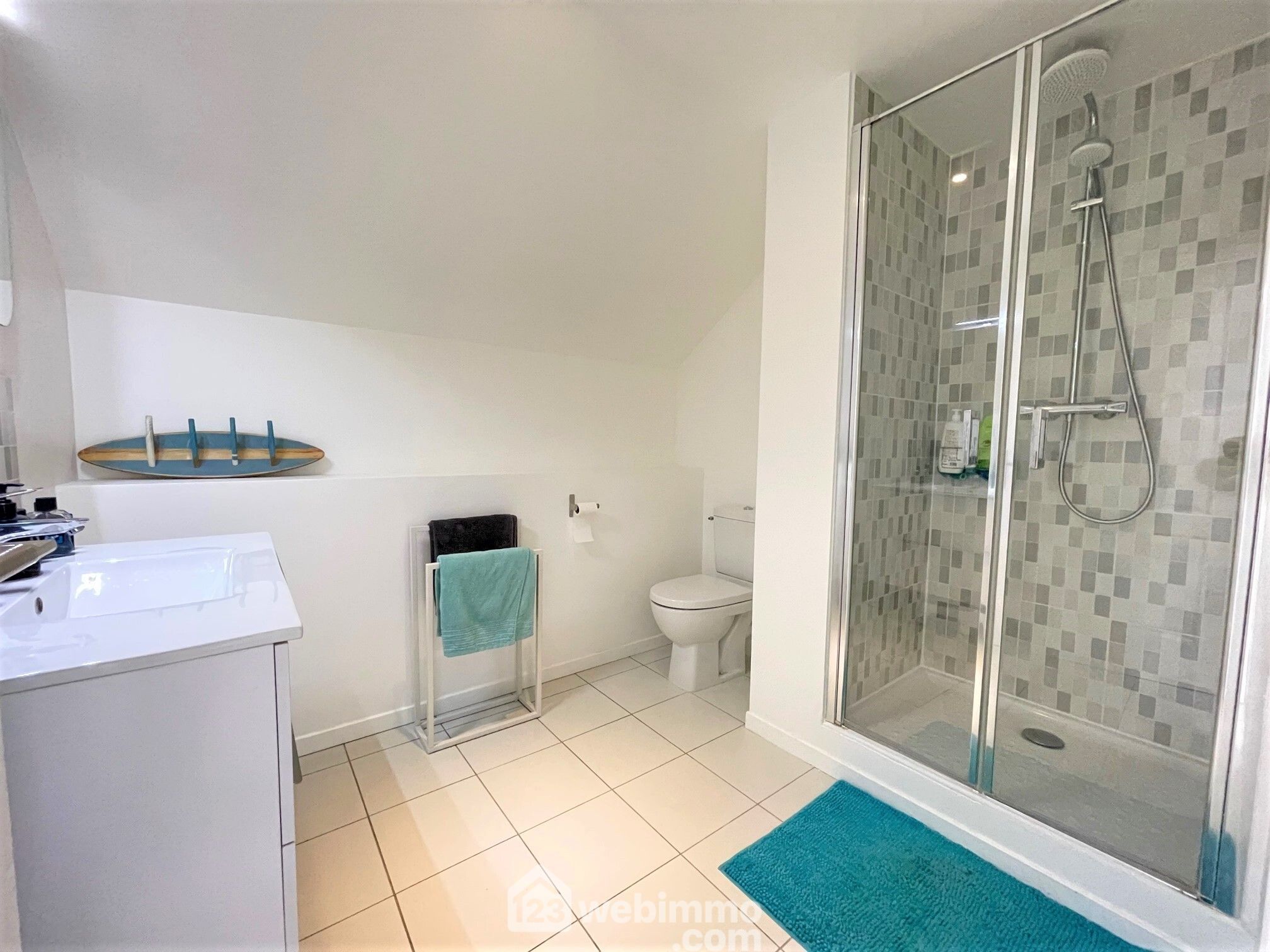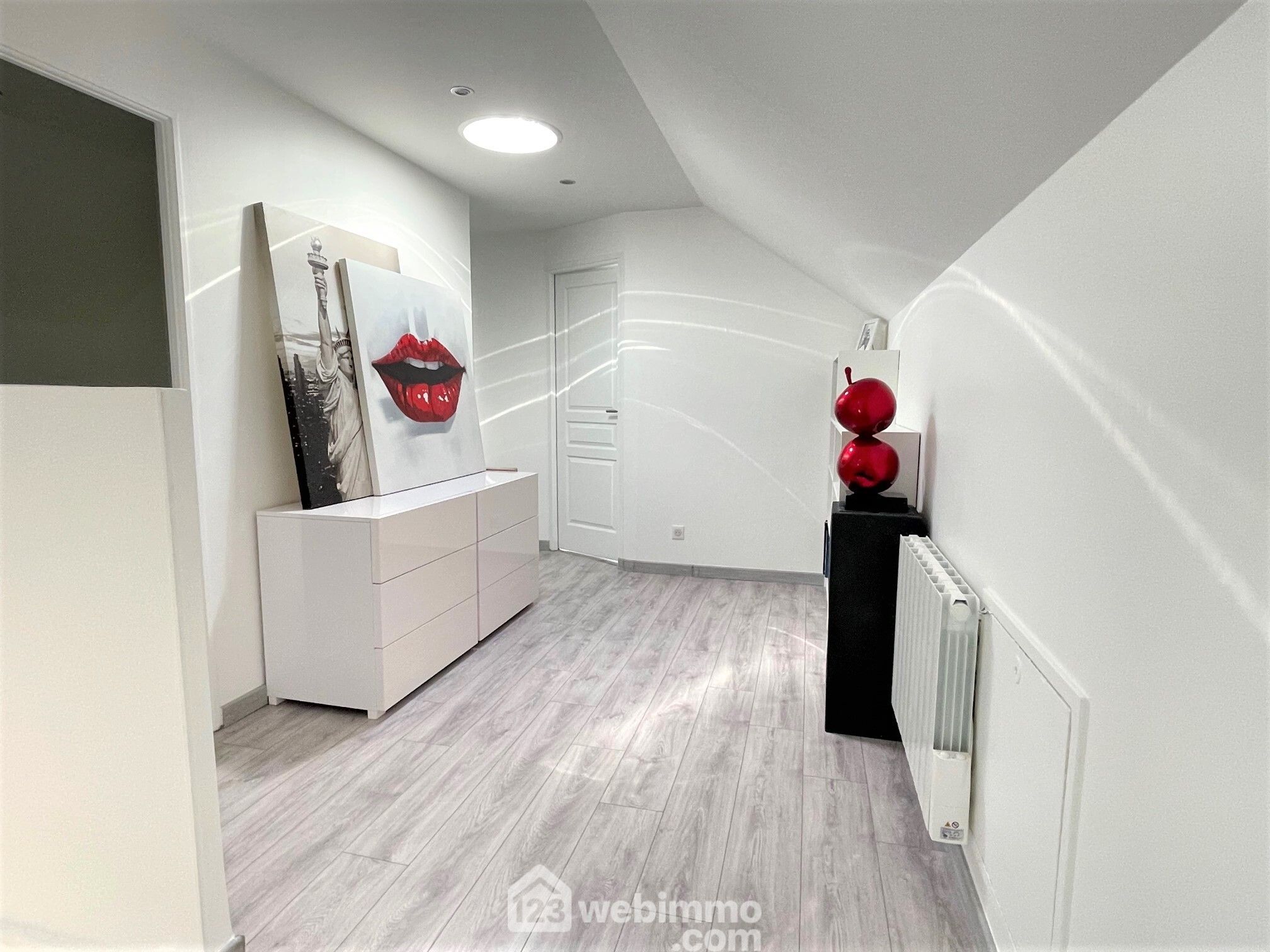 Montée d'escalier et palier de l'étage disposant de puits de lumière. L'étage se compose en trois chambres dont une suite parentale avec salle d'eau et wc, une salle d'eau avec wc.