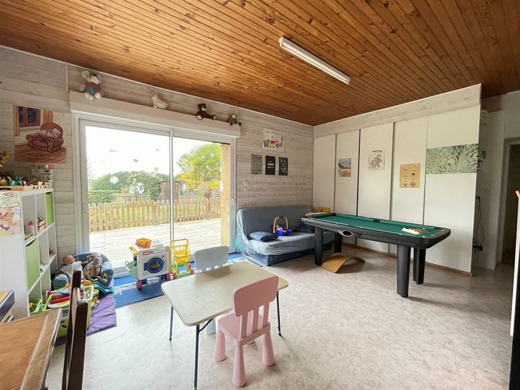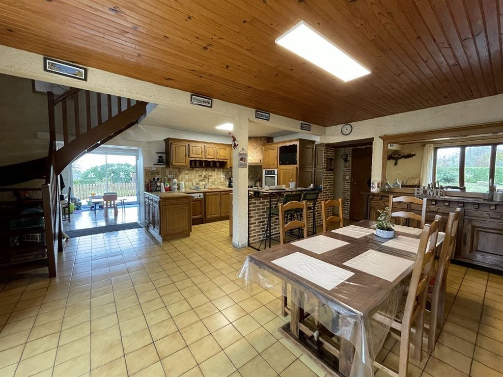 49540 Terranjou - Ancienne grange rénovée avec au rdc, grand séjour-cuisine de 36 m², un salon de 30 m² équipé d'un insert haut rendement avec ventilation, une salle de jeux de 22 m² avec accès terrasse et une salle de bain avec WC séparés. Un garage de 22 m² et un cellier de 28 m² complètent le rdc. A l'étage 4 chambres de 15, 13, 11 et 10 m², un coin bureau, 1 salle de douche et WC. La parcelle de 4060 m² paysagée est entièrement close, dispose d'un puits et d'une terrasse bois.