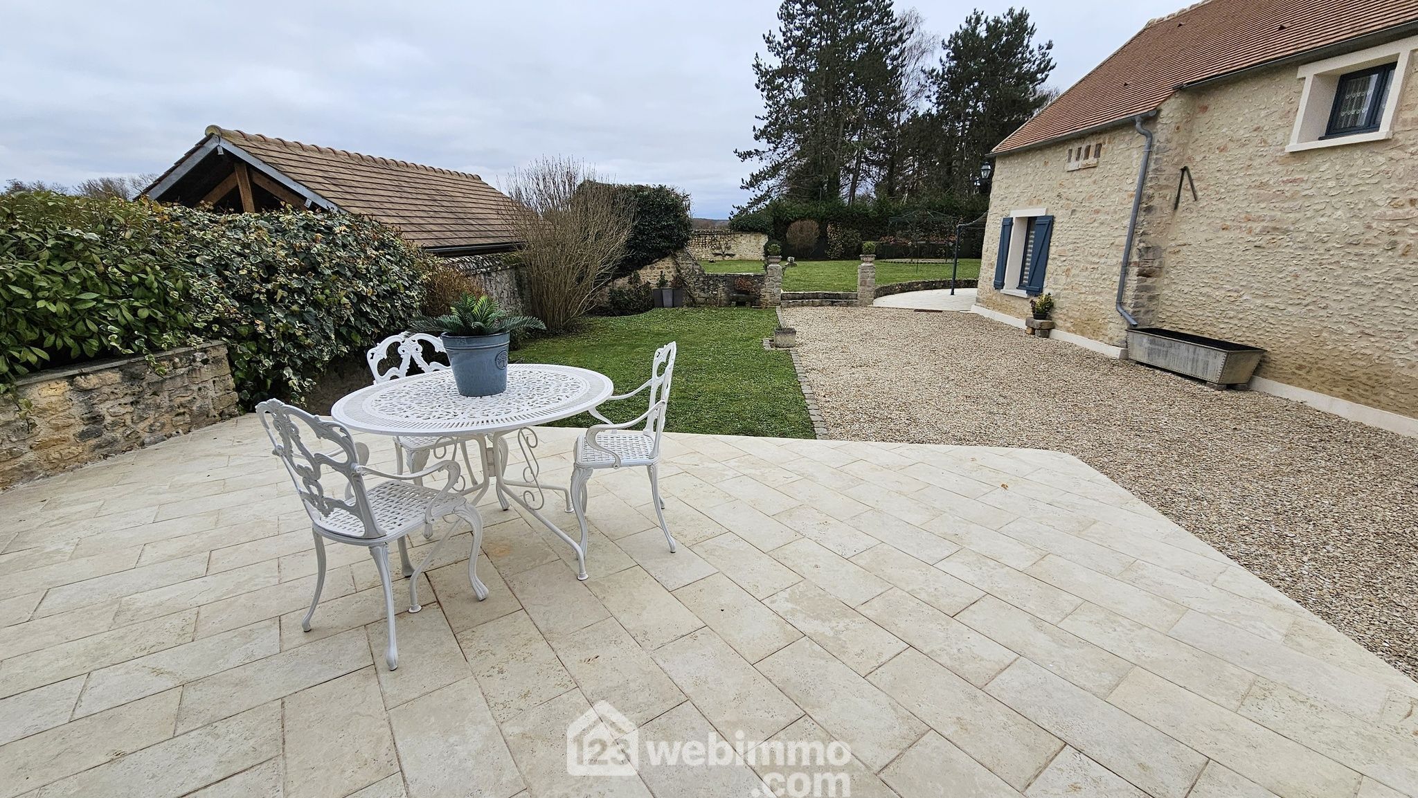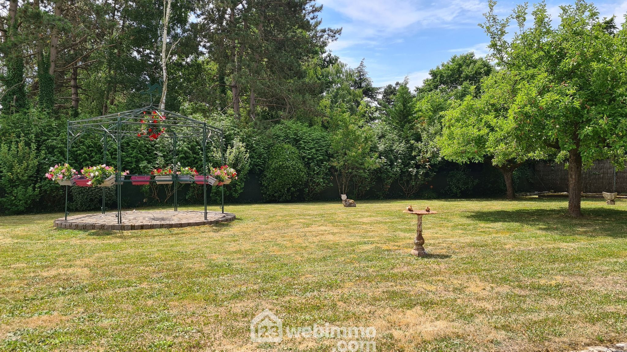 Le terrain clos et arboré de 1 775 m², parfaitement entretenu, offre un cadre verdoyant et paisible. Il est agrémenté d’un abri de jardin, d’un auvent pouvant accueillir deux véhicules et d’une pergola. Plusieurs terrasses entourent la maison, permettant de profiter pleinement des extérieurs à toute heure de la journée.