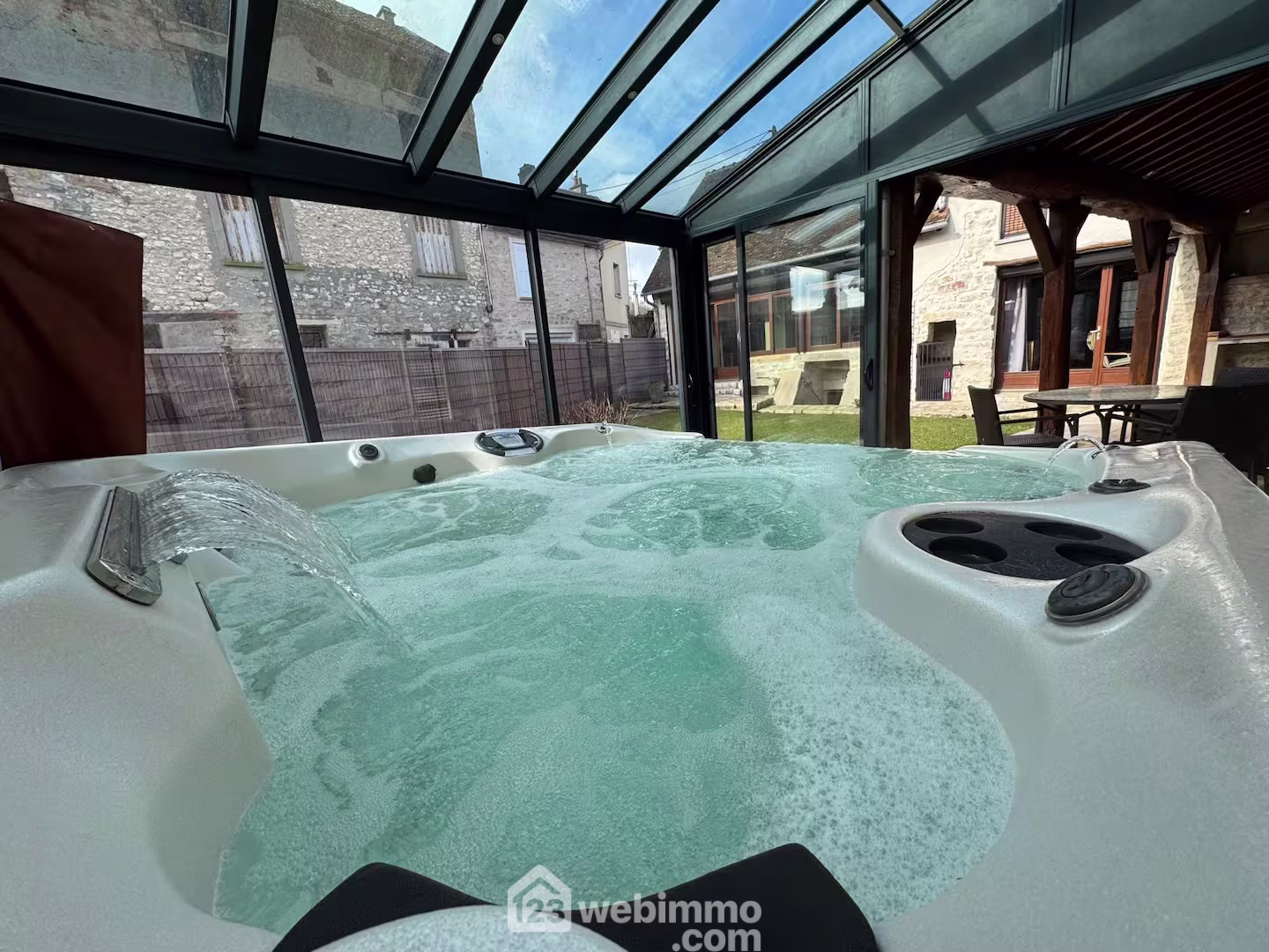 À l’extérieur, place à la détente : une véranda de 12 m² abrite un SPA, pour des moments de bien-être en toute saison. Le préau attenant et la terrasse invitent à profiter du jardin clos de 1 557 m², véritable havre de paix à l’abri des regards.
